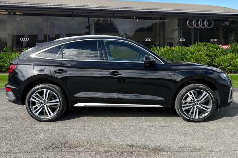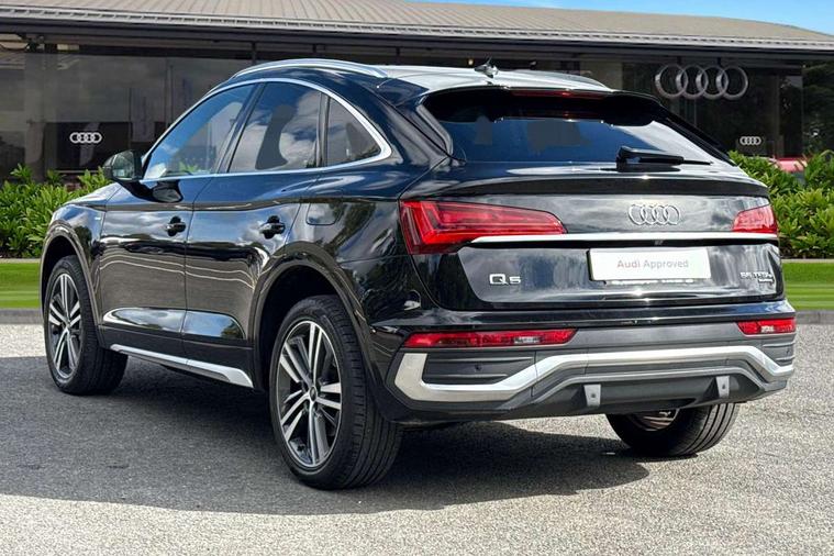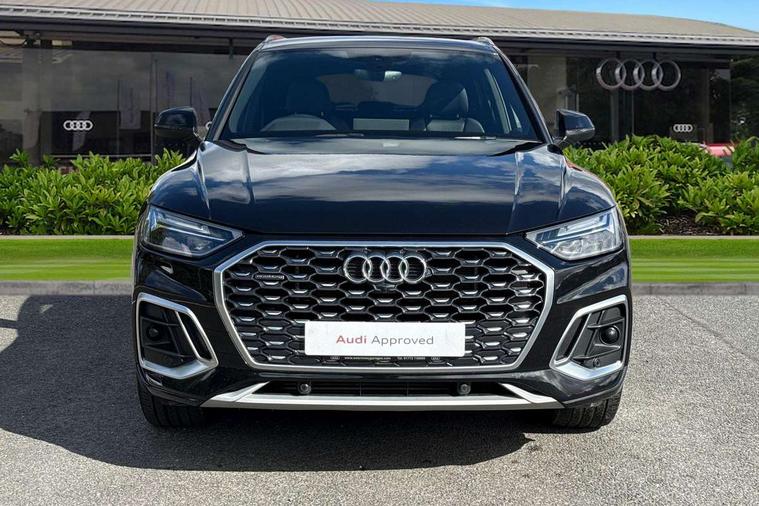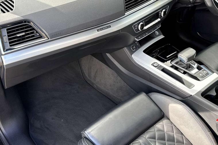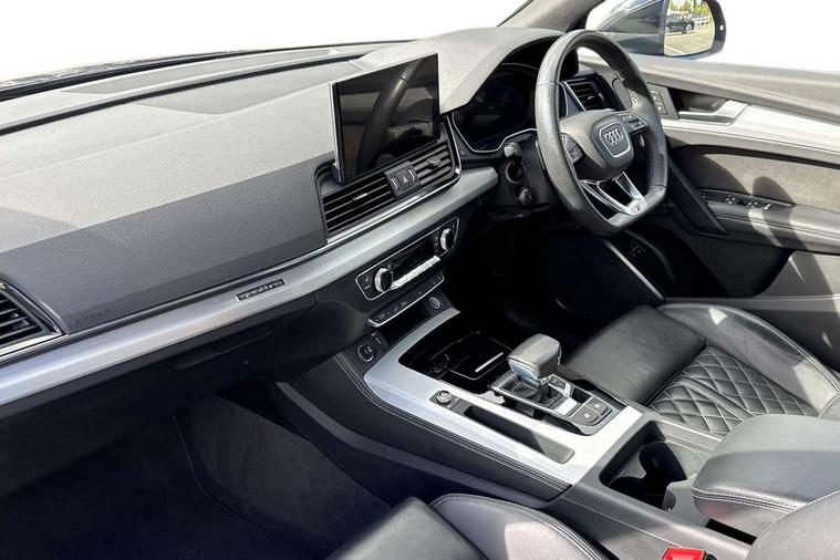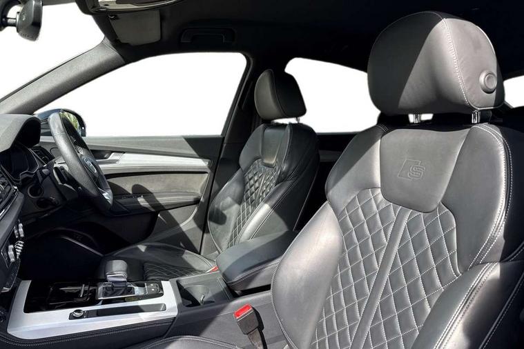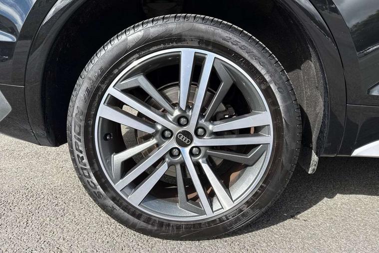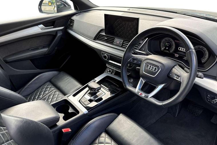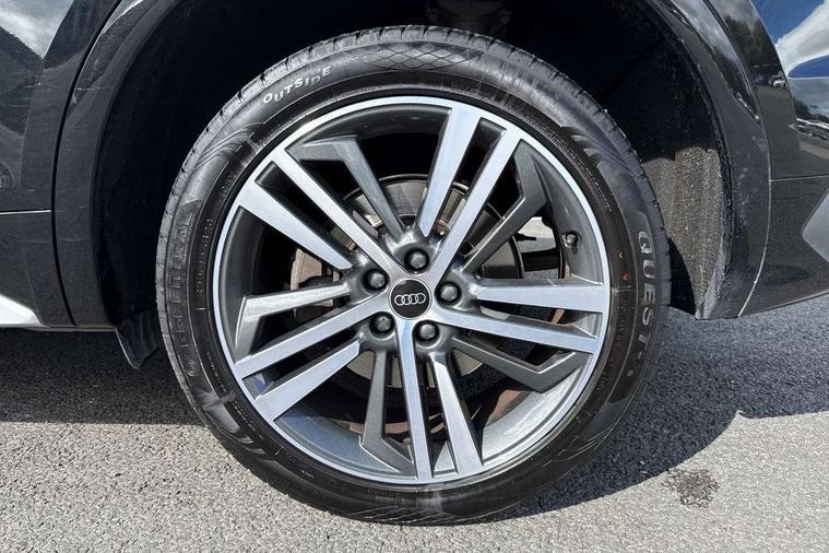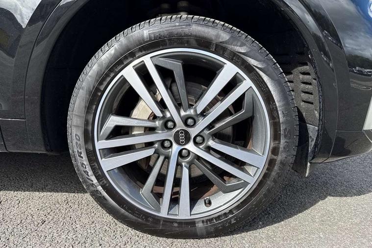 Advanced key with electric hands free boot opening system, Audi connect safety and service (e-call), Audi connect with Amazon Alexa Integration, Audi drive select, Audi virtual cockpit plus with 12.3" screen and three different layout designs, Audi wireless smartphone interface, Automatic start-stop system with coasting functionality and efficiency programme, Bluetooth interface, Electro - mechanical power assisted steering, MMI navigation plus with 10.1" touch screen, Power tailgate, Reversing camera, Service interval indicator, Voice control system with Audi hotword activation "Hey Audi", 3 pin 10 amp domestic charging cable, Dynamic suspension, Quattro on demand, Type 2 mode 3 22kW 32 amp charging cable, Type 2 socket for AC charging, Audi sound system, DAB Digital radio, 3rd brake light, Acoustic glass for front and door windows, Aluminium roof rails, Audi beam, Audi matrix LED headlights with dynamic front and rear indicators, Auto dimming rear view mirror, Automatic headlights and windscreen wipers, Body colour bumpers, Body colour door mirrors, Body colour rear diffuser with matt aluminium silver surrounds, Body colour underbody protection, Chrome plated exhaust trims, Daytime running lights, Door sills in Selenite silver, Electric adjustable/heated/folding door mirrors, Front air inlet surrounds in aluminium, Front and rear electric windows, Front radiator grille in honeycomb design, Headlight washers, Lower bumpers painted in contrast Manhattan grey, Rear chrome trim strip below lights, Rear diffuser strip in selenite silver, Rear privacy glass and rear side windows, Rear side wing doors, Rear spoiler, Rear wiper, Roof bars, 2 x USB charging port with aux input socket, 3 rear headrests, 40:20:40 split folding 3 rear bench seat in 2nd row with rear centre armrest, Black cloth headlining, Comfort front centre armrest, Contrast stitching on seats, steering wheel and gear lever gaiter, Deluxe 3 zone electronic climate control, Fine Nappa leather upholstery with diamond pattern contrast stitching + front sport seats with S embossed logo, Front/rear floor mats, Fully electrically adjustable seats, Gear lever in black leather, Heated front seats, Height adjustable front head restraints, Height/reach adjustable steering column, Illuminated door sill trims with S logo, ISOFIX child seat mounting and top tether, Massage function for front seats, Rear seat bench plus, Single front passenger seat, Sunvisors with vanity mirrors, Tool kit, Trunk roller cover, Extended interior upholstery pack - Q5, High gloss pack - Q5, LED interior light pack - Q5, 3 point seatbelts on all seats, 6 airbags - Driver, front passenger, curtain and side airbags, Electrically operated child locks on rear doors, Electromechanical parking brake, Electronic stabilisation control including ABS, ASR and EDL, Front passenger airbag deactivation, Hill descent control, Hill hold assist, Multi collision brake assist, Pop-up bonnet for pedestrian protection, Pre sense city, Seat belt force limiter, Seatbelt monitoring, Tyre pressure warning, Warning triangle and first aid kit, Anti theft alarm, Anti-theft wheel bolts, Keyless Go access/ignition system, Matt brushed aluminium inlays, 20'' 5 segment spoke design alloy wheels in contrasting grey with diamond cut finish, Tyre repair kit,