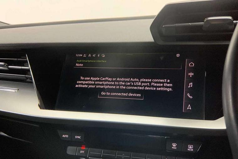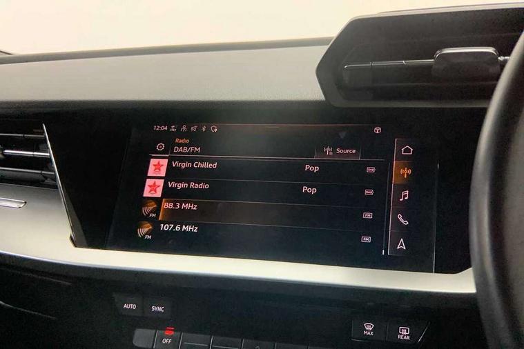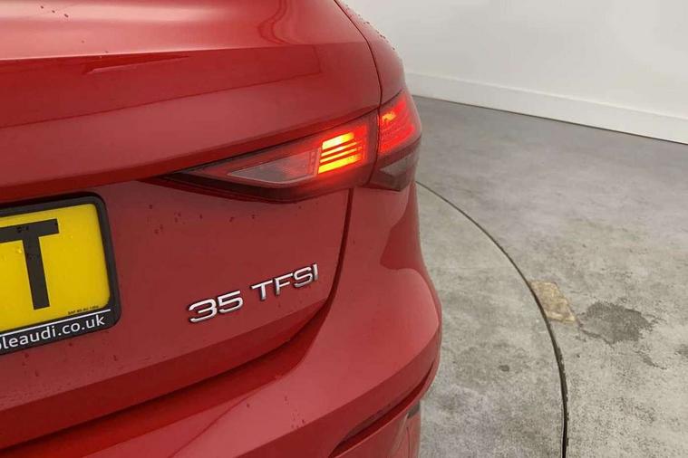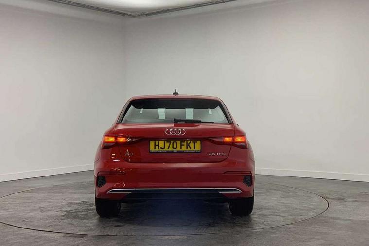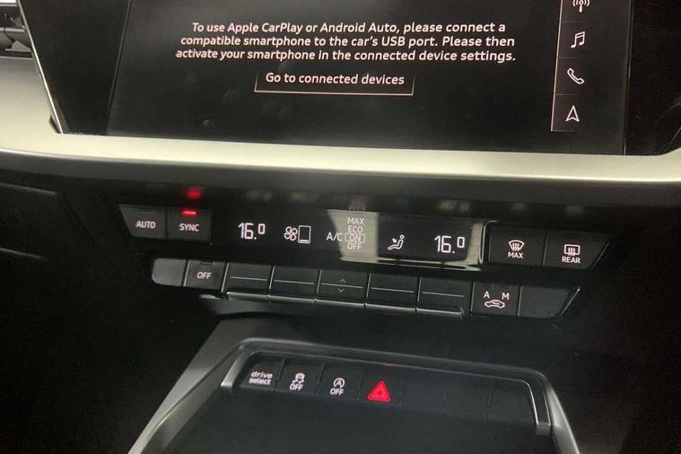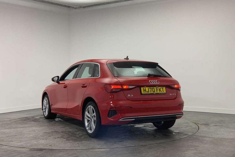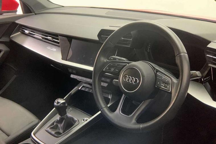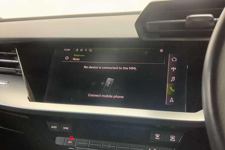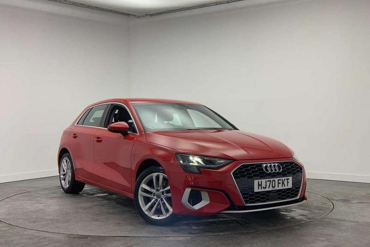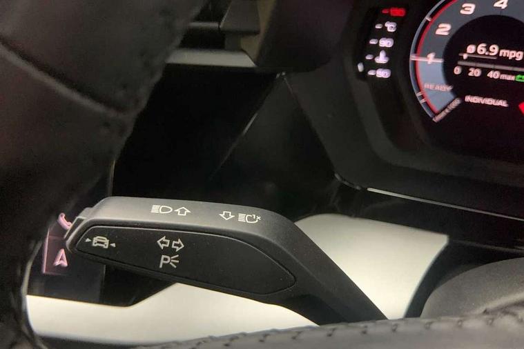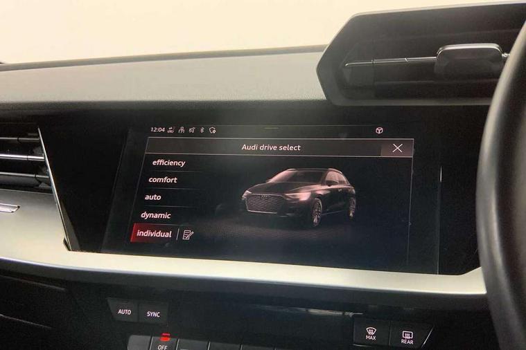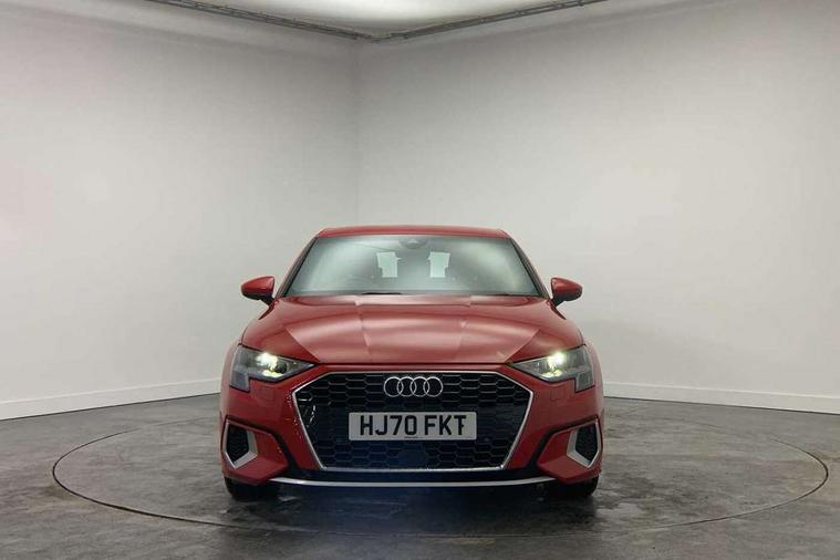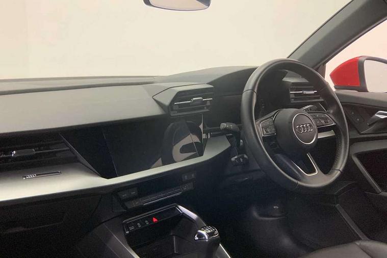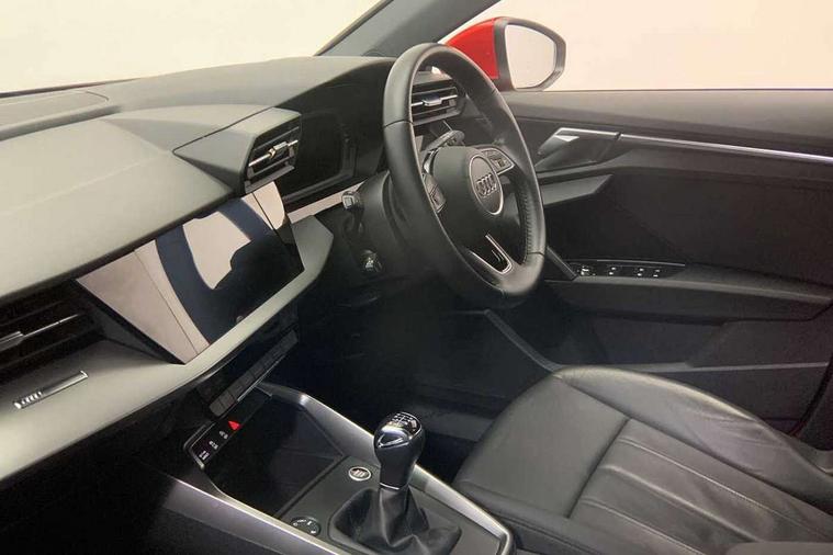 Inlays with silk effect paint in platinum grey, Aluminium interior elements pack - A3 Sportback, Sport styling pack - A3 Sportback, Anti theft alarm, Anti-theft wheel bolts, Electronically operated child lock, Immobiliser, Remote control central locking, 1xUSB-A and 1xUSB-C connection, 6 passive loudspeakers, DAB Digital radio, 3x3 point rear seat belts, Driver and front passenger airbag with passenger airbag deactivation, Electronic Stabilisation Control (ESC) including ABS, ASR and EDL, First aid kit with warning triangle and 2 safety vests, Hill hold assist, Pre-sense front with pedestrian and cyclist detection, Seatbelt monitoring, Tyre pressure loss indicator, Acoustic glass windscreen, Aluminium window trim, Auto dimming frameless rear view mirror, Body colour exterior mirrors, Body colour roof spoiler, Electrically adjustable/heated/folding/dimming door mirrors with kerb view includes integrated LED indications + kerb view function for passenger side, Front electric windows, LED daytime running lights, Light and rain sensors, Rear electric windows, Rear window, rear door windows and rear side windows in clear glass, Rear wiper, 12V socket and storage compartment in front centre console, 40/20/40 split folding rear seat bench with cupholder, Dual zone electronic climate control, Front and rear centre armrest, Front and rear headrests, Front door sill trims with aluminium inlay, Front/rear floor mats, Height and reach adjustable steering wheel, Interior lighting - Front and rear roof module including reading lights, glove compartment light and right hand side, Luggage compartment floor covering, Manual boot compartment lid, Manually adjustable front seats, Seat side bolsters, Steel grey cloth headlining, Twin leather upholstery, Audi connect emergency call and service, Audi drive select (Auto, Comfort, Dynamic, Efficiency and Individual), Audi smartphone interface, Audi Virtual Cockpit - 10.25" digital and colour instrument cluster, Automatic start/stop system with recuperation, Bluetooth interface, Collision avoidance assistant, Cruise control, Electromechanical power speed sensitive steering, Lane departure warning system, MMI Navigation Plus with high resolution 10.1" colour touch screen display, Rear parking sensors, Service indicator, Trip computer, Voice control system with natural language interaction, Standard suspension,