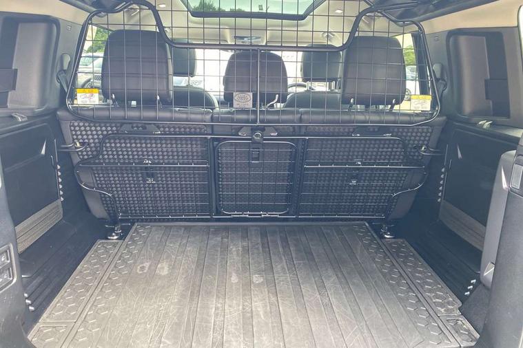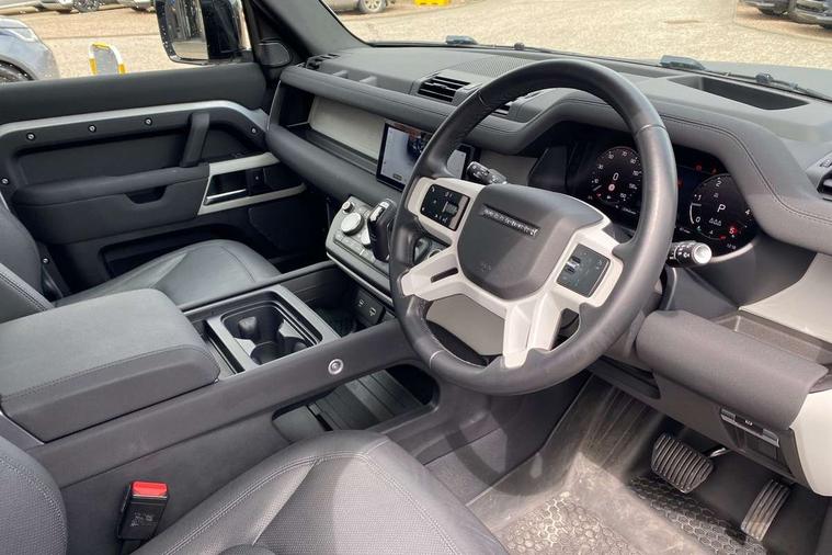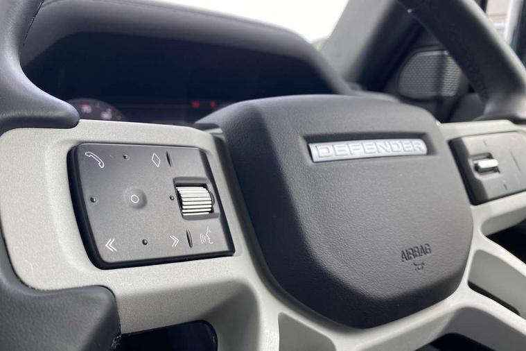 360 degree parking aid, 3D Surround Camera with 360 View, 180 Rear View, Front Traffic Detection, Forward Vehicle Guidance, Tow Hitch Assist and clear sight Ground View, Adaptive cruise control, Android Auto, Apple CarPlay, Assisted tailgate with soft close, Blind spot assist, Bluetooth system, Brake pad wear indicator, Clear exit monitor, Connected navigation pro, Driver condition monitor, Electric power assisted steering (EPAS), Interactive driver display, Lane keep assist, Push button start, Rear traffic monitor, Traffic sign recognition with adaptive speed limiter, Trip computer, Wade Sensing, 8 speed automatic transmission, All wheel drive system, Twin speed transfer box, DAB Radio (Digital Audio Broadcasting), Pivi pro connected, Automatic headlight levelling, Automatic headlights, Centre high mounted stop light, Electric heated/power fold door mirrors with approach lights and auto dimming driver side, Electric windows with one touch open/close and anti-trap, Follow me home lighting, Heated rear window with timer, Heated windscreen, LED tail lights, Puddle lights, Rain sensing windscreen wipers, Rear fog lights, Rear side wing doors, Rear wiper, Side hinged tailgate, Trailer stability assist, 12V power socket in loadspace, 3 seat bench in 2nd row, Alpine lights, Durable rubber cabin flooring, Durable rubber loadspace flooring, Footwell lights, Front passenger isofix child seat attachment, Loadspace cover, Loadspace Hook, Multifunction steering wheel, Overhead stowage for sunglasses, Premium cabin lighting, Rear headrests, Rear ISOFIX, Rear reading lights, Single front passenger seat, Standard seat configuration, Storage glovebox, Sunvisors with illuminated vanity mirrors, Online pack with data plan - Defender, 5 x 3 point seatbelts, ABS, Brake hold function, Cornering brake control (CBC), Customer configurable autolock, DSC - Dynamic Stability Control, EBD - Electronic brakeforce distribution, Electric parking brake (EPB), Emergency brake assist, Emergency braking, ESP + traction control, Front airbags with passenger seat occupant detector, HDC - Hill descent control, Hill launch assist, Low traction launch, Power operated child locks, Remote for (e-Call, Optimised assistance call, InControl app, Climate, beep and flash and door), RSC - Roll stability control, Seat belt reminder, TPMS (Tyre pressure monitoring system), Alarm, Immobiliser, Intrusion sensor, Keyless entry, Locking wheel nuts,