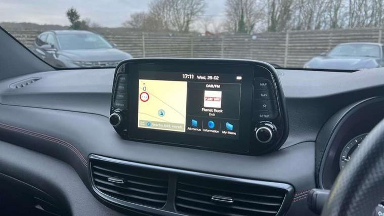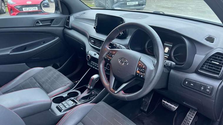 8" touchscreen satellite navigation including traffic messaging channel, map care and live services, Apple car play/Android Auto, Bluetooth system, Cruise control + speed limiter, Digital clock, Drive mode selector, Driver alert system, Emergency stop signalling system, Front and rear parking sensors, Lane keep assist, PAS, Rev counter, Reversing camera, Roll over sensor, Speed limit information, Tailgate open warning light, Trip computer, Trip odometer, Water temperature gauge, Windscreen washer fluid sensor and warning indicator, Wireless phone charging pad, 2 front and 2 rear speakers with 2 tweeters, DAB Digital radio, Steering wheel mounted audio/phone controls, USB and aux connection in front, Adjustable intermittent front windscreen wipers with aero wiper blade, Auto dimming rear view mirror with compass, Automatic defog system, Automatic headlights with dusk sensor, Automatic windscreen wipers with rain sensor, Black door mirrors with integrated indicators, Black outside mirror covers, Black roof rails, Body colour bumpers, Body colour exterior door handles, Electric front/rear windows with drivers one touch/anti-trap, Electrically adjustable, heated and power folding door mirrors, Follow me home headlights, Front fog lights, Grey bodyside mouldings, Halogen projector headlights, Integrated front spoiler, Integrated rear spoiler, LED brake lights, LED daytime running lights, LED rear lights, N Line Badging, N Line Exclusive front and rear bumpers, N Line grille, Positioning Lights - LED, Privacy glass - Rear windows and tailgate, Rear skid plate - Grey, Rear wash/wipe with intermittent wipe setting, Static Cornering lights, Tinted glass with windscreen shade band, Trailer stability assist, Twin exhaust pipes, 12V power outlets in front console and luggage compartment, 60/40 split folding rear seat, Adjustable head restraints, Black headliner, Chrome interior door handles, Cupholders in centre and rear console, Door courtesy lights, Driver and passenger front seat pockets, Driver and passenger sunvisors with illuminated LED vanity mirrors, Driver's seat electric lumbar support, Driver's seat height adjustment, Dual zone climate control, Front and rear door pockets, Front armrest with storage box, Front door pocket bottle holders, Heated front seats, Height/reach adjustable steering column, Illuminated/air conditioned glove compartment, ISOFIX child seat anchorage points attached on outer rear seats, Logo on seat backrests, Luggage area underfloor compartment, Luggage compartment lighting, Luggage cover, Luggage hooks, Luggage net, Manual height adjustable front passenger seat, Map and reading lights, N Line branded gear stick, N Line branded leather steering wheel, N Line Leather/suede upholstery, Reclining rear seats, Red stitching on central pad, Red stitching on steering wheel, Retractable load cover, Sunglasses holder, 3x3 point rear seatbelts, Active bonnet, Anti-lock brake system (ABS), Autonomous emergency braking, Brake assist function, Childproof rear door locks, Downhill brake control, Driver and passenger airbags, Drivers knee airbag, Electronic parking brake, ESP, Front passenger airbag deactivation switch, Front seatbelt pretensioners, Front side airbags + full size curtain airbags, Height adjustable front seatbelts, Hill start assist control (HAC), Seatbelt warning, Traction control, Tyre pressure monitoring system with individual tyre pressure display - TPMS, Vehicle stability management, Deadlocks, Immobiliser, Locking wheel nuts, Perimeter alarm, Remote control central locking, Smart key with keyless entry and engine start/stop button, Speed sensitive auto door locking, 19" Alloy wheels, Tyre repair kit,