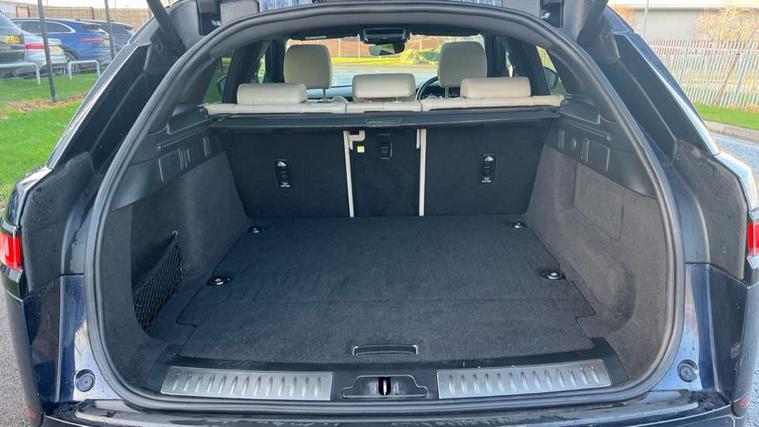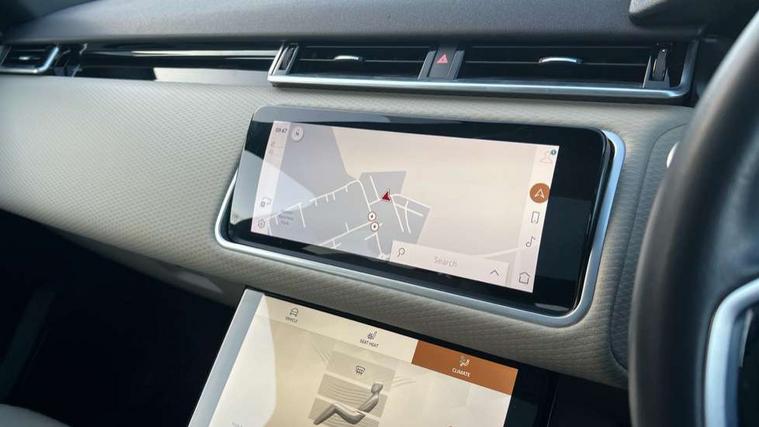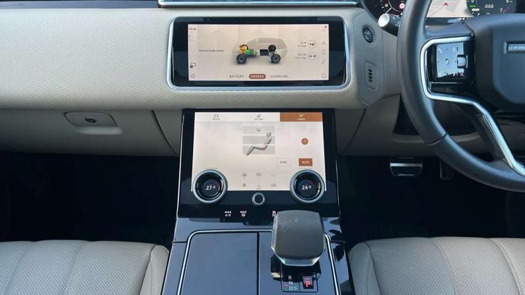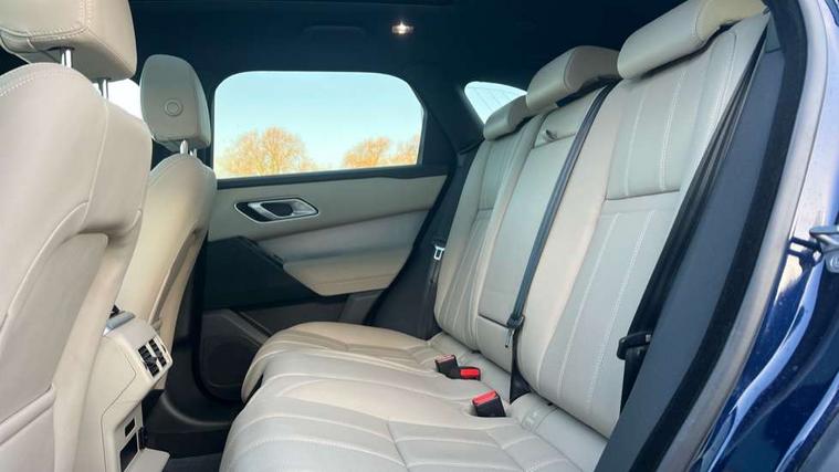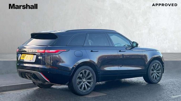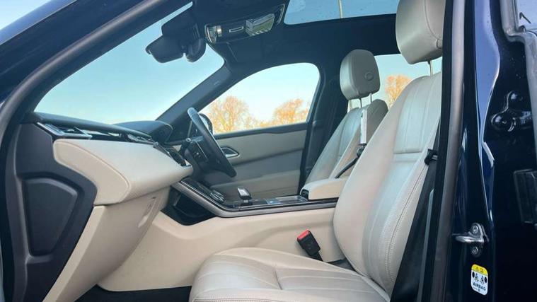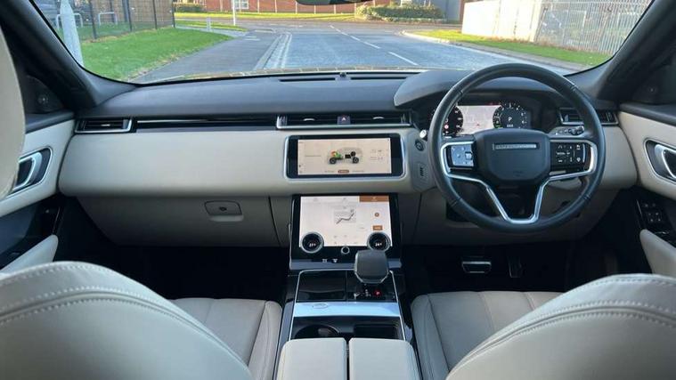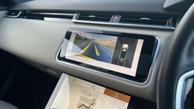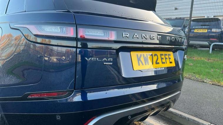 10" deployable touchscreen, Android Auto, Apple car play, Blind spot assist, Bluetooth connectivity, Brake pad wear indicator warning light, Driver condition monitor, eCall emergency call system, InControl remote, Interactive Driver display instrument cluster, Land Rover InControl apps, Lane keep assist, Pivi pro with connected navigation, Push button start, Rear traffic monitor, Service indicator, Speed proportional electronic power assisted steering (EPAS), Traffic sign recognition with adaptive speed limiter, Trip computer, Voice control system, 8 speed automatic transmission, AC/DC charging, Adaptive dynamics, All terrain progress control, Coil suspension system, Home charging cable, Open differential with torque vectoring by braking, Public charging cable, Single speed transfer box, Digital Audio Broadcast radio-DAB, Steering wheel mounted controls, Acoustic laminated windscreen, Adaptive front lighting system, Auto dimming interior rear view mirror, Automatic headlamp levelling, Automatic headlights, Body coloured bumpers, Boot protection plate, Electric heated/power fold door mirrors with approach lights and auto dimming driver side, Electric windows with one touch open/close and anti trap, Flush deployable exterior door handles, Follow me home headlights, Heated rear window with timer, Heated washer jets, Heated windscreen, LED 3rd brake light, Metal load space scuff plates, Rain sensor windscreen wipers, Rear animated directional indicators, Rear fog lights, Rear side wing doors, Rear wash/wipe, Tailgate/boot lid spoiler, Trailer stability assist, Velar and R-dynamic badge, 3 seat bench in 2nd row, Ambient lighting, Bright metal pedals, Driver/passenger sunvisors with illuminated vanity mirrors, Isofix system on outer rear seats, Loadspace cover, Overhead lighting console, Overhead stowage for sunglasses, Passive front headrests, Rear air vents, Rear centre headrest, Satin chrome gearshift paddles, Single front passenger seat, Standard interior, Twin front cupholders, Twin sliding front centre armrest, Online pack with data plan - Velar, 380mm front brakes and 325mm rear brakes, 3x3 point rear seatbelts, Anti-lock braking system (ABS), Cornering brake control, Curtain airbags, Customer configurable autolock, Door side intrusion beams, Driver airbag, DSC - Dynamic Stability Control, Electronic brake force distribution, Electronic parking brake, Electronic traction control, Emergency brake assist, Emergency braking, Front and rear seatbelt reminder, Hill descent control, Hill launch assist, Low traction launch, Passenger airbag, Power operated child locks, Rear airbags, Roll stability control, Side airbags, Tyre pressure monitoring system, Unpainted brake calipers, Global lock and unlock switch on driver door, Immobiliser, Intrusion sensor, Keyless entry, Lock only switch on front passenger door, Locking wheel nuts, Perimetric alarm, Remote central locking,