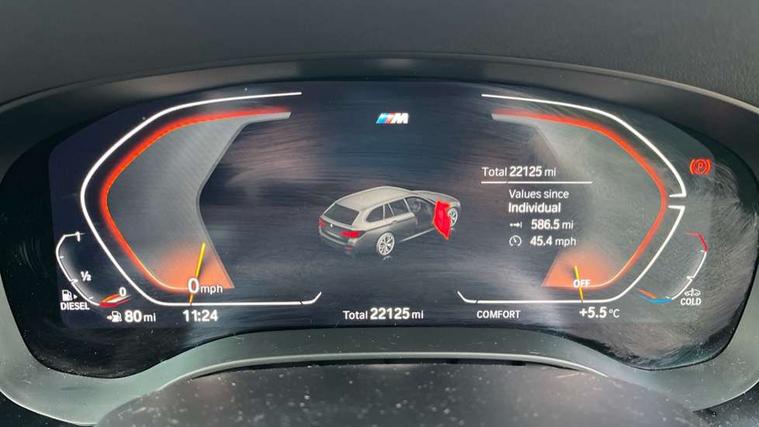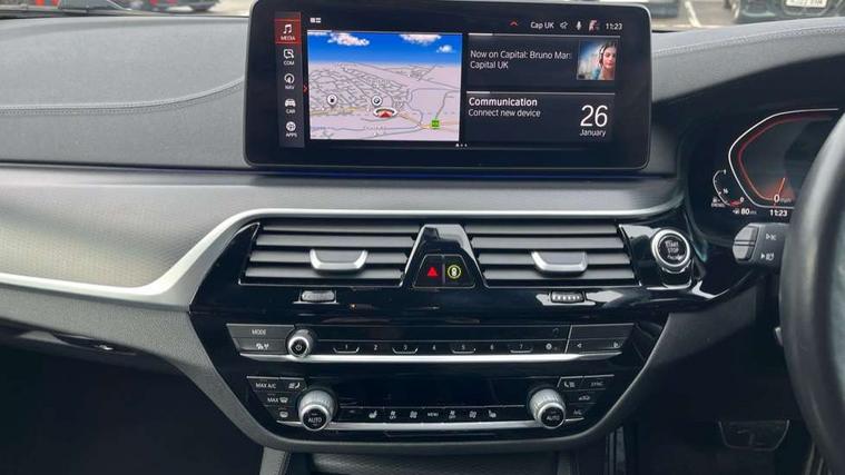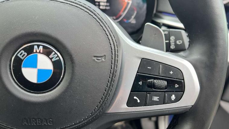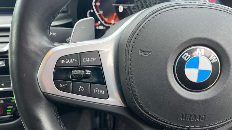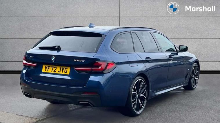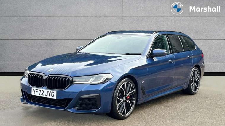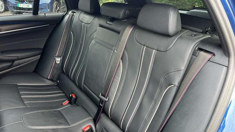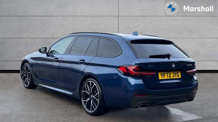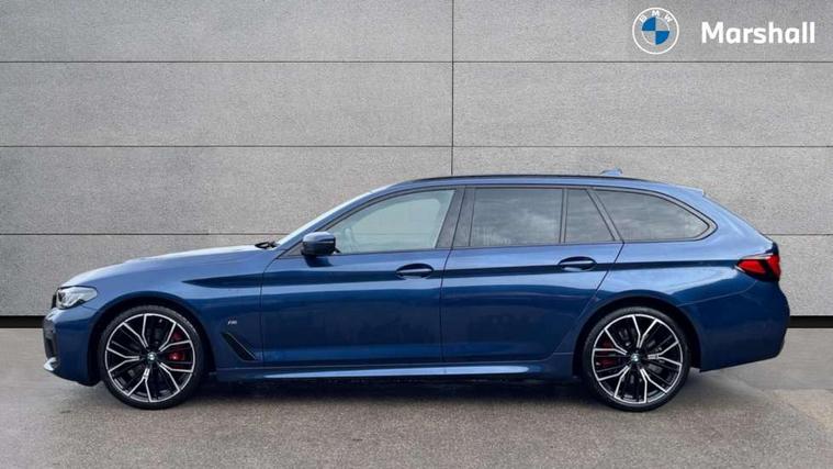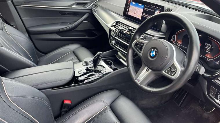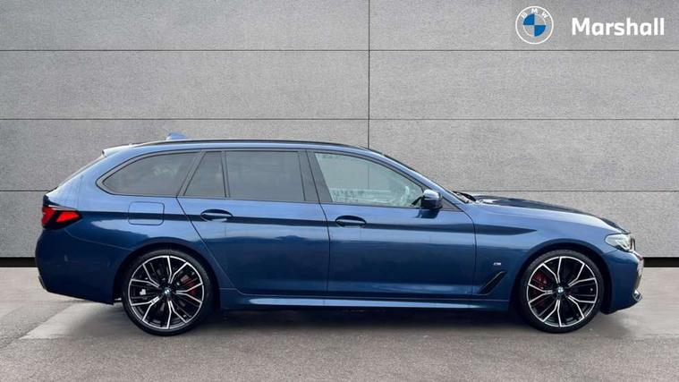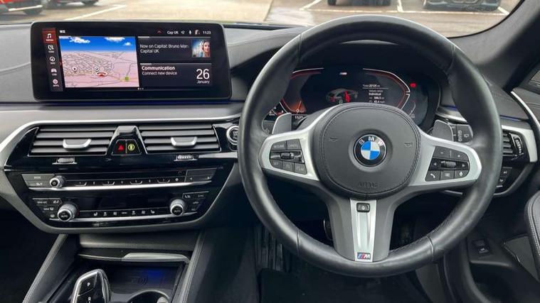 32GB hard disc drive (HDD) memory, Active Guard, Bluetooth connection, BMW ConnectedDrive online services, BMW Live Cockpit Professional sat nav system with 12.3" instrument display and high resolution control display, BMW Teleservices, Brake pad wear indicator, Cruise control with brake assist, Driving experience switch, eCall emergency call system, Electric boot lid - electrically opening/closing rear tailgate, Electric Power Steering (EPS) with Servotronic, iDrive controller with shortcut buttons, Intelligent emergency call, Multifunctional instrument panel, Oil sensor for level and grade, On board computer inc. average speed, fuel consumption, liquid crystal Info display, journey computer, outside temperature display, personal profile, On-board diagnosis - OBD, Powered by Operating System 7.0, Service interval indicator, Speed limiting function, Stop/start button, 48V Mild hybrid technology, Diesel particulate filter, Drive performance control with ECO PRO comfort + sport mode, Engine cover with twin turbo designation, M sport suspension, Steptronic sport transmission with gearshift paddle switches on steering wheel, DAB Digital radio, Favourite buttons, Acoustic glazing, All round anti-corrosion system, Automatic windscreen wipers and automatic headlight, Automatically dimming rear view mirror, BMW Individual high gloss shadow line includes exterior mirror frame, window frame surround, B pillar finish, air breather in high gloss black, Body colour door handles, Body coloured bumpers, Door handle illumination, Dynamic brake lights with LED technology, Electric front and rear windows with fingertip open/close + anti-trap facility and comfort closing function, Electrically adjustable and heated exterior mirrors includes integrated direction indicators and automatic parking function, Folding exterior side mirror with auto- dimming, Follow me home headlight function, Heated windscreen washer jets, High gloss black active air stream kidney grille, High gloss shadow line roof rails, Independent opening for tailgate window, LED daytime running lights, LED Headlights, LED third brake light, M designation on front side panels, left and right in chrome, M Sport exterior styling, Preparation for high beam assistant, Rear side wing doors, Rear wiper, Trapezoidal visible exhaust tailpipes, xDrive designation on tailgate, 12V power socket in front and rear, 3 seat bench in 2nd row, 40/20/40 split folding rear seats with additional mechanism in luggage compartment, Anthracite headlining, Armrest - front and rear integrated door trim, centre console includes storage compartment, rear centre includes 2 cupholders, Child seat ISOFIX attachment with rear outer seats includes top tether, Cup holders (2 front and 2 rear), Front and rear footwell lights, Front reading lights, Height and length adjustable steering column and activation via lateral lever on the steering column, Lockable glove compartment with light, M door sill finishers, M specific pedals, M specific velour floor mats, Multifunction controls for leather steering wheel, Rear headrests, Retractable luggage compartment dividing net, Single front passenger seat, Three spoke sport M leather steering wheel, Ambient lighting pack - 5 Series, Connected package professional - 5 Series, M Aerodynamic pack - 5 Series, Airbags - driver/front passenger, rear and side, first and second row seats head airbags, front passenger seat airbag deactivation, Anti-lock braking system (ABS), Automatic Stability Control (ASC), Brake assist function, Brake energy regeneration, Cornering brake control (CBC), Crash sensor activating central locking release, hazard warning lights, fuel cut off and interior lighting, Deformation zones - front and rear with door reinforcements and bumpers up to 2.5 mph, DSC - Dynamic Stability Control, Dynamic brake control, Dynamic Traction Control - DTC, Electromechanical parking brake with automatic drive away release and auto hold function, Electronic brake force distribution, Engine drag torque control, Front and rear brake discs with interior ventilation, Front head restraints with anti-whiplash, Hill start assist, Mechanical child proof lock on rear doors, Passive protection for pedestrians, Rear door child safety locks, Side impact protection, Three point seat belts for all four seats, Two tone horn, Tyre pressure indicator, Warning triangle and first aid kit, Alarm system (Thatcham 1) with remote control and electronic engine immobiliser, Locking wheel bolts,