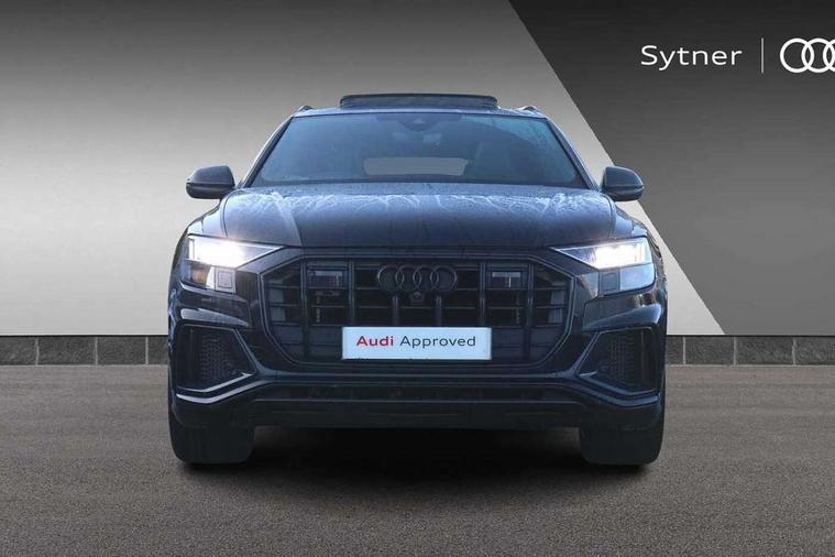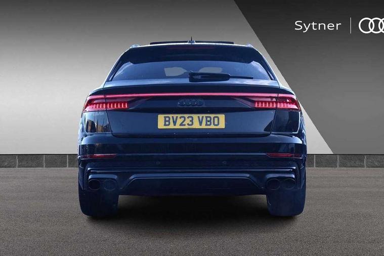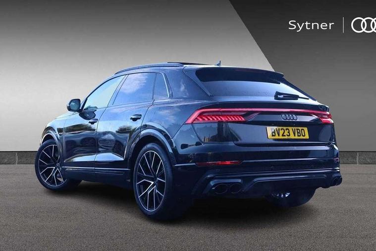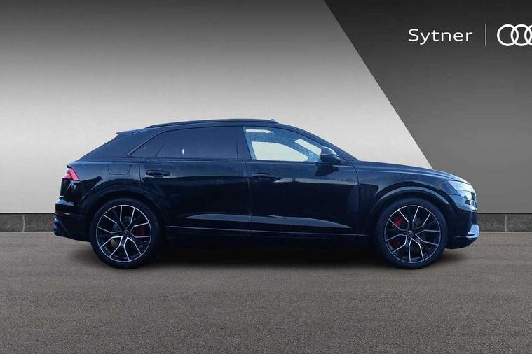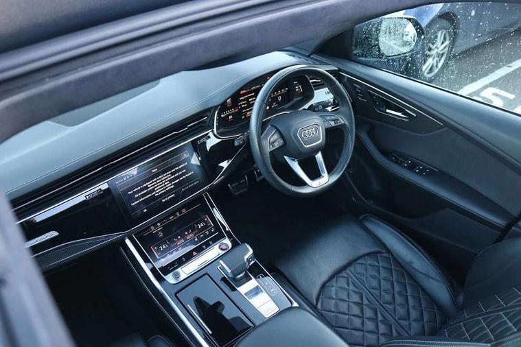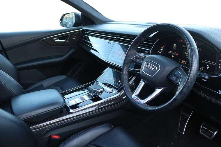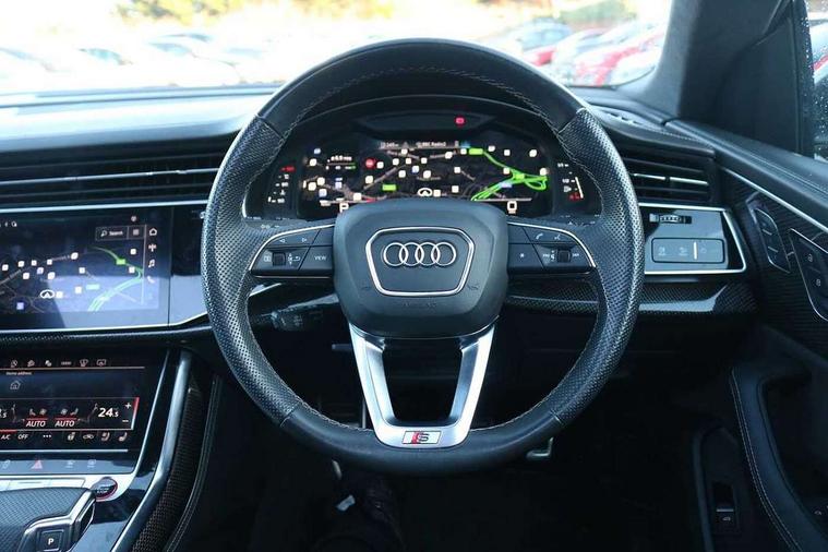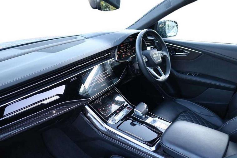 10.1" and 8.6" Dual colour touchscreens, 2 USB C ports with charging functionality in the rear, 360 camera, Adaptive cruise control, All wheel steering, Audi connect safety and service (e-call), Audi connect with Amazon Alexa Integration, Audi drive select, Audi phone box light with wireless charging, Audi side assist, Audi smartphone interface includes wireless Apple carplay/Android Auto, Audi virtual cockpit plus, Automatic start/stop system, Camera based traffic sign recognition, Collision avoidance assistant, Cross traffic assist front and rear, Electro-mechanical PAS, Head up Display, Lane departure warning with emergency assist, Low washer fluid indicator, MMI - Multi Media Interface control system, MMI navigation plus with MMI touch, Natural voice recognition, On board computer, Operating buttons in black, glass look with haptic feedback, Power door closure, Power operated tailgate, Predictive efficiency assistant, Remote park assist plus, Service interval indicator, Turn Assist, 48V Mild hybrid technology, 85 litre fuel tank, Electromechanical active roll stabilisation, Quattro sports differential, S specific Adaptive air suspension, Audi music interface with 2 USB ports with charge and data functions, Aux-in socket, Bang + Olufsen sound system, DAB Digital radio, 3rd brake light, Acoustic windscreen, Adaptive windscreen wipers with integrated washer jets, Audi beam, Audi HD Matrix LED headlights with dynamic front and rear indicators, Auto dimming frameless rear view mirror, Coming/leaving home lighting function, Electric front+rear windows, Electric panoramic glass sunroof, Electrically folding auto dimming/adjustable/heated door mirrors with memory function, LED side indicators and kerb view function for passenger side, Gloss black finish for exterior Audi rings and SQ8 logo, Headlight washers, Heat insulating glass in windshield, High gloss black in side window trims, LED signature daytime running lights, Platinum grey front spoiler lip and diffuser insert with honeycomb grille in black, Privacy glass - dark tinted rear and rear side windows from B-pillar backwards, Rain and light sensors, Rear side wing doors, Rear wiper, S specific dual brach chrome tailpipes on both the left and right, S specific front and rear bumpers, S specific side skirts in matt selenite silver, Side air inlet grilles in matt anthracite black, Styling accents on front bumper in anthracite black, Trim and underbody protection in matt selenite silver, 3 bench rear seats in 2nd row, 3 spoke heated leather multi-function sport steering including paddle shift, 4 zone deluxe automatic climate control, 4-way lumbar support for front seats, 40:20:40 split folding rear bench seat, Audi phone box light, Black dinamica headlining, Comfort front centre armrest, Double sun visor with illuminated vanity mirror on driver and passenger side extendable, Driver and front passenger seat memory function for electrically adjustable front seats, Electric luggage compartment cover, Electric sunblind for the rear side windows and manual sunblind for the rear window, Front head restraints, Front/rear floor mats, Heated front and outer rear seats, ISOFIX child seat mounting for front passenger seat and 2 outer rear seats with top tether child seat mounting for all 3 rear seats, Luggage compartment sill protection in stainless steel, Massage and ventilation function for front seats, Power adjustable steering wheel, Rear centre armrest with 2 cupholders, Rear headrests, Seat cushion displaceable by 100mm in the ratio 60:40, Single front passenger seat, Stainless steel pedals, Tool kit, Valcona leather upholstery + front super sport seats with S embossed logo, Ambient lighting package plus - Q8, Extended leather pack - Q8, 3 point seatbelts on all seats, Audi pre sense basic, Audi pre sense front, Audi pre sense rear, Child locks on rear doors, Driver and front passenger, front side and curtain airbags, Electromechanical parking brake, Electronic Stability Control (ESC) including ABS, ASR and EDL, Exit warning, Front passenger airbag deactivation, Hill descent control, Hill hold assist, Predictive pedestrian protection, Seatbelt monitoring, Traction control, Tyre pressure loss indicator, Warning triangle and first aid kit, Advanced key, Anti theft alarm with tow away protection, Anti-theft wheel bolts and wheel loosening detection, Immobiliser, 22" x 10J 5 V spoke star design alloy wheels in gloss anthracite black, Tyre repair kit,