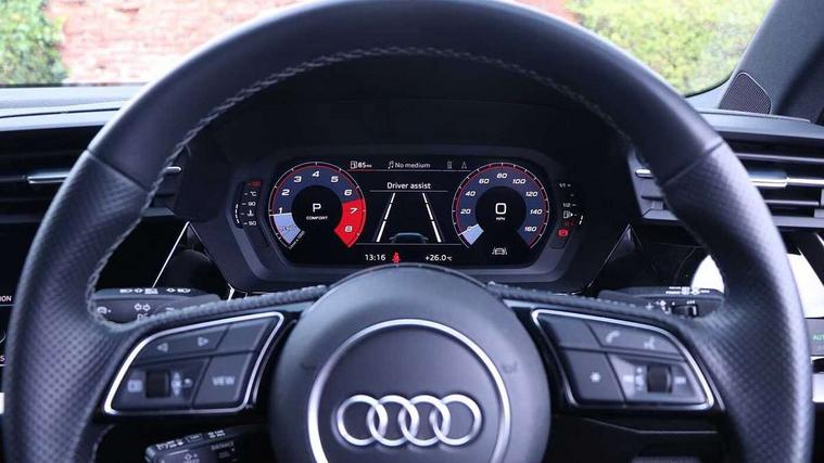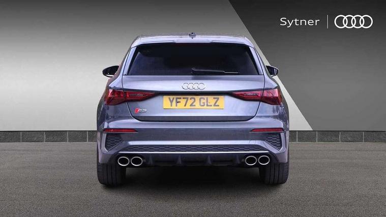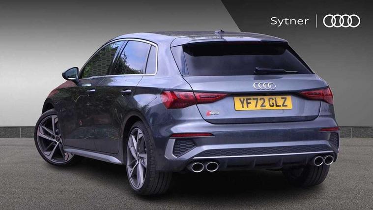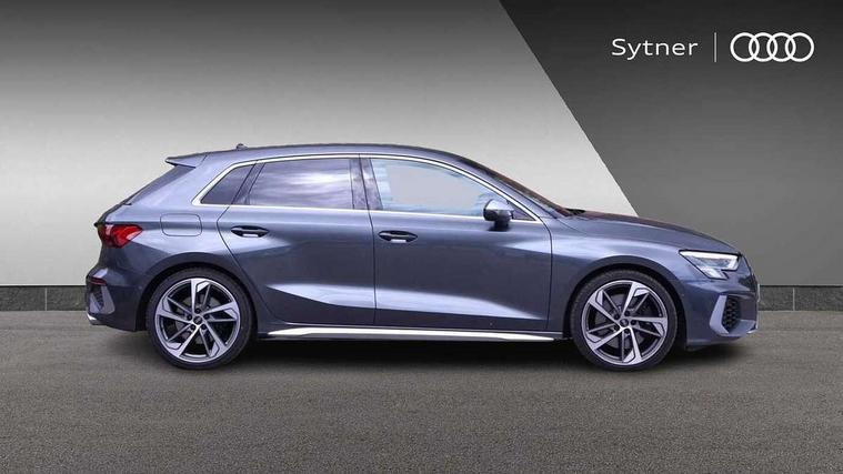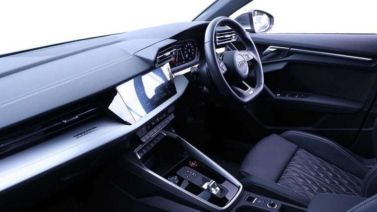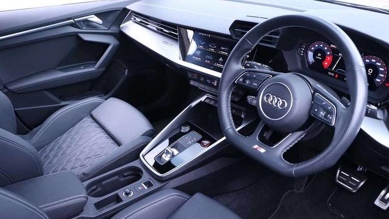 Audi drive select (Auto, Comfort, Dynamic, Efficiency and Individual), Audi smartphone interface, Audi Virtual Cockpit - 10.25" digital and colour instrument cluster, Automatic start/stop system with recuperation, Bluetooth interface, Collision avoidance assistant, e-Call (emergency call), Lane departure warning system, MMI Navigation Plus with high resolution 10.1" colour touch screen display, Progressive steering, Service indicator, Trip computer, Voice control system with natural language interaction, Quattro permanent all wheel drive, S sports suspension, 2xUSB-C connection with data and charging functions, 6 passive loudspeakers, DAB Digital radio, 3rd brake light, Acoustic glass windscreen, Aluminium window trim, Audi Beam uses LEDs to project the Audi S3 logo, Auto dimming frameless rear view mirror, Electrically adjustable/heated/folding/dimming door mirrors with kerb view includes integrated LED indications + kerb view function for passenger side, Front electric windows, Headlight washers, Illuminated aluminium inserts front door sills with S logo, LED daytime running lights, LED headlights with LED rear lights and dynamic rear indicators, Light and rain sensors, Privacy glass - dark tinted rear window, rear door and side windows, Rear electric windows, Rear side air outlets in grained matt black, Rear side wing doors, Rear wiper, 12V socket and storage compartment in front centre console, 3 seat bench in 2nd row, 40/20/40 split folding rear seat bench with cupholder, Black cloth headlining, Dual zone electronic climate control, Front and rear headrests, Front/rear floor mats, Heated front seats, Height and reach adjustable steering wheel, Illuminated vanity mirror, Interior lighting - glove compartment light and right hand side, Luggage compartment floor covering, Manually adjustable front seats, Seat side bolsters, Single front passenger seat, Stainless steel pedals and front footrest in black, Aluminium interior elements pack - A3 Sportback, Design body styling - A3 Sportback, LED interior lighting pack - A3 Sportback, Storage pack - A3 Sportback, 3x3 point rear seat belts, Audi pre sense front, Driver and front passenger airbag with passenger airbag deactivation, Electronic Stabilisation Control (ESC) including ABS, ASR and EDL, First aid kit with warning triangle and 2 safety vests, Front side airbags with head airbags and interaction airbag, Pre-sense front with pedestrian and cyclist detection, Seatbelt monitoring, Tyre pressure loss indicator, Anti theft alarm, Anti-theft wheel bolts, Electronically operated child lock, Immobiliser, Remote control central locking, Accent surfaces in the dashboard and centre console in platinum grey silk effect paint finish, Dark spectrum aluminium inlays,