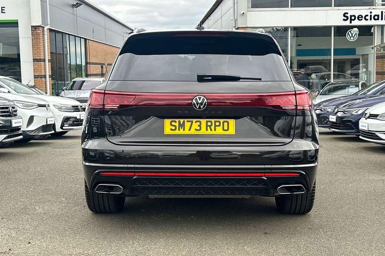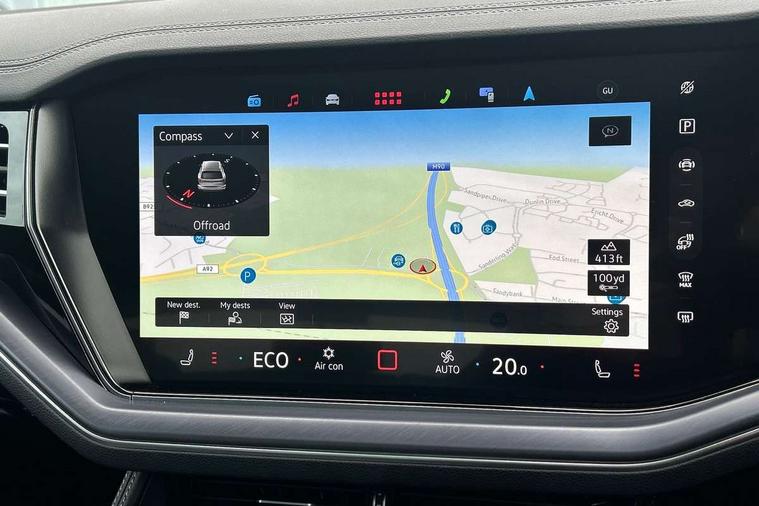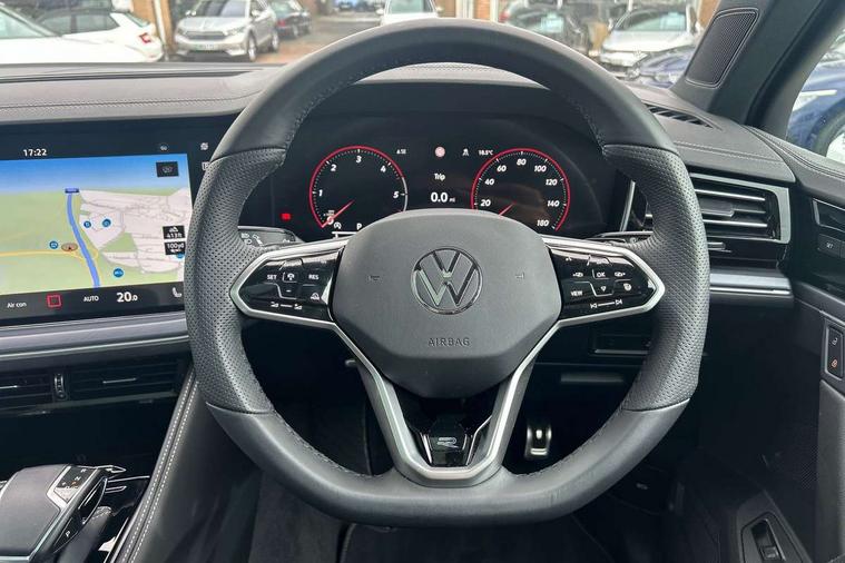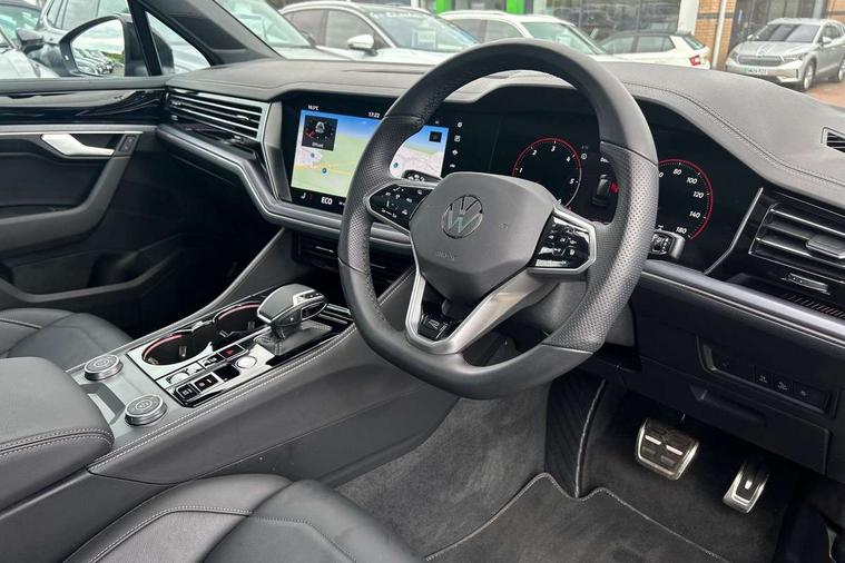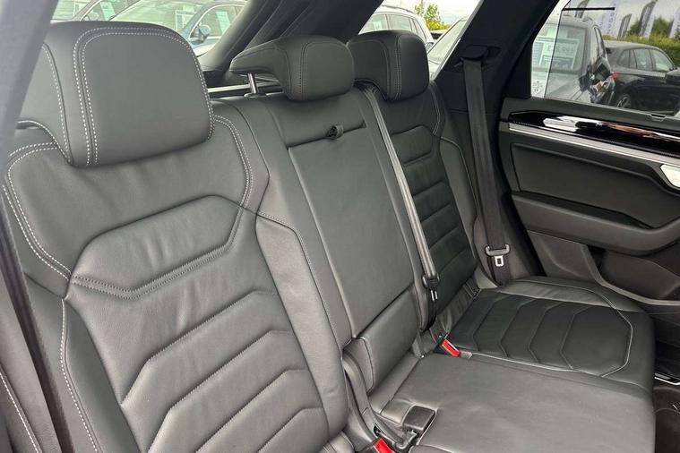 15" Screen Top infotainment system Premium (MIB3), Adaptive cruise control, Advanced driver attention and drowsiness monitor, Driver profile selection, Dynamic road sign display, E-Sim card for online connectivity, eCall emergency system, Innovision cockpit, Intelligent park assist, Mobile phone interface with inductive charging, Multi-colour Active Info display, Park Assist - Sensor controlled steering aid to assist parallel or bay parking, PAS, Warning signal and warning light for front and rear seatbelts not fastened, Wireless app connect, Adaptive chassis control, DAB Digital radio, Diversity antenna for AM/ FM reception, We Connect and We Connect Plus functionality, Automatic coming/leaving home lighting function, Automatic headlights, Black door mirrors, Black style comfort bumpers, Dynamic headlight range control with dynamic cornering light, Electric front tilt/slide panoramic sunroof and fixed rear sunroof, Electrically power adjustable, heated, folding, auto dimming, front passenger exterior door mirror lowering function, External USB type C socket and charging sockets, Gloss black roof rails, HD LED Matrix beam plus digital headlight projection with variable light distribution, Headlight washers, Heat insulating darkened glass in side and rear windows, Heated windscreen washer jets, Highway light, LED 3rd brake light, LED daytime running lights, LED rear combination lamp with variable lighting functions and special styling, Poor weather light, Rain sensor, Rear exhaust tailpipe, Rear fog light with back up light on both sides, Rear light bar and illuminated logo, Rear side wing doors, Rear wiper, Stainless steel door sill protection, 12V socket in centre console, 3 rear headrests, 3 seat bench in 2nd row, 4 zone climate control, Airbag label on sun visor and B-pillar, Brushed stainless steel pedals, Double sun visors with illuminated vanity mirrors, Front + rear carpet mats, Front centre armrest, Leather wrapped multifunction sports steering wheel, heated, with touch control and shift paddles, Mechanical rear seat release, Power adjustable lumbar support in front, Power seats in front, right side with memory features and seat cushion depth adjustment, Rear seat backrest and split folding with center armrest, Single front passenger seat, Tool kit, Memory pack plus - Touareg, 3 point seatbelts, outer rear with ECE lable, ABS, Child locks on rear doors, Curtain airbags, Driver and front passenger safety-optimised head restraints, Driver/Front Passenger airbags, Extended pedestrian protection measures, Front assist, Front seat side impact airbags, Generative braking with start and stop system, Height adjustable 3 point front seatbelts with pre tensioners, Passenger airbag deactivate switch, Three 3 point rear seatbelts, Two tone horn, Tyre pressure loss indicator, Warning triangle and first aid kit, Alarm system with interior protection, Easy open and close sensor controlled luggage compartment opening and closing with remote unlocking, Keyless Access Keyless locking and starting system with SAFELOCK, Aluminium decorative inserts, Black decorative trims, Gloss black decorative inserts in centre console,