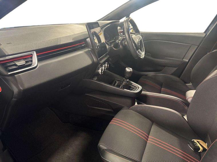 7" TFT colour instrumental display, Cruise control + speed limiter, E-call, Easy link navigation with 9.3" touchscreen+4x20W amplifier+FM DAB double tuner, sound auditorium, 2xUSB/1xjack/bluetooth, smartphone integration plus, Eco mode driving function, Gear change indicator, Lane departure warning system, Lane keep assist, Over speed prevention, Rear parking sensors, Rear view camera, Traffic sign recognition, Trip computer, Variable assistance electric PAS, Auto dimming rear view mirror, Auto light control and rain sensing wiper, Automatic headlights, Body colour door handles, Body colour door mirrors, Body coloured bumpers, Body coloured rear spoiler, Chrome front grille, Chrome window surround, Drivers one touch window with anti-pinch feature, Electric adjustable/heated/folding door mirrors, Electric front windows, Electric rear windows, Exterior rear hidden door handles, Extra tinted glass on rear windows + tailgate, Full C-shape LED front and rear signature lighting, Full LED front and rear headlamps integrating daytime running lights at the front and rear, Gun Metal insert on lower side doors with Clio embossing, LED front fog lights, LED Roof light, Rear fog lights, Rear side wing doors, Rear wiper, RS Line badging, RS Line exterior styling, RS Line side marker chrome, RS Line sports front bumper, RS Line sports lower grill, RS marker chrome gun metal grey sport rear bumper with chrome oval exhaust pipe, Shark fin antenna, Third brake light, Variable speed on front windscreen wipers, 12V Accessory socket, 3 rear height adjustable headrests, 3 seat bench in 2nd row, 6.2L front glovebox, 60/40 split rear seats, Air recirculation control, Auto climate control, Black headlining, Dark roof lining and aluminimum pedal set, Driver's seat height adjustment, Front cupholders, Front decor strip in red, Front door storage bin, Height adjustable front headrests, Height adjustable passenger seat, Height/reach adjust steering wheel, Isofix system on outer rear seats, Multi function steering wheel, Multisense including ambient lighting and selectable drive modes, Pollen filter, RS branded top grain leather steering wheel, RS Line cloth upholstery, RS Line Interior trim including airvent stripe and gearshifter in red, Single front passenger seat, System for Restraint and Protection SRP-front seats, Parking Pack - Clio, Storage pack - Clio, 3 point seatbelts on all rear seats, ABS+EBD+Brake assist, Active emergency braking system, Curtain airbags, Distance warning alert, Driver and passenger front and side airbag deactivation, Driver/Front Passenger airbags, Electronic parking brake with auto hold, ESC - Electronic Stability Control + traction control, Front side airbags(head+thorax), Height adjustable driver's seatbelt, Hill start assist, Seatbelt warning, Tyre pressure warning, Central door locking, Deadlocking system, Hands free key card with push button, start and stop function, Locking fuel filler cap, RAID (Renault Anti-Intruder Device) with automatic door locking, Rear side wing door and window child locking function (front driver door control panel), Remote central locking with thatcham approved immobiliser, Grey dashboard trim, 17" RS diamond cut alloy wheels,