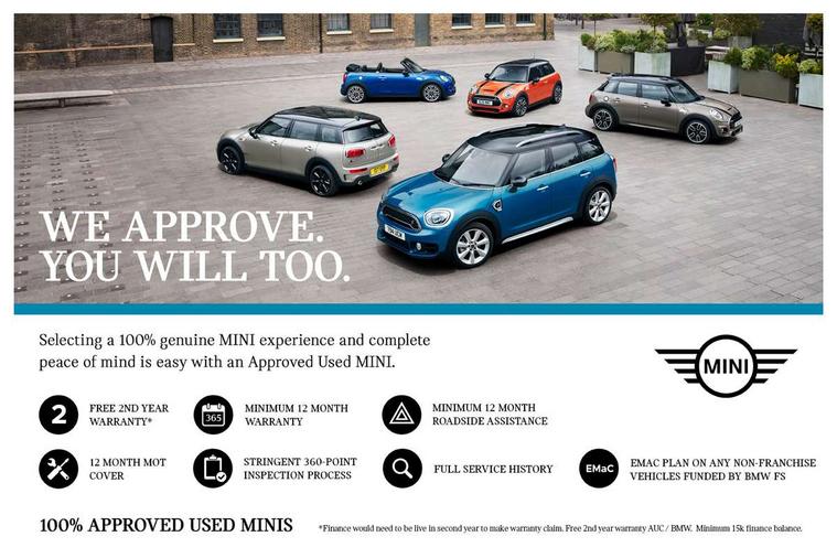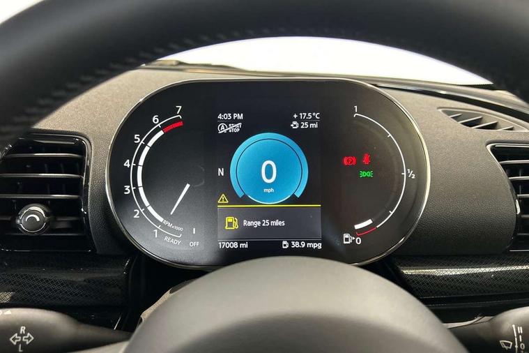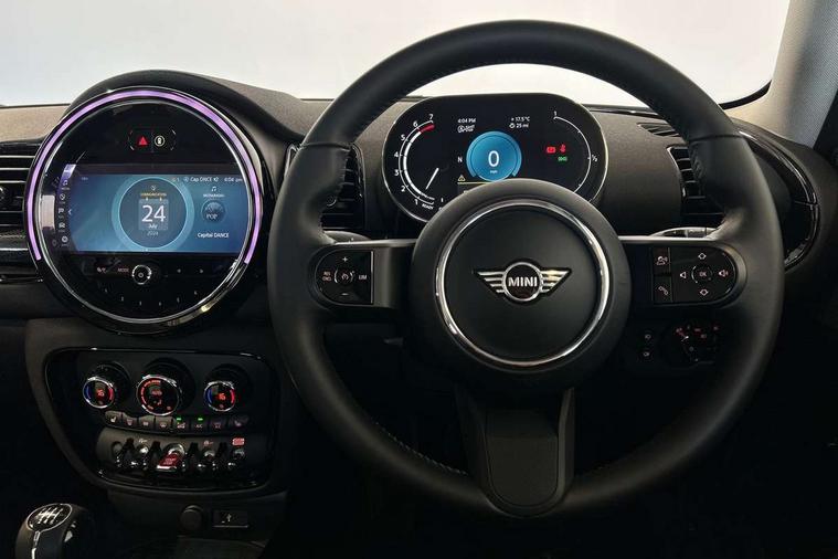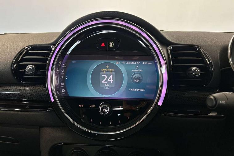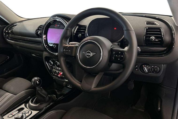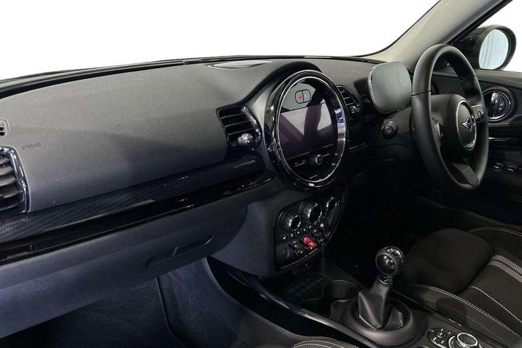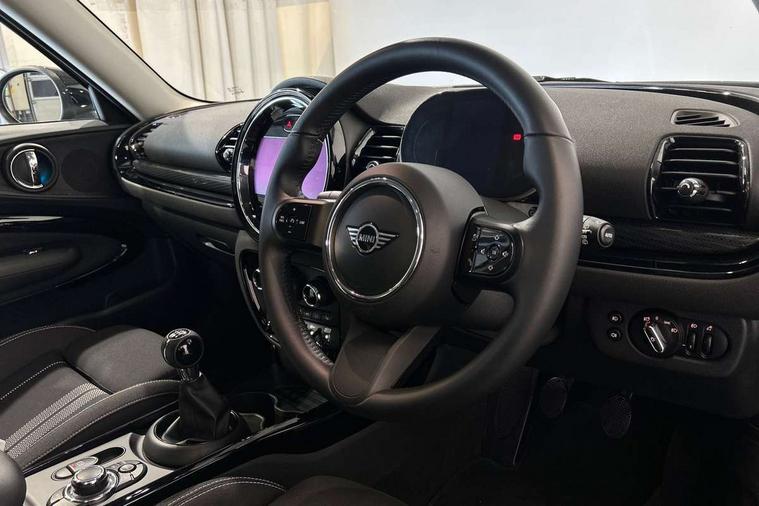 Active Guard incl speed limiting and lane departure functions with auto steering, and front collision warning with brake intervention, Automatic start/stop function with brake energy recuperation, Compatible mobile phone bluetooth with audio streaming, Digital cockpit, Electro-mechanical speed dependant steering assistance, Instrument cluster, Mini E-call, MINI TeleServices, On board computer, 6 Speed manual transmission including gear change indicator display, Double Vanos system, Fully variable valve control, High precision injection, Performance Control, FM tuner and DAB digital radio, Bonnet scoop, Chrome border honeycomb structure radiator grille with S badge, Chrome fuel filler cap, Dynamic brake lights, Electric windows, Heated rear window, Heated windscreen washer jets, LED headlights with closed ring as daytime driving lights, LED rear light with union jack design, Metal door sill strips with Cooper S imprint, Model logo, Model logo on rear doors, Rain sensor with auto headlights, Rear fog lights, Rear window wiper, Side scuttle panel with integrated indicator, Split rear doors, Sun/heat protection glass, Twin exhaust tailpipe, White indicator lenses, 12V Accessory socket in centre console, 3 spoke sport leather steering wheel + limiter function and audio controls, 360L luggage compartment capacity, 4 lashing eyes in luggage compartment, 60/40 split folding rear seat, Chrome interior highlights, Cupholders, English handbook, Front and rear head restraints, Glove compartment, Headliner with grab handles and clothes hooks, Height and length steering column adjustment, Interior lighting with 12 basic colours selectable via toggle switch in roof, Isofix rear child seat preparation, Leather gearshift lever and handbrake gaiters, LED reading lights, vanity mirror lights, front foot well light and spotlight on front seats, Manual air conditioning, Mechanical seat adjustment, driver seat height adjust, forward/back and front seats backrest, Multifunction steering wheel, Storage compartments in doors, Sunvisors with vanity mirrors, Toolkit, Excitement pack - Clubman, Navigation pack - Clubman, 2 tone horn, 3 point seatbelts on all seats, 6 Airbags - front, side, head and seat belt tensioners, Anti-lock braking system (ABS), DSC - Dynamic Stability Control, Electronic handbrake, Front and rear disc brakes, Tyre pressure monitoring system, Alarm system with tilt sensor, monitoring doors, bonnet interior and tailgate, Auto drive away locking, Deadlocking function, Electronic vehicle immobiliser, Locking wheel bolts, Start/stop toggle with keyless go, Tyre repair kit,