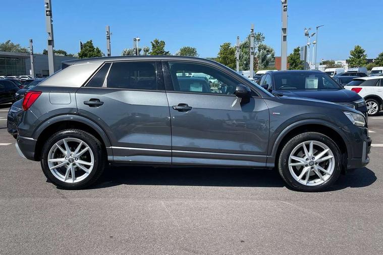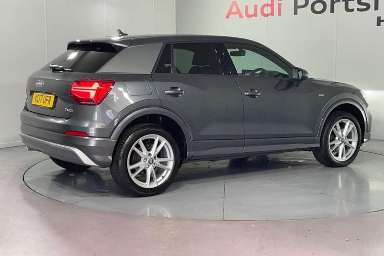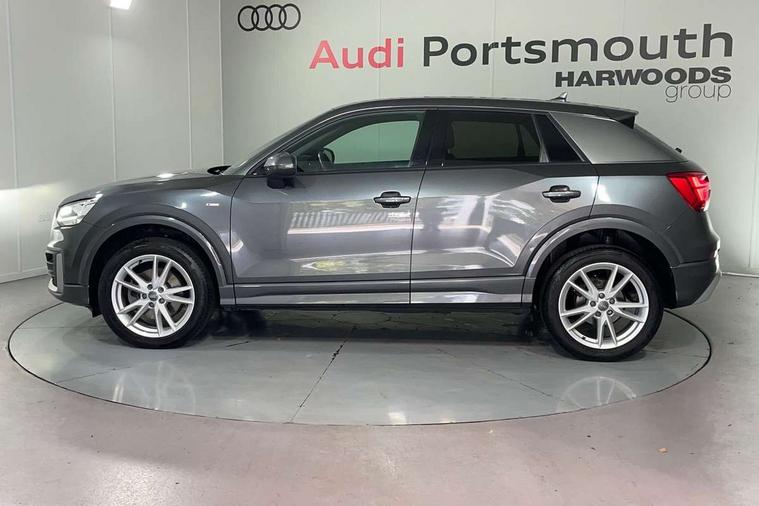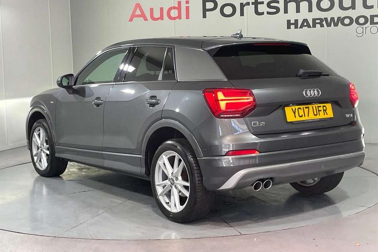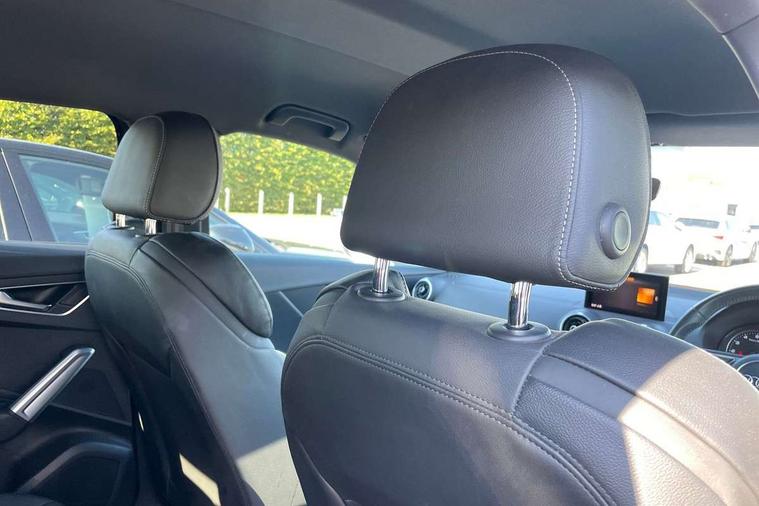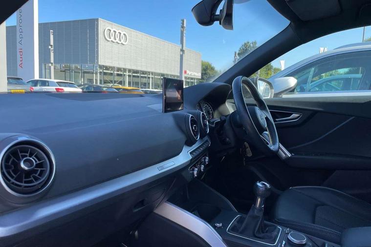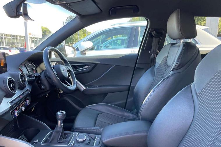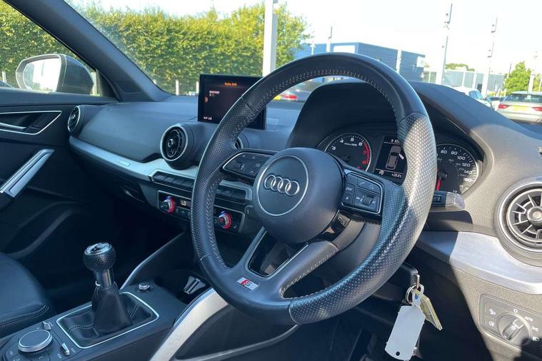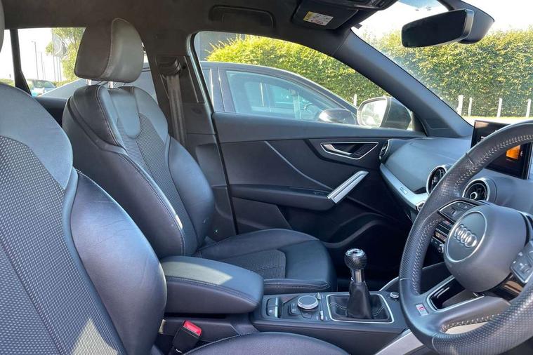 Audi drive select, Audi smartphone interface, Bluetooth hands free telephone connection, MMI - Multi Media Interface control system, PAS, Service interval indicator, Voice control system, Audi music interface, Aux input, CD player, DAB digital radio module, MMI radio plus with 7" colour MMI screen and MMI controller, USB port, Body colour door mirrors, Chrome exhaust tailpipe, Door mirror integrated indicators, Electrically adjustable and heated door mirrors, Front and rear electric windows, Headlight washers, LED headlights with LED rear lights + dynamic rear indicators, Rear wiper, S Line body styling, Sunband for windscreen, Aluminium door sill trims, Black cloth headlining, Centre console with storage/cupholders, Floor mats with contrast stitching, Front and rear door pockets, Front and rear headrests, Front centre armrest, Front sports seats, Glovebox, Height adjustable front seats, Height/reach adjust steering wheel, Illuminated door sills, ISOFIX on front passenger and rear outer seats, Stainless steel pedals, Storage compartment in rear centre console, Full body colour bumper pack - Q2, 3x3 point rear seatbelts, ABS+Electronic Brake force Distribution, Curtain airbags, Driver and passenger airbags, Driver and passenger side airbags, EDL + ASR, Electrically operated child locks on rear doors, Electromechanical parking brake, ESP, Multi-Collision braking, Pre-sense front with pedestrian recognition, Seatbelt warning light, Tyre pressure monitoring system, Warning triangle and first aid kit, Locking wheel bolts, Remote central locking, Thatcham category 1 alarm + immobiliser, Aluminium interior trim, Matt brushed aluminium fascia and door trim inlays,