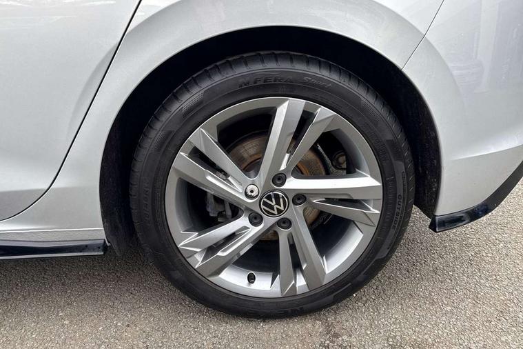 Adaptive cruise control (ACC) with speed limiter and front assist (reacting to vehicles pedestrians and cyclists), Car2X communication, Digital cockpit pro - 10.25" high resolution TFT dash display screen with customizable menus and information, Driver alert system, Dynamic road sign display, eCall - Emergency call service for SOS calls to emergency response, Lane assist, Mobile phone interface with wireless inductive charging function, Multifunction camera for distance control, PAS, Speedo, rev counter, electronic odometer, trip, service interval display, exterior temperature and fuel gauge, Start/Stop function, USB-C ports in the front and rear centre console with increased charging performance, Warning buzzer and light for front seatbelts unfastened, Wireless app connect, Petrol Particulate Filter, XDS electronic differential lock for improved traction and handling, Premium USB cable in choice of either Apple or Android smartphone compatibility, Auto dimming rear view mirror, Automatic headlamp activation with Coming home and Leaving home feature, Automatic headlights, Body colour door handles, Body colour door mirrors with integrated indicators, Body colour rear roof spoiler, Electrically heated and adjustable door mirrors with memory feature, Front and rear electric windows, Heat insulating glass windscreen, Heated rear windscreen, High level 3rd brake light, Highway light, LED License plate illumination, R Line body coloured bumpers, Rain sensor, Rear fog light on one side and reversing lights on both sides, Rear lights incorporating LED technology, Rear side wing doors, Rear tinted glass 65% light absorbing from B pillar backwards, Rear windscreen washer and wiper with interval delay, Welcome light, 12V socket in front centre console, 12V socket in luggage compartment, 3 rear head restraints, 3 seat bench in 2nd row, Ambient lighting - Customisable 30 colour ambient lighting, Ambient lighting, exterior illuminated styling elements at the sides, Black roof lining, Brushed stainless steel pedals, Chrome plated surround to electric mirror button, window switch and air vent surrounds, Drivers and front passengers sun visors with vanity mirrors, Front + rear carpet mats in recycled material, Front centre armrest with storage compartment, Front cupholders x 2, Front passenger seat, Front reading lights x 2 incorporating LED technology, Front seat lumbar support adjuster, Front sports seats, Glovebox, Height adjustable front seats, Height and reach adjustable steering wheel, Isofix child seat preparation for 2 rear child seats and front passenger seat, Luggage compartment lighting, R Line door and side trim panel, R Line front seats integrated head restraints, R-Line leather wrapped multi function sports heated steering wheel, Removable luggage compartment cover, Sardegna cloth upholstery with front and outer rear seats Art Velour inner sides of bolsters, Split folding backrest with centre armrest and unsplit rear seat bench, Titanium black instrument panel, Woven fabric storage compartments in front and rear doors, 3 point height adj front seatbelts + pretensioners, 3 rear three point seatbelts, ABS, Child locks on rear doors, Driver and front passenger airbag with front passenger airbag deactivation, Drivers and front passengers safety optimised head restraints, Electronic parking brake with auto hold, ESC (Electronic Stability Control), Extended pedestrian protection measures, Front and rear passengers curtain airbag system including front side airbags, Front centre airbag, Front disc brakes, Front side airbags with curtain airbags, Rear disc brakes, Two tone horn, Tyre pressure monitoring system, Alarm with interior protection and deactivation via infotainment system, Electronic engine immobiliser, Carbon grey decorative inserts in dash and front door trim panels, High gloss black centre console, Space and weight saver spare wheel,