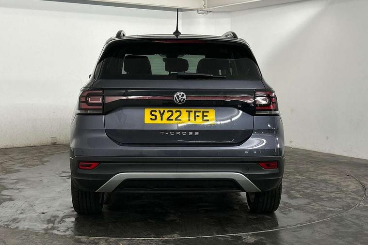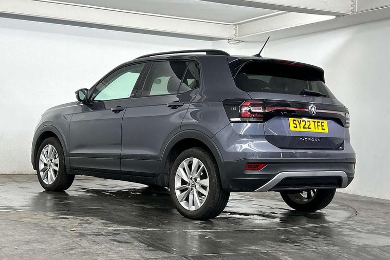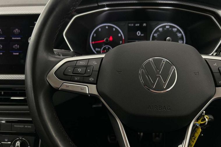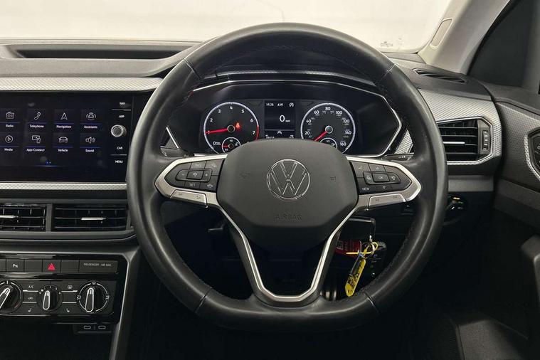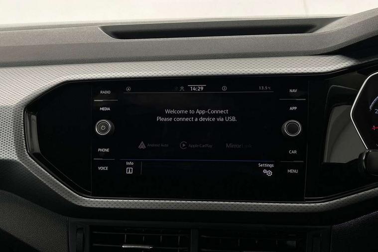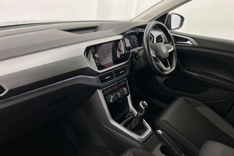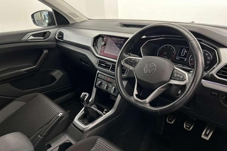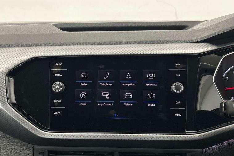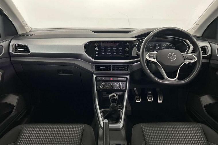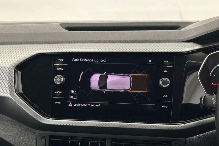 'Lights On' Reminder warning buzzer, Adaptive cruise control including front assist, forward collision warning, autonomous emergency braking, speed limiter, Blind spot monitoring, Bluetooth telephone and audio connection for compatible devices, Car information display, Driver alert system, eCall emergency call system, Lane assist, Low washer fluid warning light, Multifunction computer with visual gear change recommendation for fuel consumption, Operating permit alteration, Power assisted speed sensitive steering, Speedo, rev counter, electronic odometer, trip, service interval display, exterior temperature and fuel gauge, Stop/start system, Warning sound and light for doors and tailgate open, Warning sound and light for front seatbelts unfastened, We Connect Go Dongle, Wireless Car net app connect with Apple CarPlay, combined functionality of Apple CarPlay/Android Auto and MirrorLink, Battery regeneration during braking, Misfuel prevention device, 2x USB connection with USB charging sockets and in rear centre console, DAB Digital radio receiver, Diversity antenna for FM reception, Multi device interface (MDI) with USB connection, Music playback - MP3, WMA and AAC files, Premium USB cable for Apple or Android smartphone compatibility, Simultaneous pairing of 2 compatible mobile devices, Title and cover art display, 3D active badge on B-pillar, Active door sills, Active sill panel trims, Automatic hazard lights activation under emergency braking, Black roof rails, Body colour door handles, Body coloured bumpers, Dusk sensor + automatic driving lights, Electrically foldable, adjustable and heated door mirrors with reverse activated kerb view adjustment on passenger's side, Front and rear electric windows, Front fog lights with static cornering function, Galvanised body, Heated rear window, High level 3rd brake light, Lower door sills and door pillars in black, Radiator grille with high gloss surface and chrome strip, Rear fog light on one side, reversing light on both sides, Rear lights incorporating LED technology, Rear side wing doors, Rear tinted glass 65% approx light absorbing from B pillar backwards, Rear window aerial, Rear windscreen washer and wiper with interval delay, Reflectors in all doors, Tailgate with integrated roof spoiler, Windscreen wipers/ intermittent wipe + 4 position delay, 12V Accessory socket in centre console, 3 rear head restraints and 3 rear three point seat belts with ECE label, 3 seat bench in 2nd row, 60/40 split folding rear seat backrest, Ambient lighting and sourround lighting, Brushed stainless steel pedals, Drawer under drivers seat, Driver and front passenger sunvisor with vanity mirror, Driver's sunvisor with ticket holder, Dust and pollen filter, Front + rear carpet mats, Front and rear reading lights X 2, Front centre armrest with storage compartment, Front seat back storage pockets, Front seats with adj lumbar support, Glovebox, Heating and fresh air system with 4 stage blower, Height/reach adjust steering wheel, Instrument lighting white adjustable panel illumination, Interior light with delay, Isofix child seat preparation for 2 rear child seats, Luggage compartment cover, Luggage compartment lighting, Moveable and foldable Rear bench seat, Single front passenger seat, Storage compartment in drivers and front passengers door, Three spoke multi-function leather trimmed steering wheel and gearknob, Trapeze cloth upholstery, Variable boot floor, Winter pack - T-cross, Anti-lock Braking System (ABS) with Hydraulic Brake Assist (HBA), Automatic post collision braking system, Driver and front passenger safety-optimised head restraints, Drivers and Front Passengers airbags with front passengers airbag deactivation switch, ESC with EDL, ASR, EDTC and trailer stabilisation function, Extended and proactive pedestrian protection, Front and rear curtain airbags, Front seat side impact airbags, Height adjustable 3 point automatic front seatbelts with pretensioners, Hill start assist, Pre crash preventive occupant protection, Rear door child safety locks, Rigid safety cell with front and rear crumple zones, Single torn horn, Tyre pressure loss indicator, Volkswagen roadside assistance, Alarm with interior protection and deactivation via infotainment system, Child security locks in rear doors, Electronic engine immobiliser, Remote tailgate unlocking using key fob, Decorative strips in doors in matt silver/ center console, 17" Clayton alloy wheels + anti theft wheel bolts, Breakdown kit,