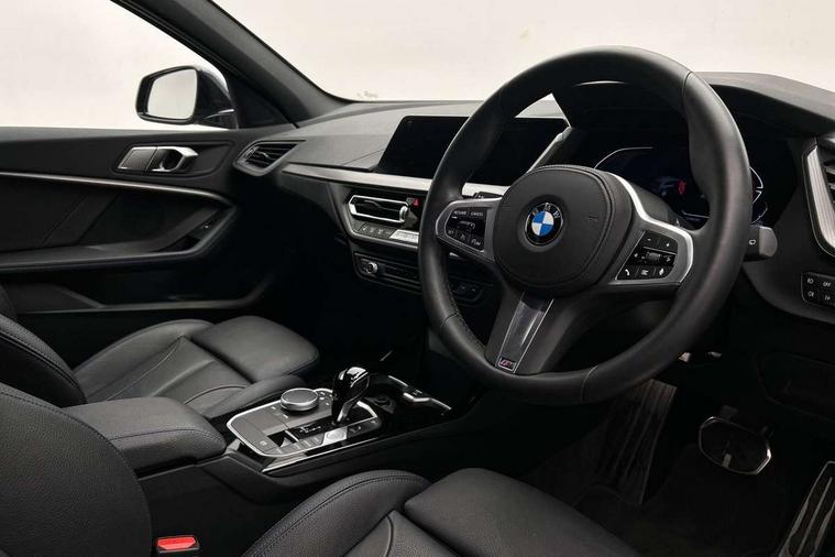 Active guard plus, Attentiveness assist, BMW Online services, BMW Teleservices, Check Control warning system for monitoring of lights and door/luggage compartment open warning, Connected eDrive Services, Eco pro mode, Integrated owners handbook, Oil sensor for level and grade, On board computer, Optimum shift indicator, Personal Profile, Pull away assistant, Speed limiter, Aluminium lightweight construction, Anti roll bar front and rear, Balancer shaft, Double VANOS, Drive Performance Control, Electronic differential lock, High precision injection, M sport suspension, Petrol Particulate Filter, VALVETRONIC engine management, Bluetooth audio streaming, DAB Digital radio, Auto dimming rear view mirror, Automatic headlight beam throw control, Automatic windscreen wipers and automatic headlight, Body colour door handles, Body colour mirror caps, Chrome 'M' logo side designation, Chrome exhaust tailpipe in single, round (Exhaust tailpipe, stainless steel - single, round), Chrome kidney grille frame with Satin Aluminium struts, Direction indicator side lights in exterior mirrors, Electric folding and anti dazzle exterior mirrors, Fading support, Follow me home headlights, Front and rear bumper system with replaceable deformation elements, Front and rear electric windows with open and close fingertip control, anti trap facility and comfort closing, Front door sill finishers in black plastic with M designation in metallic look, Green tinted heat protection glazing, Heated, electrically adjustable exterior mirror aspheric on driver side, convex on passenger side, High gloss shadowline window frame, Recess cover mirror frames and B/C pillar embelisher trim, High level third brake light, LED daytime running lights, LED eyebrow turn indicators, LED front fog lights, Lightweight engineering, Matt black air guide grilles, Model designation on right side of tailgate, Nearside reverse light in rear light cluster, Preparation for high beam assistant, Rain sensor including auto headlights activation, Rear fog lights, Rear window wiper, Shark fin antenna, Visible VIN plate, Welcome lighting, 12V power socket in centre console, 3 rear seat head restraints, 3 spoke M sports design leather steering wheel finished in nappa leather with specific M badge, Anthracite headlining, Anthracite Velour floor mats, Child seat ISOFIX attachment for two outer rear seats and front passenger seat with anchorage points, Conditioned based service, Dakota leather upholstery with perforation and contrast stitching, Driver and front passenger seat heating, Folding rear clothes hook, Four grab handles integrated in roof lining, Front and rear door pockets, Front and rear door pockets with bottle holders, Front and rear side armrest integrated into door trim, Front armrest foldable with integrated storage compartment, Front sports seats with electric side bolster adjustment, Glove compartment, Height adjustable front head restraints, Manual adjust steering wheel, Multi-function controls for steering wheel, Storage compartment in centre console, Sun visors with vanity mirrors and insert tab, Two zone automatic air conditioning, Additional interior lighting pack - 1 Series, Connected pack professional - 1 Series, Extended storage pack - 1 Series, Interior lights pack - 1 Series, Luggage compartment pack - 1 Series, M Sport exterior styling aerodynamics pack - 1 Series, 2 tone horn, 3 point seatbelts on all seats, front pyrotechnic belt tensioners, stopper and belt force limiters, rear coded belt buckles, Airbags - front driver/passenger, front & rear curtain, front side, Anti lock braking system (ABS) with brake assist, BMW emergency call, Brake drying, Braking readiness, Crash sensor activating central locking release, hazard warning lights, fuel cut off, interior lighting + activation of safety battery terminal clamp, Driver and front passenger seat belt security check, Dynamic stability control + (DSC+), Dynamic Traction Control - DTC, Electrically operated hand brake, Front and rear disc brakes, Front passenger manual airbag deactivation, Seatbelt warning, Side impact protection, Tyre pressure monitoring system, Warning triangle and first aid kit, Automatic drive away locking facility, Central locking switch for all doors, fuel filler cap and luggage compartment, Deadlocking function system to all doors, Locking wheel bolts, Remote control with integrated key with High-gloss Black inlay and M designation and 1 button for open/ close lock, window, open luggage compartment, Start/stop button with comfort go keyless engine start and auto start stop deactivation button, Thatcham Cat.1 alarm and immobiliser, Contrast stitching on instrument panel, Reduced rolling resistance tyres,