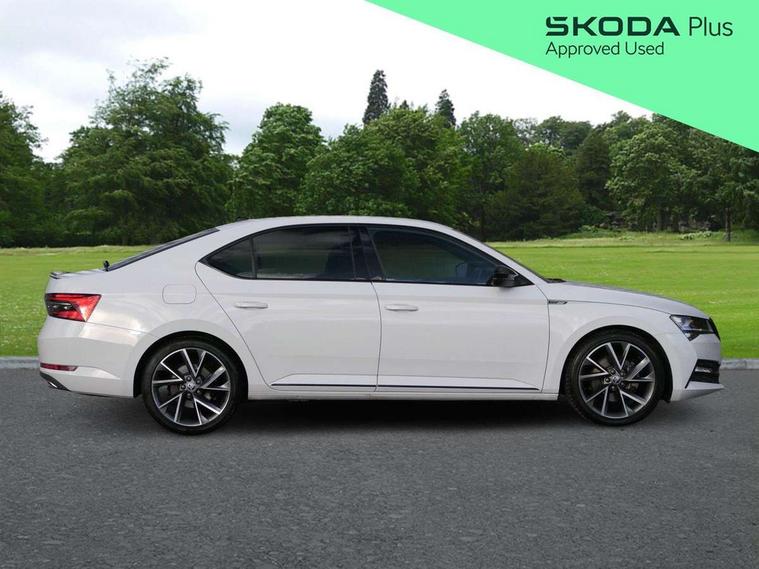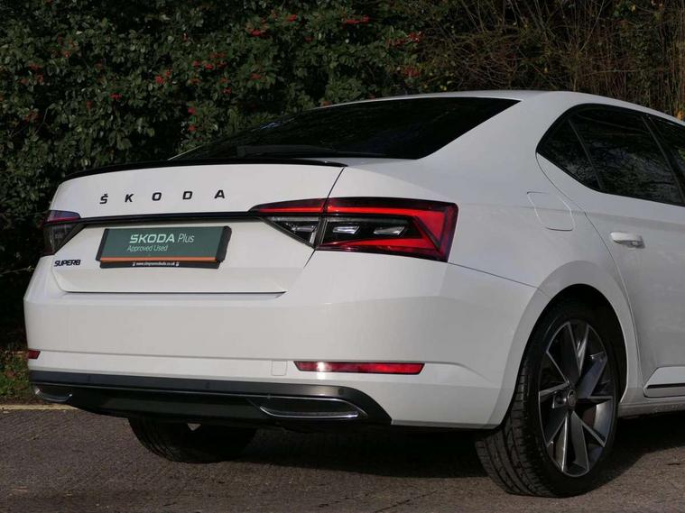 Bluetooth system, CareConnect and Emergency Call, Columbus HDD satellite 3D map navigation with 9.2" colour touch screen, web radio, integrated Wi-Fi, Driver fatigue sensor, Front assist with pedestrian protection, Progressive dynamic steering, Stop/start engine system and energy recovery, Virtual cockpit, Voice control system, Wireless smartlink apple carplay, SmartLink+ android auto, XDS+, 2 USB ports, Bolero radio with 8" touchscreen display, DAB Digital radio, 3rd brake light, Aero front windscreen wipers with intermittent function, Auto dimming rear view mirror, Black rear badge, Body colour door handles, Cornering front fog lights, Electrically adjustable heated and folding door mirrors with memory function, Front and rear electric windows, Full matrix LED headlights with AFS LED DRL integrated with headlight washer LED rear lights(High function), dynamic indicators and lighting animation, Gloss black exterior door mirrors with sports styling including front grill, side strip and window surrounds, Gloss black grille surround with gloss black rib elements, Gloss black rear spoiler, Gloss black strip between rear lights, Light assistant (coming/leaving home/tunnel light), Privacy glass, Rain sensor, Rear exhaust diffuser styling elements, Rear side wing doors, Sport Line badging, 12v power point in centre console, 3 seat bench in 2nd row, Black roof headlining, Black textile floor mats, Carbon optic interior elements, Electric auxiliary air heater, Front and rear footwell illumination, Front armrest with storage box, Height adjustable front and rear head restraints, Ice scraper, Illuminated and cooled glovebox, Interior lights with control switches, Isofix child seat fittings on outer rear seats, LED front and rear reading lights, Microsuede/leather upholstery with silver diamond stitching sports seats, One umbrella compartments in driver door with one umbrella in drivers door, Overhead glasses storage compartment, Rear centre armrest with cupholders, Removable parcel shelf, Single front passenger seat, Split folding rear seats, Storage compartment with cover in luggage compartment side panels, Ticket holder on A Pillar, LED package plus - Superb, 3 rear seatbelts, 7 airbags - Front, front side, curtain, driver's knee airbag with front passenger deactivation switch, Driver and passenger seatbelts with warning light, Electronic parking brake, ESC including ABS, EBV, MSR, ASR, EDS, HBA, DSR, RBS, CBC, multi-collision brake (MKB) and Auto hold, Hill start assist, Power operated child lock in rear doors, Tyre pressure monitor, Alarm with interior monitoring tilt sensor and back up horn, Electronic engine immobiliser, Keyless entry and start/stop, Remote central locking with SAFE system, Third remote key,