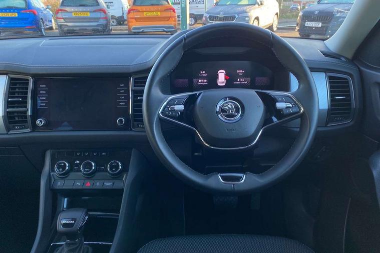 8" Digital display, Amundsen satellite navigation with 8" touchscreen, integrated Wi-Fi, web radio, Bluetooth system, Digital voice enhancement, e call+, ECO Stop/start function, Exterior temperature indicator, Power assist steering, Rear view camera, Smartlink wireless for apple carplay and wired for android auto, Speed limiter, USB C Port x 2 in front centre console, 8 speakers, DAB Digital radio, Aero front windscreen wipers with intermittent function, Aero rear window wiper, Auto dimming rear view mirror, Black wheel arch surrounds, Body colour bumpers, Body colour door mirrors and handles, Electric front and rear windows, Extended rear spoiler with finlets in gloss black, Front fog lights, Headlight washers, Heated rear window, Invisible tailpipe, LED rear fog light, LED third brake light in rear spoiler, Light assistant (coming/leaving home/tunnel light), Off-road style lower front bumper element, Privacy glass, Radiator grille frame in matt black with chrome strip, Rain and light sensors, Rear LED lights (high functionality) with welcome effect and dynamic indicators, Rear side wing doors, Safety reflectors on front and rear doors, Window control switches with black trim, 12V socket in boot, 2 rails with 2 hooks, 2 seat bench in 3rd row, 2 spoke multi-function leather steering wheel with paddle shift, 3 seat bench in 2nd row, 4 foldable roof handles with rear coat hooks, 60:40 foldable rear seat with sliding adjustment and backrest angle adjustment, Bottle holders in door panel in the 1.5 litre front and 1 litre rear, Cargo storage compartments, Chrome interior door handles, Cloth upholstery, Coat hooks on B pillar, Covered storage compartment on driver side, Dual zone automatic air conditioning with humidity sensor and control, Front and rear door armrest with black adductor trim, Front centre armrest with storage compartment, cup holder and 12V socket, Gear shift lever with chrome frame and black gloss insert, Grey headlining, Grey stitching in front and rear armrests and door armrests + door inserts, Height adjustable front headrests, Height adjustable front seats, Illuminated glovebox, Illuminated luggage compartment, Isofix child seat fittings in outer rear seats with top tether, Manually adjustable steering column, Net programme in boot (1x horizontal Net, 2x vertical Nets), Overhead glasses storage compartment, Pollen filter, Rear centre armrest with cupholders, Single front passenger seat, Sliding trunk cover, Small Bags on the inner sides of the front backrests, Sunvisors with illuminated vanity mirrors, Three rear height adjustable headrests, Ticket holder on A Pillar, Umbrella in door panel, Variable boot floor, Auto door release and activation of warning lights, Driver and front passenger airbag with knee airbag and front passenger airbag deactivation, Electronic parking brake with hill start assist, Emergency rear braking signal, ESC (incl. ABS+MSR+ASR+EDS+HBA+DSR+RBS+MKB), Front assist with autonomous emergency braking, Front side airbags with curtain airbags, Fuel cut off safety device, Height adjustable front 3 point seatbelts + pretensioners, Hill hold control, Rear disc brakes, Safety vest holder in door, Seat belt reminder for all seats, Tailgate unlocking from outside, Three point rear seat belts, Two tone horn, Tyre pressure monitor, Alarm with interior monitoring and tilt sensor with safe function, Anti-theft wheel bolts, Immobiliser, Keyless entry and start system (KESSY), Remote central locking with 2 keys, Grey stitching in dashboard, Temporary spare wheel (space saver),