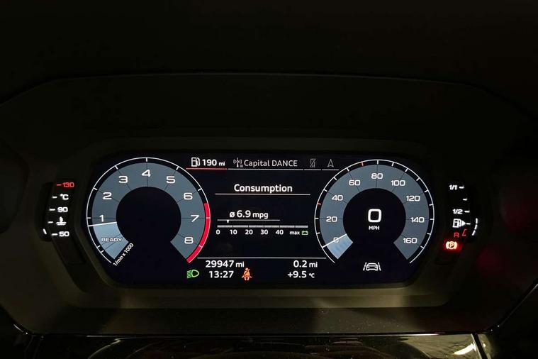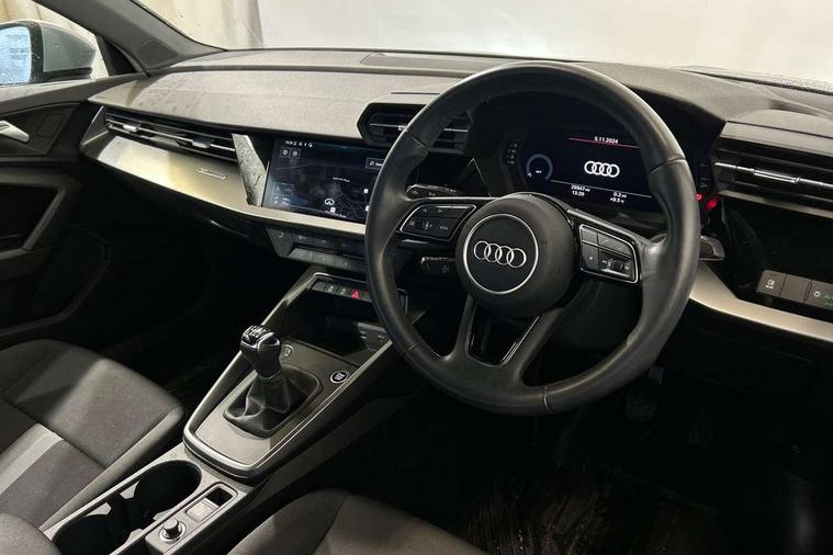 Audi connect emergency call and service, Audi smartphone interface, Audi Virtual Cockpit - 10.25" digital and colour instrument cluster, Automatic start/stop system with recuperation, Bluetooth interface, Collision avoidance assistant, Cruise control, Electromechanical power speed sensitive steering, Lane departure warning system, MMI Navigation Plus with high resolution 10.1" colour touch screen display, Rear parking sensors, Service indicator, Trip computer, Voice control system with natural language interaction, Standard suspension, 1xUSB-A and 1xUSB-C connection, 6 passive loudspeakers, DAB Digital radio, Acoustic glass windscreen, Auto dimming frameless rear view mirror, Body colour exterior mirrors, Body colour front spoiler blade, Body colour roof spoiler, Electrically adjustable/heated/folding/dimming door mirrors with kerb view includes integrated LED indications + kerb view function for passenger side, Front electric windows, LED daytime running lights, LED headlights and halogen rear lights, Light and rain sensors, Radiator grille and frame in grained matt black and honeycomb look, Rear diffuser in grained matt black, Rear electric windows, Rear side air outlets in grained matt black, Rear window, rear door windows and rear side windows in clear glass, Rear wiper, Side air inlets in grained matt black, 12V socket and storage compartment in front centre console, 3 spoke leather multifunction steering wheel, 60/40 split folding rear seat bench, Front and rear headrests, Front centre armrest, Front/rear floor mats, Height and reach adjustable steering wheel, Interior lighting - Front and rear roof module including reading lights, glove compartment light and right hand side, Luggage compartment floor covering, Manual air conditioning, Manual boot compartment lid, Manually adjustable front seats, Seat side bolsters, Steel grey cloth headlining, 3x3 point rear seat belts, Driver and front passenger airbag with passenger airbag deactivation, Electronic Stabilisation Control (ESC) including ABS, ASR and EDL, First aid kit with warning triangle and 2 safety vests, Front side airbags with head airbags and interaction airbag, Hill hold assist, Pre-sense front with pedestrian and cyclist detection, Seatbelt monitoring, Tyre pressure loss indicator, Anti theft alarm, Anti-theft wheel bolts, Electronically operated child lock, Immobiliser, Remote control central locking, Black decorative window trim, Inlays with silk effect paint in platinum grey, 16" 5 double arm alloy wheels,