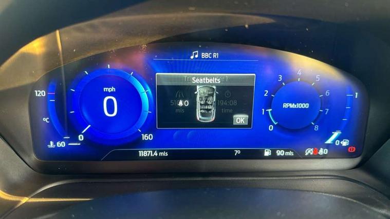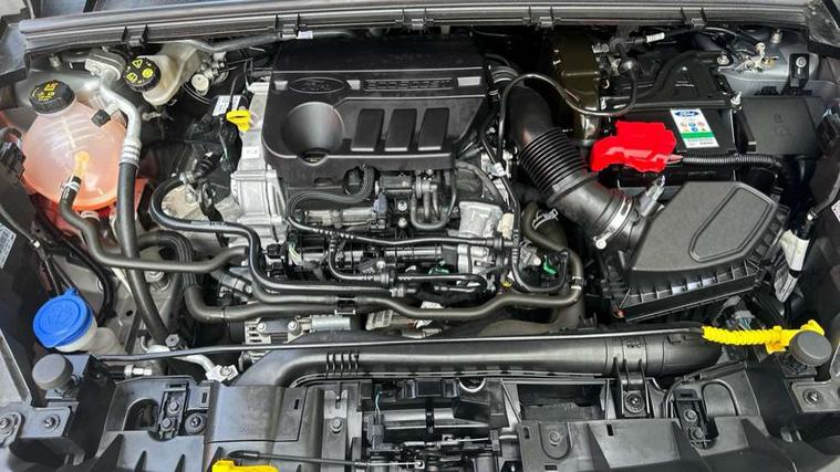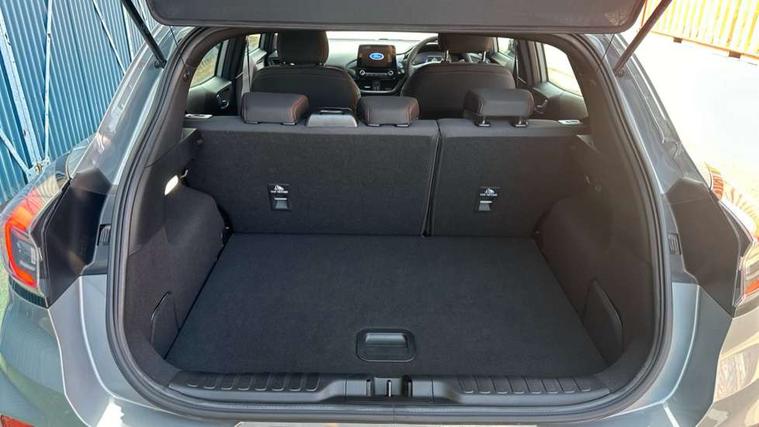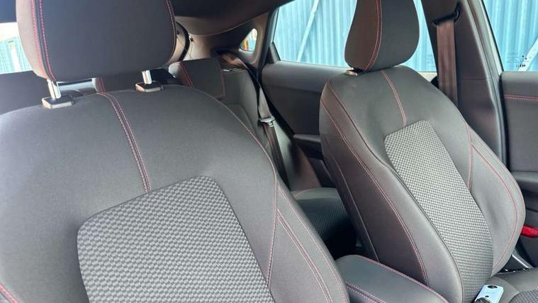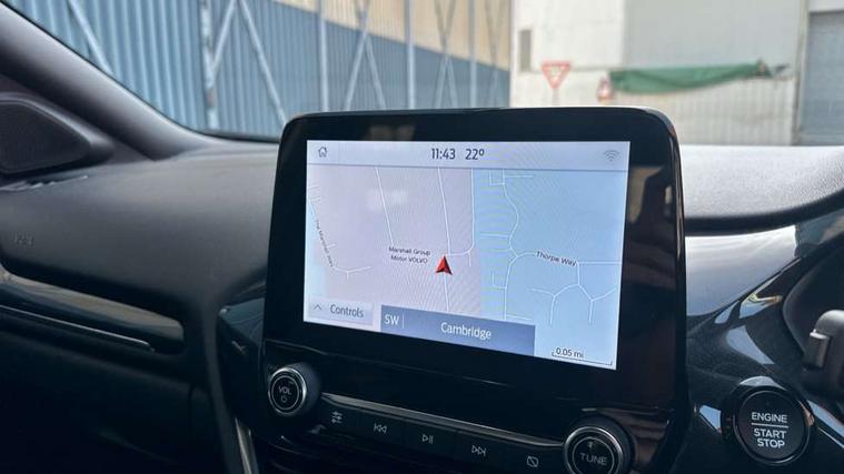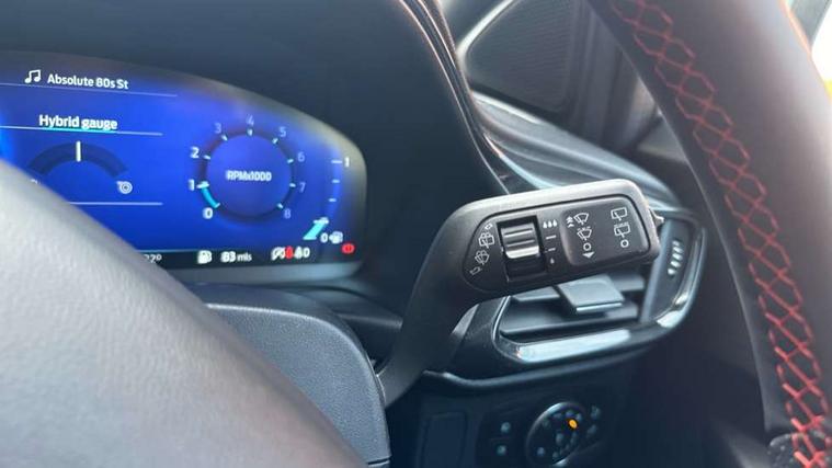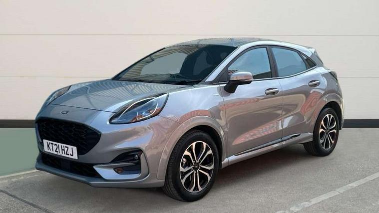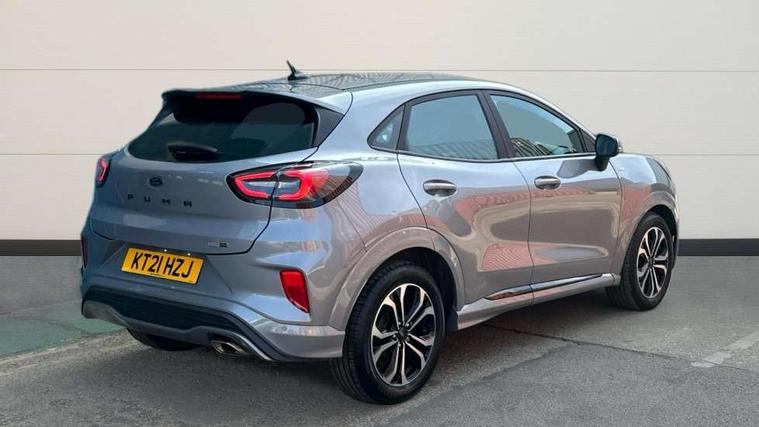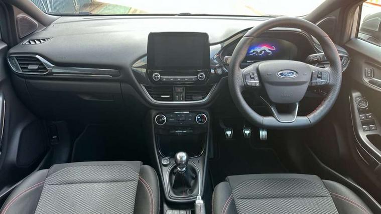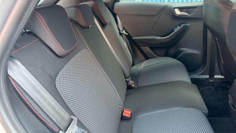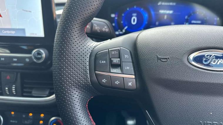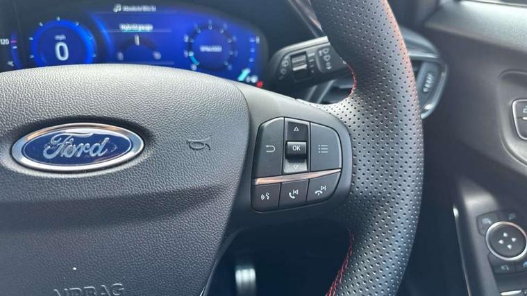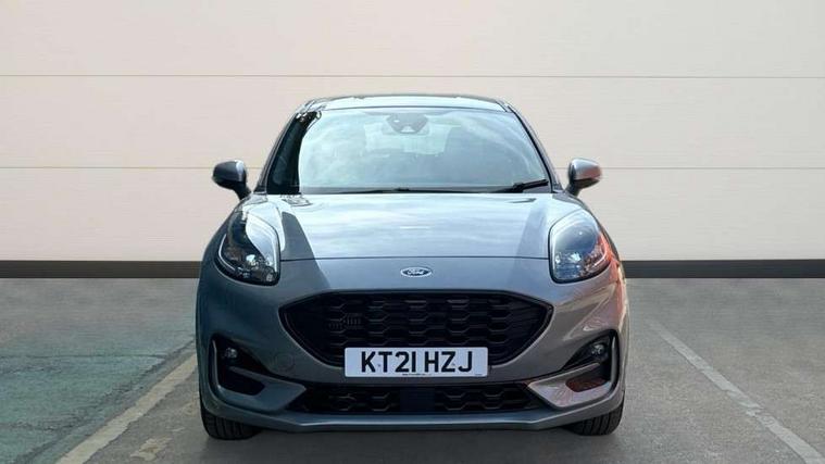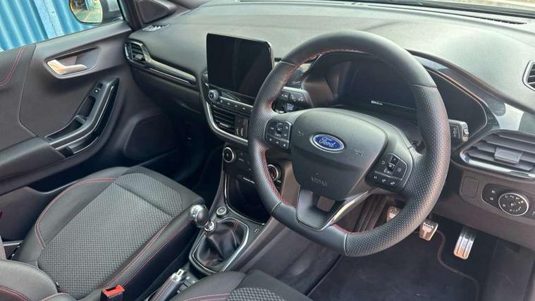 Ford easy fuel, Full digital 12.3" instrument cluster, Lane keeping aid with lane departure warning, Power assist steering, Power start button, Rear parking sensor, Selectable drive modes(Normal, sport, Eco, trail, slippery), Automatic headlights with rain sensing wipers and auto high beam, Body coloured door mirrors, Front fog lights with cornering lights and LED rear lamps, Power foldable heated door mirrors with puddle lamps, Projector headlamps with LED day time running lights, Quickclear heated windscreen, Rear wiper, ST-Line body kit with large rear spoiler wth sports suspension, Centre console with armrest and stowage, Cloth upholstery, Driver seat height/lumbar adjust, Ford megabox extended bootspace, Front and rear floor mats, Front and rear head restraints, Manual air conditioning, ST-Line flat bottomed sensico leather steering wheel with leather handbrake and aluminium gear knob, Ford SYNC 3 navigation pack - Puma, 3 rear seatbelts, Electronic stability control (ESC) and hill start assist, Pre-collision assist with autonomous emergency braking, pedestrian/cyclist detection & post-collision braking, Tyre pressure monitoring system (TPMS), Thatcham alarm,