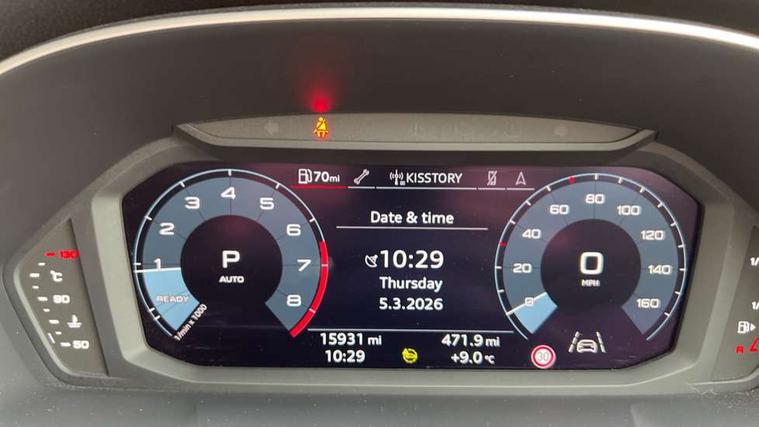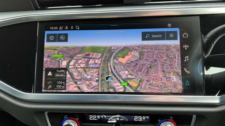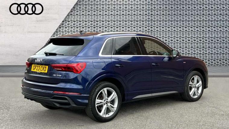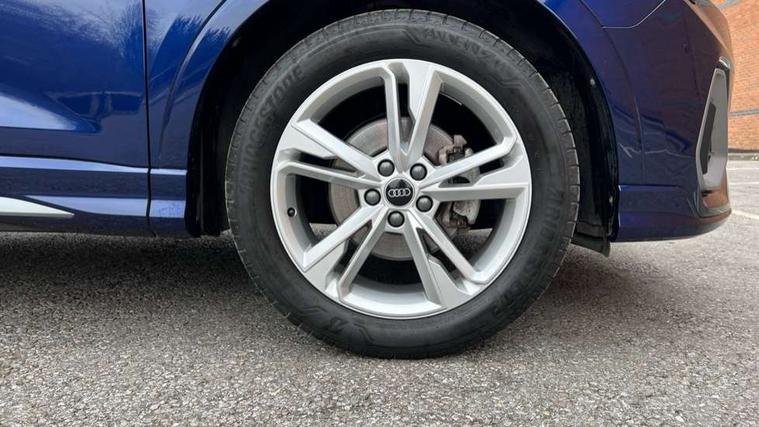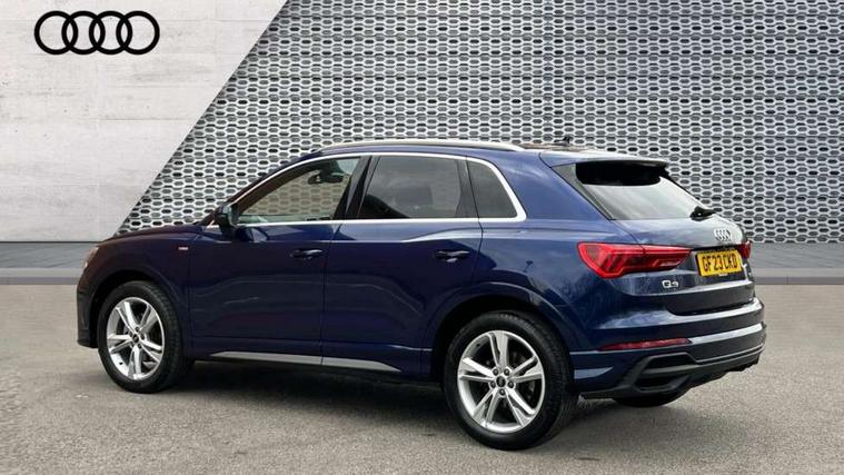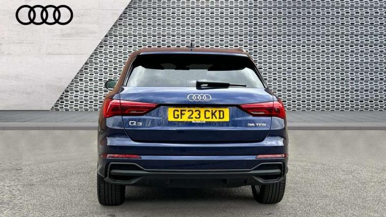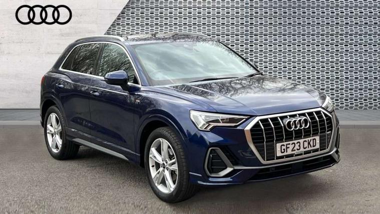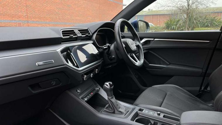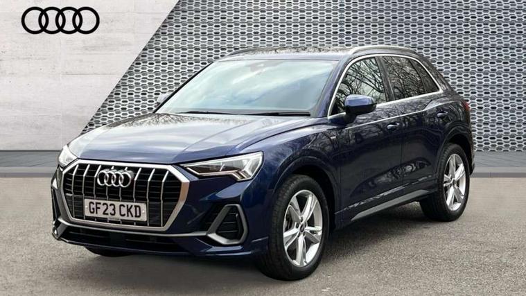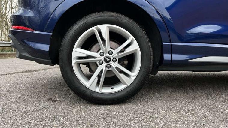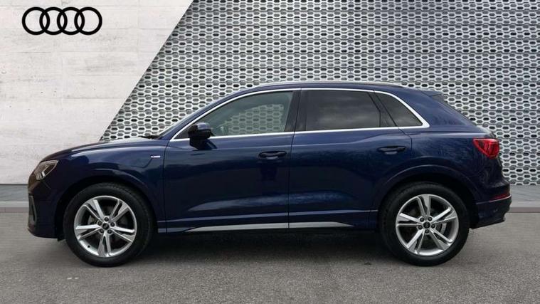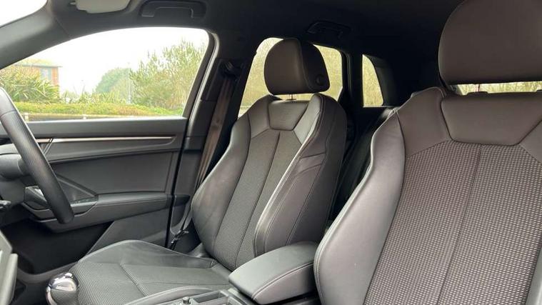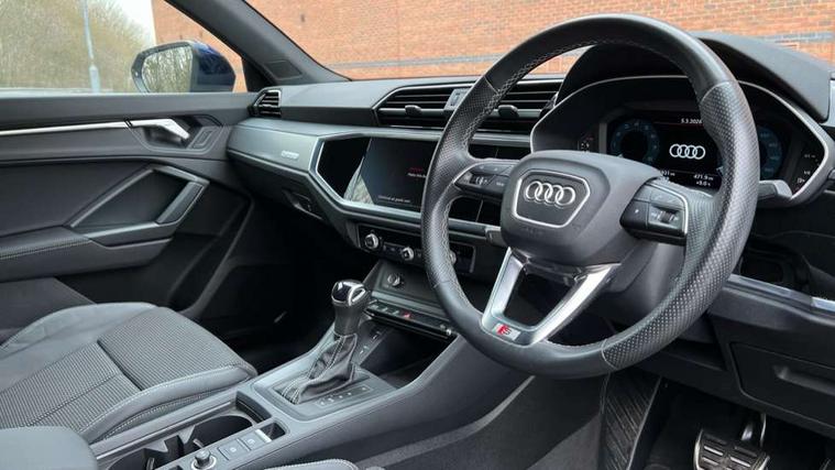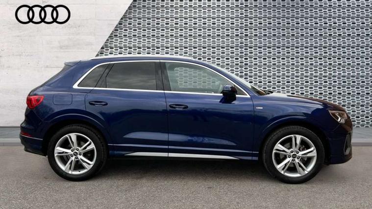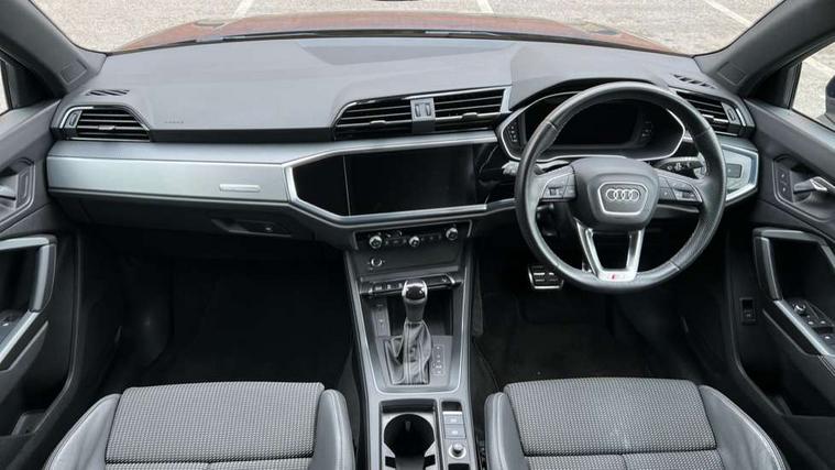 Amazon alexa Integration, Audi drive select, Audi lane departure warning, Audi smartphone interface includes wireless Apple carplay/Android Auto, Audi Virtual Cockpit - 10.25" display, Bluetooth interface, Camera based traffic sign recognition, Legal emergency call, MMI Navigation Plus with high resolution 10.1 inch touchscreen colour display, Power operated tailgate, Progressive steering, Service interval indicator, Start stop system with recuperation, Voice control system with natural language interaction, Sports suspension, 2 USB-C ports with charge and data functions, 6 passive loudspeakers, DAB digital radio module, Acoustic windscreen, Aluminium roof rails, Aluminium window trim, Anthracite black radiator grille, Auto dimming frameless rear view mirror, Body colour front spoiler blade, Body coloured bumpers, Electrically folding, adjustable and heated door mirrors with integrated LED side indicators and kerb view function for passenger side, Front and rear electric windows, Front fog lights, Front side air inlets in matt platinum grey, Grille vertical bars in aluminium silver/Matt, High gloss black finish B and C pillars, LED Dynamic rear indicators, LED headlights with LED daytime running lights, LED rear lights, LED third brake light, Privacy glass dark tinted rear and rear-side windows (from B-pillar backwards), Rain and light sensors, Rear diffuser grille in grained matt black, Rear diffuser strip in matt anthracite black, Rear side wing doors, Rear wiper, S line badges on front wings, S Line front and rear bumpers, Side skirt insert in matt Platinium grey, Variable front intermittent wipers, 12V socket in rear centre console, 3 seat bench in 2nd row, 3 spoke leather multifunction steering wheel features S badging and grips in perforated leather with contrast stitching, 40:20:40 folding with manual adjustment for 60:40 forwards/backwards position and backrest angle, Adjustable rear seat bench/backrest with centre armrest and cupholder, Black cloth headlining, Dual zone electronic climate control, Front and rear black floor mats with contrast stitching in rock grey, Front and rear headrests, Front and rear roof module including reading lights, Front centre armrest, Glove compartment lighting, Height and reach adjustable steering wheel, Illuminated door sill trims with S logo, ISOFIX child seat mounting for front passenger with airbag deactivation and outer rear seat including top tether attachment point for outer rear seats, Luggage compartment light, Manual front seats with height adjustment, Perforated leather gearknob, Single front passenger seat, Stainless steel luggage compartment sill finisher, Stainless steel pedals, Ambient lighting pack - Q3, Non smoking pack - Q3, 3x3 point rear seatbelts, 6 airbags - Driver, front passenger, curtain and side windows, Audi pre-sense front with pedestrain and cyclist recognition, Electrically operated child locks on rear doors, Electromechanical parking brake, Electronic stabilisation control including ABS, ASR and EDL, Front seatbelt reminder, Hill descent control, Hill hold assist, Pre sense basic, Seatbelt monitoring, Tyre pressure warning, Warning triangle and first aid kit, Anti theft alarm, Anti theft wheel bolts, Immobiliser, Remote central locking, Aluminium look interior elements, Dark matt brushed aluminium inlay, Detail dashboard around MMI touch colour display in glass look, black with surround in aluminium look, Leatherette door armrest,