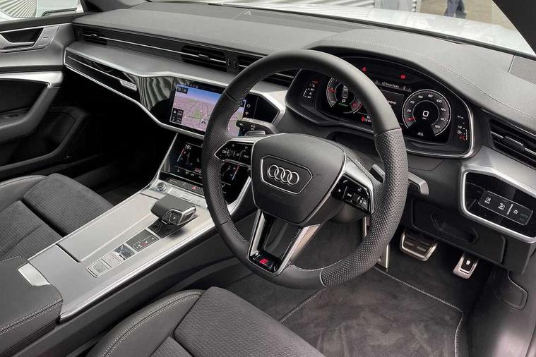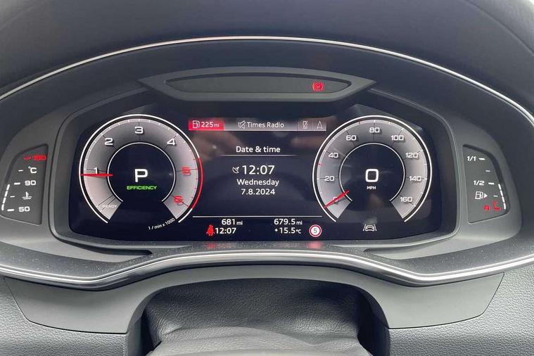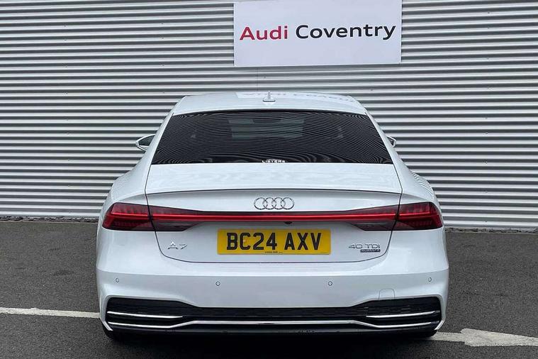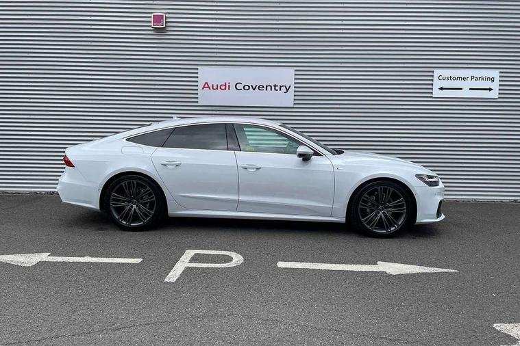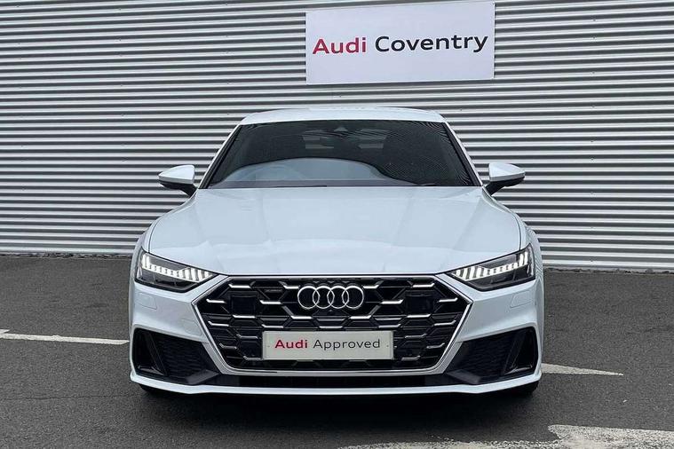 Audi connect safety and service (e-call), Audi connect with Amazon Alexa Integration, Audi drive select, Audi parking system plus - acoustic and visual park assist system for front and rear, Audi smartphone interface includes wireless Apple carplay/Android Auto, Audi virtual cockpit, Automatic start/stop system with coasting functionality, Bluetooth interface, Camera based traffic sign recognition, Colour driver's information system display, Lane departure warning system, MMI nav plus with MMI touch + 10.1" and 8.6" HD haptic touch screen/3D city models/country information/online map/route info and personal route assist, Operating buttons in black, glass look with haptic feedback, Progressive steering, Rear view camera, Service indicator, Voice control system, 22 litre AdBlue tank, Diesel particulate filter, Quattro on demand, Sports suspension, Audi music interface, Audi sound system with 6 channel amplifier, 180 watt amplifying capacity and 10 loudspeakers including subwoofer, Auxiliary input socket, DAB digital radio module, Black rear diffuser with chrome inlays, Body coloured door mirrors, Electrically adjustable heated and folding + automatically dimming exterior mirrors with memory function, Frameless auto dimming interior rear view mirror, Front and rear electric windows, HD Matrix LED headlights, Heat insulating darkened glass in side and rear windows, High gloss black air inlets, High gloss black radiator grille with chrome single frame surround, LED 3rd brake light, LED rear lights with dynamic indicators, Privacy glass with side and rear windows, Rain and light sensors, Rear side wing doors, Rear wiper, Retractable rear spoiler, S Line front and rear bumpers, Signature LED daytime running lights, Towbar preparation, Windscreen with heat-insulating glass, 2 zone deluxe electronic climate control, 3 spoke high multi-function leather steering wheel with shift paddles, 4-way electric lumbar support, 40/20/40 split folding 3 seater rear seat bench with rear centre armrest, Audi phone box light, Black cloth headlining, Electrically adjustable front seats - driver seat with memory, Front and rear headrests, Front centre armrest, Heated front seats, Height/reach adjust steering wheel, Illuminated door sill trims with S logo, Illuminated sun visors with vanity mirrors, ISOFIX child seat mounting and top tether in front and outer rear seats with front passenger airbag deactivation, Leather gear knob, Leatherette upper instrument panel and door shoulders, Luggage compartment lid, electrically opening and closing, S line front and rear floor mats with contrast stitching, Single front passenger seat, Stainless steel pedals and foot rest, Tool kit, LED interior ambient lighting pack - A7, Non smoking pack - A7, S line exterior style pack - A7, 3 point seatbelts on all seats, Audi pre-sense front, Driver and passenger airbags, Electromechanical parking brake, Electronic stabilisation control including ABS, ASR and EDL, Extended pedestrian protection measures, Hill hold assist, Manual child lock in rear doors, Seatbelt monitoring, Tyre pressure warning light, Warning triangle and first aid kit, Anti theft alarm with tow away protection, Anti-theft wheel bolts and wheel loosening detection, Immobiliser, Keyless Go, Preparation for tracking system, Remote central locking, Dark matt brushed aluminium inlay,
