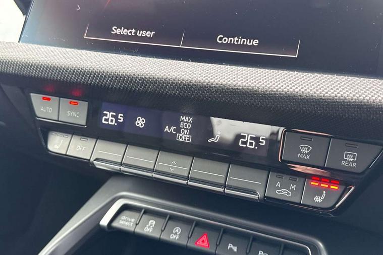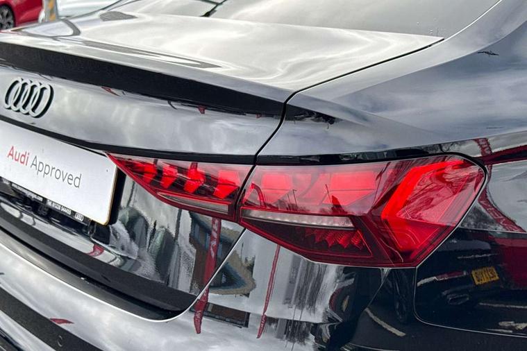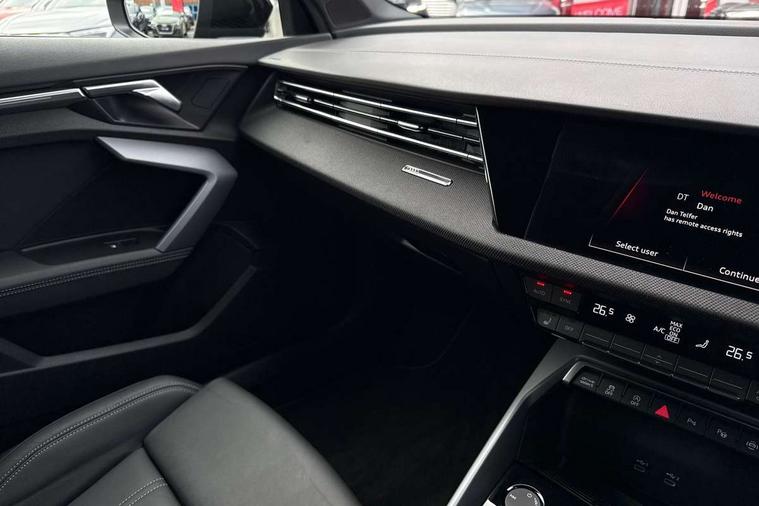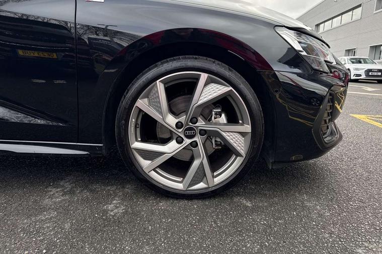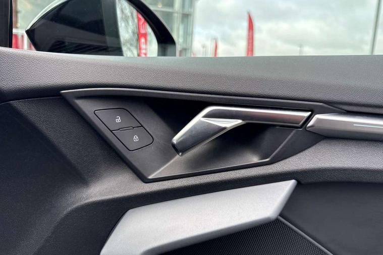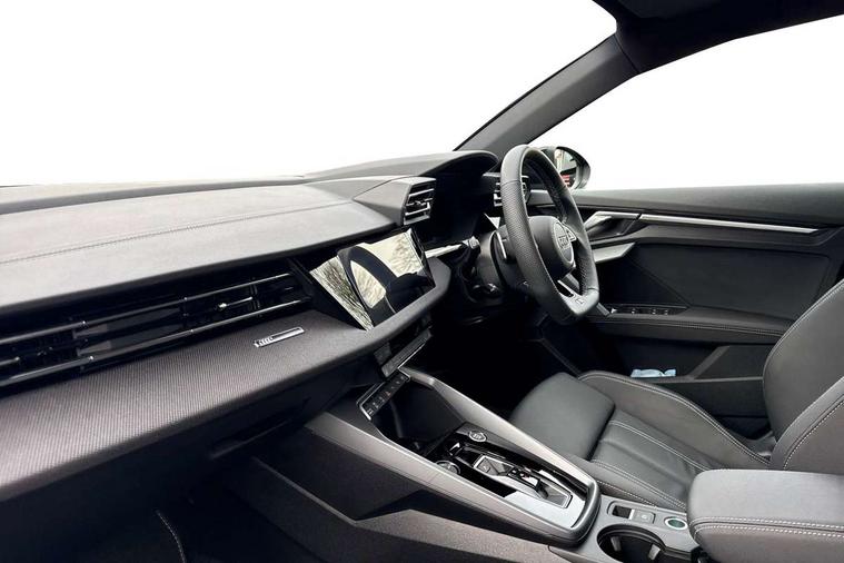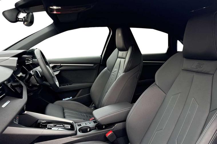 Audi drive select (Auto, Comfort, Dynamic, Efficiency and Individual), Audi smartphone interface, Audi Virtual Cockpit - 10.25" digital and colour instrument cluster, Automatic start/stop system with recuperation, Bluetooth interface, Camera based traffic sign recognition, Collision avoidance assistant, e-Call (emergency call), Electromechanical power speed sensitive steering, Lane departure warning system, MMI Navigation Plus with high resolution 10.1" colour touch screen display, Service indicator, Trip computer, Voice control system with natural language interaction, Sports suspension, 2xUSB-C connection with data and charging functions, 6 passive loudspeakers, DAB Digital radio, 3rd brake light, Acoustic glass windscreen, Aluminium window trim, Auto dimming frameless rear view mirror, Body colour exterior mirrors, Electrically adjustable/heated/folding/dimming door mirrors with kerb view includes integrated LED indications + kerb view function for passenger side, Front electric windows, Illuminated door sills with aluminium inserts at the front with S logo, LED daytime running lights, LED headlights with LED rear lights and dynamic rear indicators, Light and rain sensors, Privacy glass - dark tinted rear window, rear door and side windows, Rear electric windows, Rear side air outlets in grained matt black, Rear side wing doors, Rear wiper, S line bumpers, S roof spoiler, 12V socket and storage compartment in front centre console, 3 seat bench in 2nd row, 3 spoke leather multifunction steering wheel with paddle shift, 4 way electrically adjustable lumbar support for driver and front passenger, 60/40 split folding rear seat bench, Black cloth headlining, Dual zone electronic climate control, Front and rear centre armrest in artificial leather, Front and rear headrests, Front/rear floor mats, Height and reach adjustable steering wheel, Interior lighting - glove compartment light and right hand side, Luggage compartment floor covering, Manual boot compartment lid, Manually adjustable front seats, Seat side bolsters, Single front passenger seat, Stainless steel pedals and front footrest in black, Twin leather upholstery with front sports seats S embossed logo, Aluminium interior elements pack - A3 Sportback, LED interior lighting pack - A3 Sportback, S line styling pack - A3 Sportback, 3x3 point rear seat belts, Driver and front passenger airbag with passenger airbag deactivation, Electronic Stabilisation Control (ESC) including ABS, ASR and EDL, First aid kit with warning triangle and 2 safety vests, Front side airbags with head airbags and interaction airbag, Pre-sense front with pedestrian and cyclist detection, Seatbelt monitoring, Tyre pressure loss indicator, Anti theft alarm, Anti-theft wheel bolts, Electronically operated child locks, Immobiliser, Remote control central locking, Dark spectrum aluminium inlays, accent surfaces in the dashboard and centre console in platinum grey silk effect paint finish,