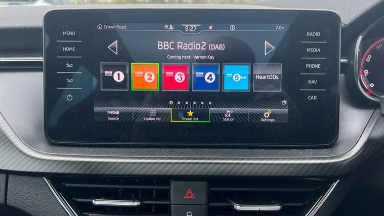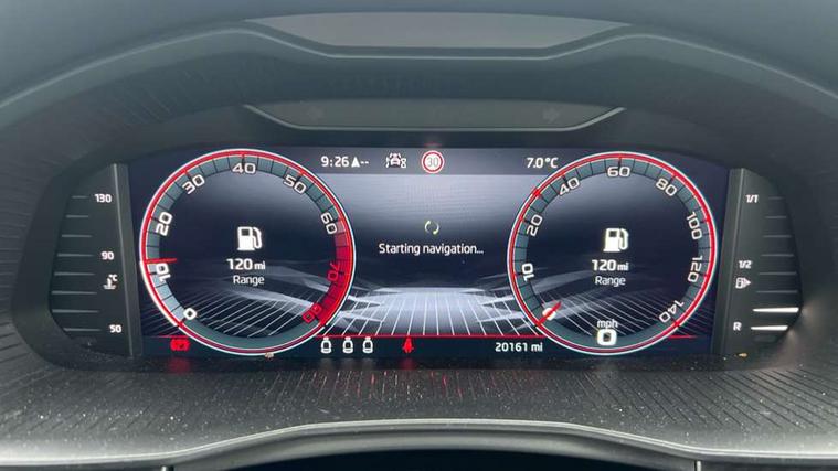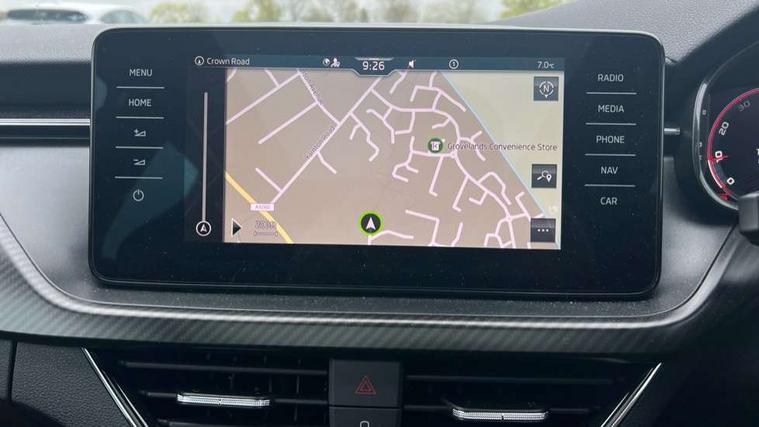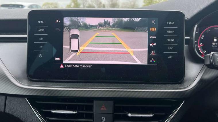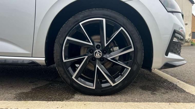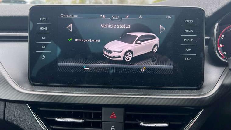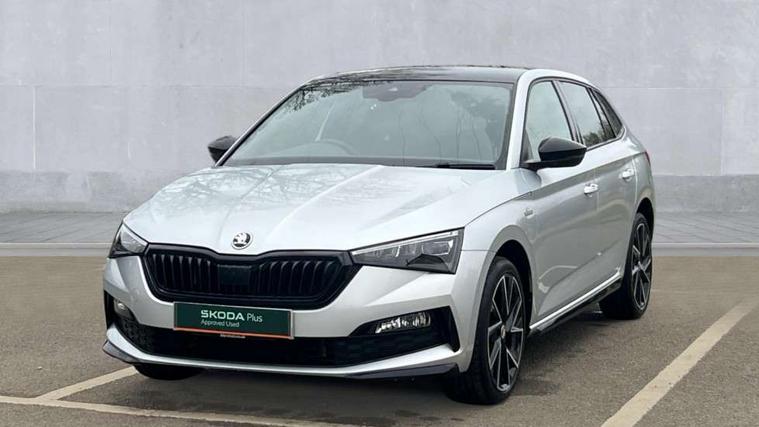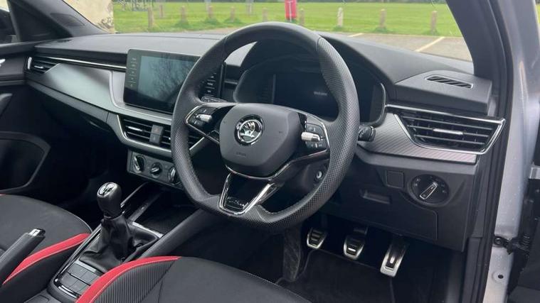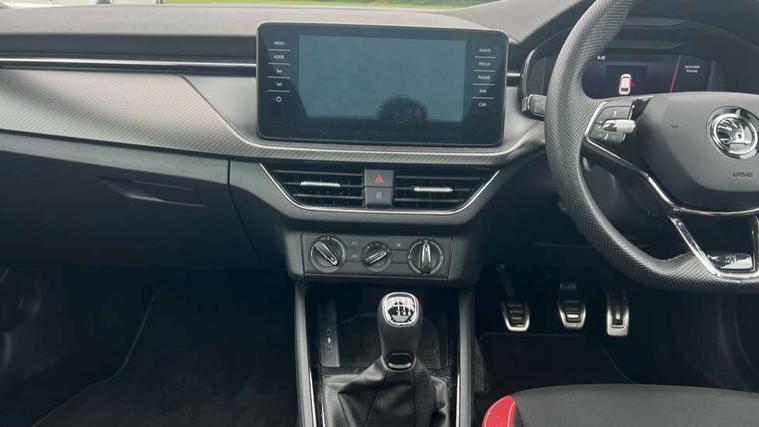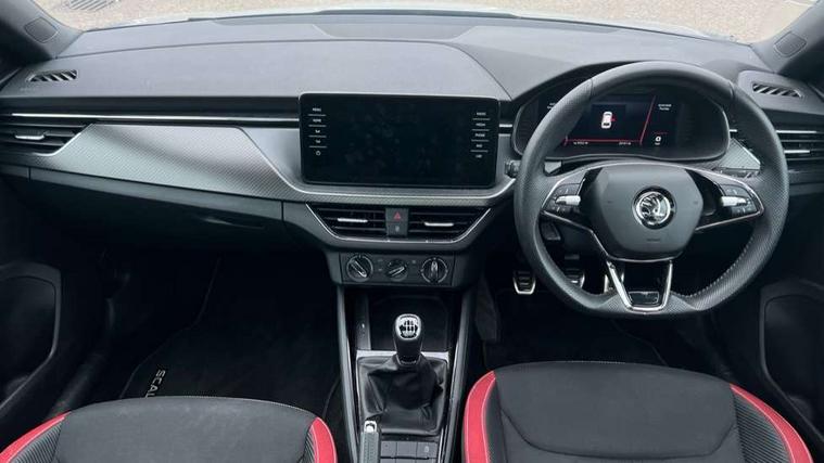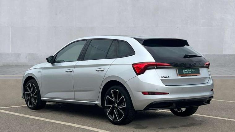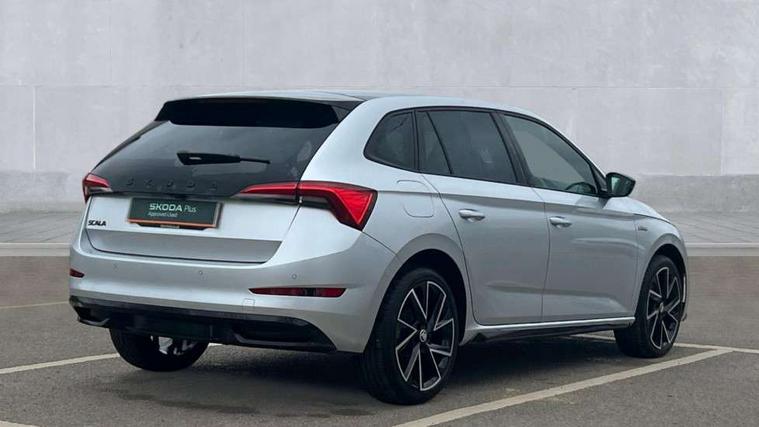 Amundsen satellite navigation with 9.2" glass colour touchscreen with virtual cockpit, web radio, Bluetooth system, eCall emergency system, Monte carlo instrument cluster, PAS, Rain and light assist with auto dimming rear view mirror, Rear view camera, Speed limiter, Tailgate, Traffic sign recognition, Virtual cockpit, Voice control system, 2 USB - C ports, 8 loudspeakers, DAB Digital radio, 3rd brake light, Automatic headlamp activation with Coming home and Leaving home feature, Black door mirrors, Black radiator grille, Black rear diffuser, Black roof spoiler, Body colour door handles, Dimming rear view mirror with black frame, Electric folding door mirrors, Electrically adjustable and heated door mirrors, Front and rear electric windows, Front fog lights, LED daytime running lights, LED rear tail lights with dynamic indicators, Privacy glass, Rear side wing doors, Rear wiper, Skoda across tailgate in black, Tinted windows, 12V Accessory socket in centre console, 3 seat bench in 2nd row, Aluminium pedals, Chrome inner door handles, Chrome strip on the dash and door panel, Cloth upholstery, Front head restraints, Glasses storage in roof liner, Height adjustable passenger seat, ISOFIX for rear passenger seat, Leather gearknob and handbrake lever, Manual lumbar support for front seats, Reading lights for driver and front passenger, Single front passenger seat, Sun visor with make up mirror for front passenger, Textile floor mats, Third rear headrest, Umbrella, Exterior design pack - Scala, 3x3 point rear seatbelts, Curtain airbags, Emergency call and proactive services, Front head and side airbags, Hill hold control, Manual rear child locks, One tone horn, Passenger airbag switch off function, Seat belt reminder for all seats, Alarm, Anti-theft wheel bolts, Remote central locking with 2 remote folding keys, SAFE function for remote central locking, 18" Vega alloy wheels in black, Temporary space saver wheel,