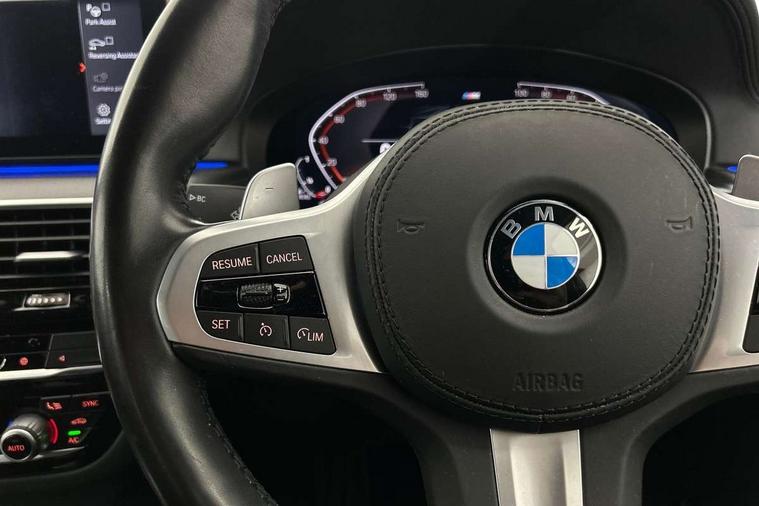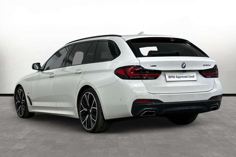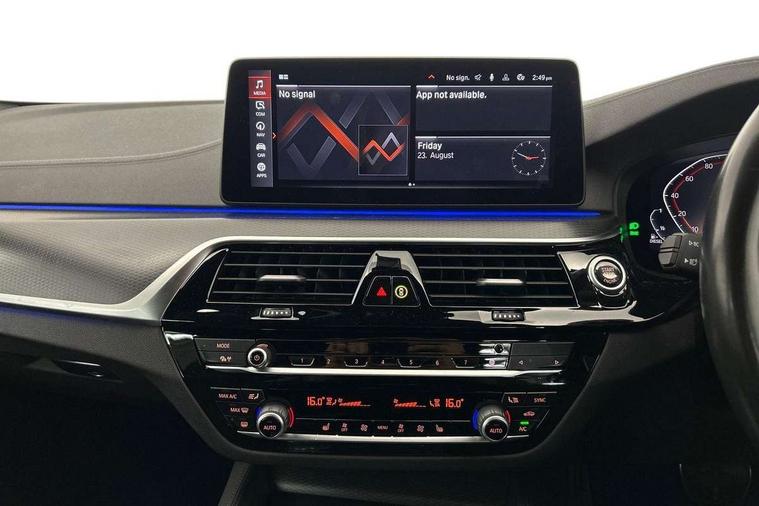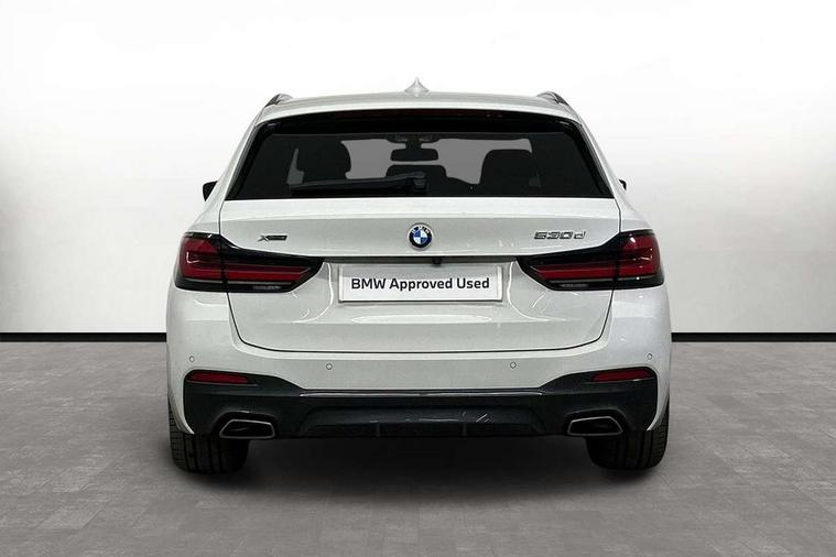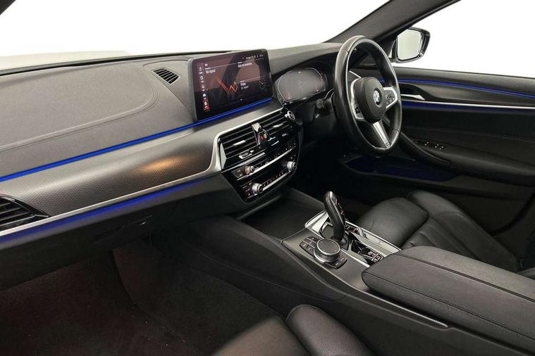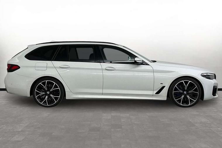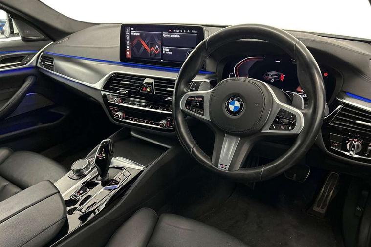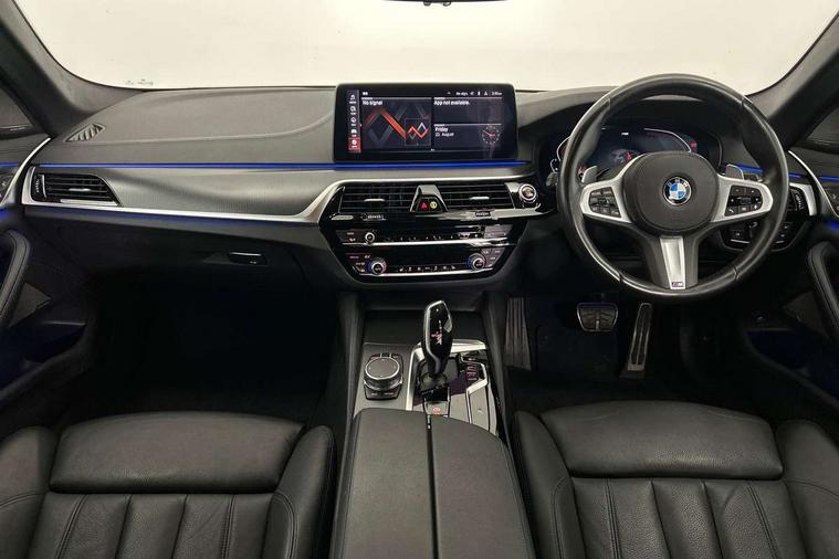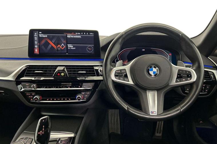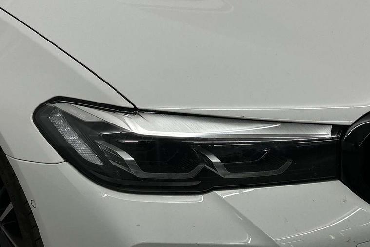 32GB hard disc drive (HDD) memory, Active Guard, BMW ConnectedDrive online services, BMW Live Cockpit Professional sat nav system with 12.3" instrument display and high resolution control display, BMW Teleservices, Brake pad wear indicator, Cruise control with brake assist, Driving experience switch, Electric boot lid - electrically opening/closing rear tailgate, Electric Power Steering (EPS) with Servotronic, iDrive touch controller with shortcut buttons, Intelligent emergency call, Multifunctional instrument panel, Oil sensor for level and grade, On board computer inc. average speed, fuel consumption, liquid crystal Info display, journey computer, outside temperature display, personal profile, On-board diagnosis - OBD, Powered by Operating System 7.0, Service interval indicator, Speed limiting function, Stop/start button, 48V Mild hybrid technology, Diesel particulate filter, Drive performance control with ECO PRO comfort + sport mode, Engine cover with twin turbo designation, M sport suspension, Steptronic sport transmission with gearshift paddle switches on steering wheel, DAB Digital radio, Favourite buttons, Acoustic glazing, All round anti-corrosion system, Automatic windscreen wipers and automatic headlight, Automatically dimming rear view mirror, BMW Individual high gloss shadow line includes exterior mirror frame, window frame surround, B pillar finish, air breather in high gloss black, BMW Individual high gloss shadow line roof rails, Body colour door handles, Body coloured bumpers, Door handle illumination, Dynamic brake lights with LED technology, Electric front and rear windows with fingertip open/close + anti-trap facility and comfort closing function, Electrically adjustable and heated exterior mirrors includes integrated direction indicators and automatic parking function, Folding exterior side mirror with auto- dimming, Follow me home headlight function, Heated windscreen washer jets, High gloss black active air stream kidney grille, Independent opening for tailgate window, LED daytime running lights, LED third brake light, M designation on front side panels, left and right in chrome, Trapezoidal visible exhaust tailpipes, xDrive designation on tailgate, 12V power socket in front and rear, 40/20/40 split folding rear seats with additional mechanism in luggage compartment, Armrest - front and rear integrated door trim, centre console includes storage compartment, rear centre includes 2 cupholders, Child seat ISOFIX attachment with rear outer seats includes top tether, Cup holders (2 front and 2 rear), Front and rear footwell lights, Front reading lights, Height and length adjustable steering column and activation via lateral lever on the steering column, Lockable glove compartment with light, M door sill finishers, M specific pedals, M specific velour floor mats, Multifunction controls for leather steering wheel, Rear headrests, Retractable luggage compartment dividing net, Three spoke sport M leather steering wheel, Ambient lighting pack - 5 Series, Connected package professional - 5 Series, M Aerodynamic pack - 5 Series, Airbags - driver/front passenger, rear and side, first and second row seats head airbags, front passenger seat airbag deactivation + knee airbag, Anti-lock braking system (ABS), Automatic Stability Control (ASC), Brake assist function, Brake energy regeneration, Cornering brake control (CBC), Crash sensor activating central locking release, hazard warning lights, fuel cut off and interior lighting, Deformation zones - front and rear with door reinforcements and bumpers up to 2.5 mph, DSC - Dynamic Stability Control, Dynamic brake control, Dynamic Traction Control - DTC, Electromechanical parking brake with automatic drive away release and auto hold function, Electronic brake force distribution, Engine drag torque control, Front and rear brake discs with interior ventilation, Front head restraints with anti-whiplash, Hill start assist, M Sport brake in high gloss blue painted brake callipers with M designation, Mechanical child proof lock on rear doors, Passive protection for pedestrians, Side impact protection, Three point seat belts for all four seats, Two tone horn, Tyre pressure indicator, Warning triangle and first aid kit, Alarm system (Thatcham 1) with remote control and electronic engine immobiliser, Locking wheel bolts,