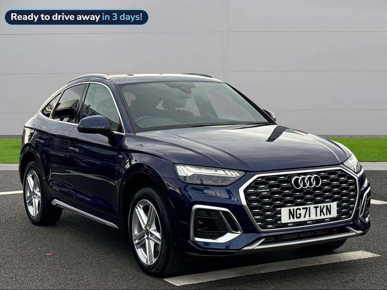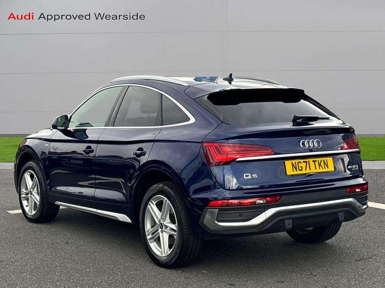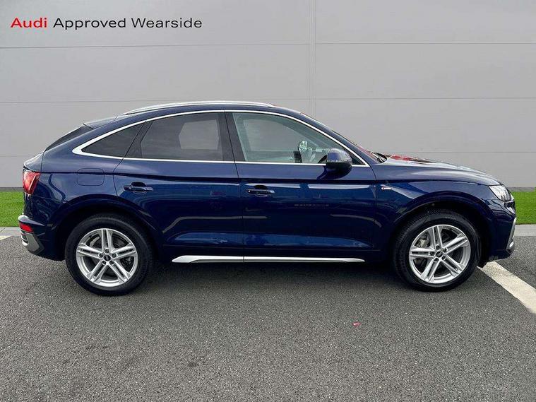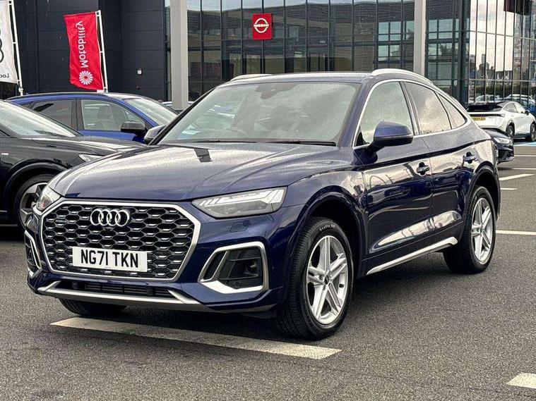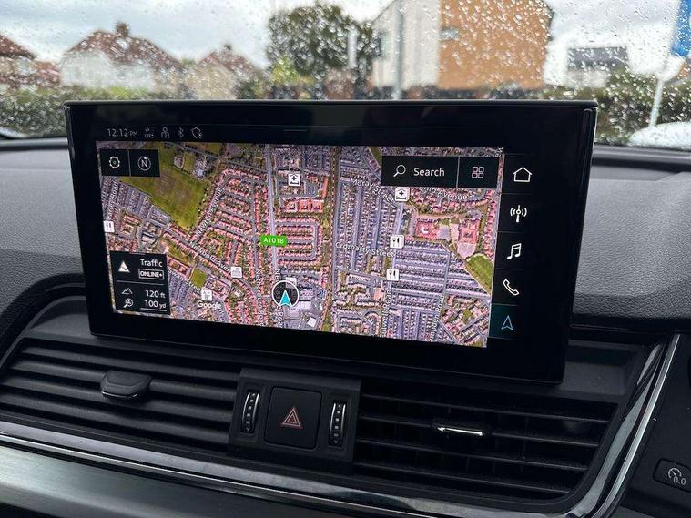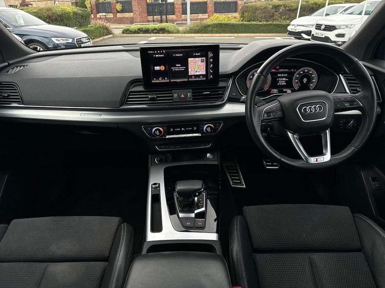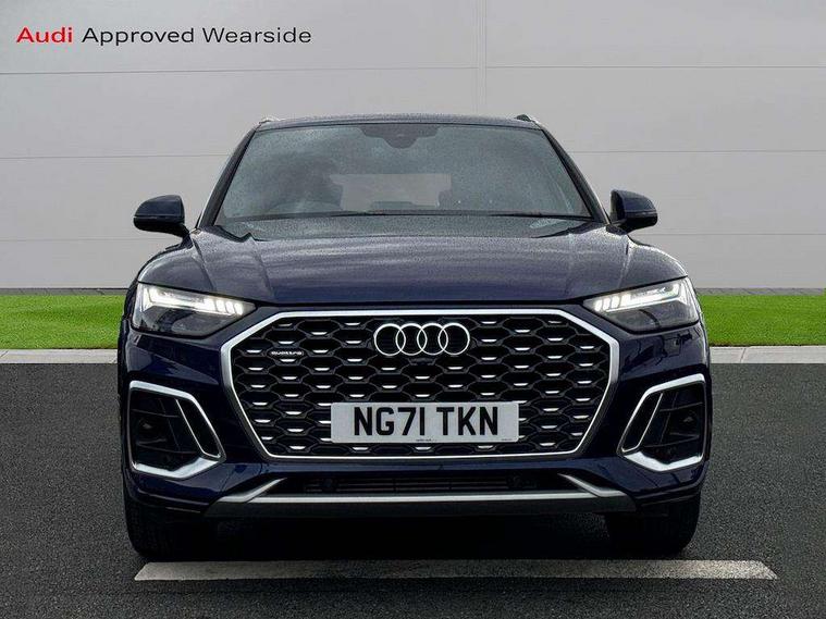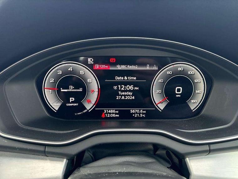 Audi connect safety and service (e-call), Audi connect with Amazon Alexa Integration, Audi drive select, Audi virtual cockpit plus with 12.3" screen and three different layout designs, Audi wireless smartphone interface, Automatic start-stop system with coasting functionality and efficiency programme, Bluetooth interface, Electro - mechanical power assisted steering, MMI navigation plus with 10.1" touch screen, Power tailgate, Reversing camera, Service interval indicator, Voice control system with Audi hotword activation "Hey Audi", Quattro on demand, S line sports suspension, DAB Digital radio, Acoustic windscreen, Aluminium roof rails, Audi matrix LED headlights with dynamic front and rear indicators, Auto dimming door mirrors, Auto dimming rear view mirror, Automatic headlights and windscreen wipers, Body colour door mirrors, Body colour rear diffuser with matt aluminium silver surrounds, Body colour underbody protection, Chrome plated exhaust trims, Daytime running lights, Door sills in Selenite silver, Electric adjustable/heated/folding door mirrors, Front air inlet surrounds in aluminium, Front and rear electric windows, Front radiator grille in honeycomb design, Headlight washers, High level LED brake light, Lower bumpers painted in contrast Manhattan grey, Rear chrome trim strip below lights, Rear privacy glass and rear side windows, Rear side wing doors, Rear spoiler, Rear wiper, Roof bars, S Line badges on the front wings, S Line front and rear bumpers, S Line side skirts, 2 x USB charging port with aux input socket, 3 rear headrests, 40:20:40 split folding 3 rear bench seat in 2nd row with rear centre armrest, Black cloth headlining, Comfort front centre armrest, Contrast stitching on seats, steering wheel and gear lever gaiter, Deluxe 3 zone electronic climate control, Front head restraints, Front/rear floor mats, Gear lever in black leather, Heated front seats, Height/reach adjustable steering column, Illuminated door sill trims with S logo, ISOFIX child seat mounting and top tether, Manual seat adjustment with 4-way electric lumbar support, Removable luggage compartment floor, Single front passenger seat, Stainless steel pedals, Sunvisors with vanity mirrors, Trunk roller cover, High gloss pack - Q5, LED interior light pack - Q5, 3 point seatbelts on all seats, 6 airbags - Driver, front passenger, curtain and side airbags, Electrically operated child locks on rear doors, Electromechanical parking brake, Electronic stabilisation control including ABS, ASR and EDL, Front passenger airbag deactivation, Hill descent control, Hill hold assist, Multi collision brake assist, Pop-up bonnet for pedestrian protection, Pre sense city, Seat belt force limiter, Seatbelt monitoring, Tyre pressure warning, Warning triangle and first aid kit, Anti theft alarm, Anti-theft wheel bolts, Keyless Go access/ignition system, Remote central locking, Matt brushed aluminium inlays,