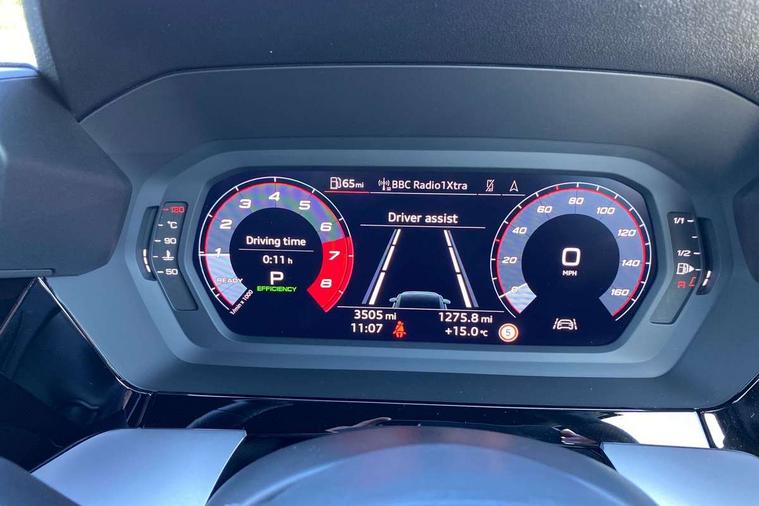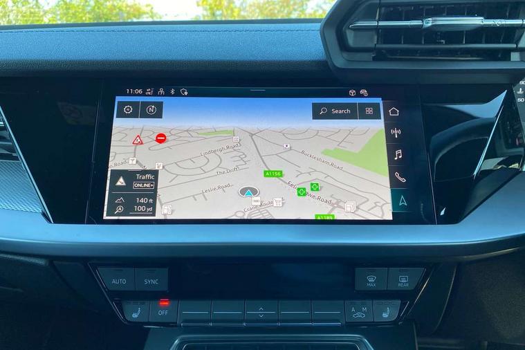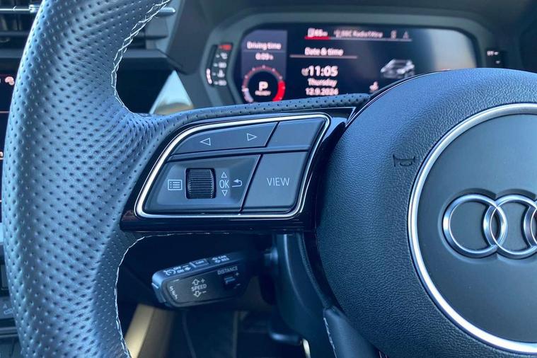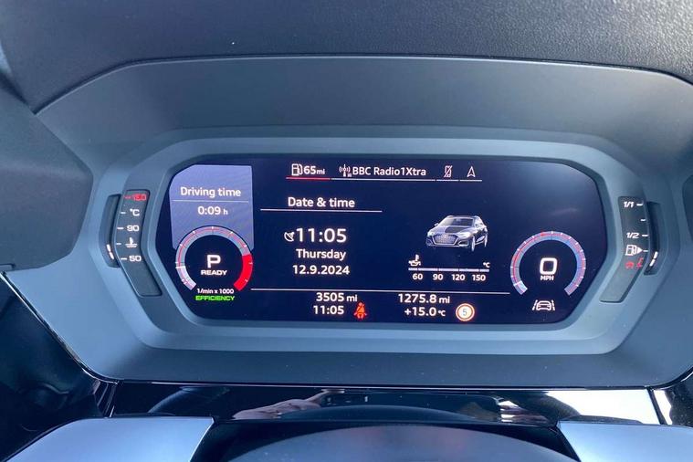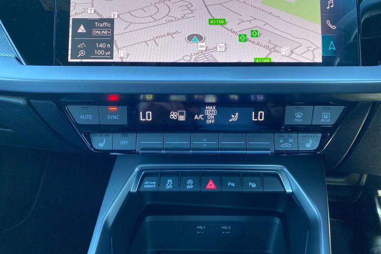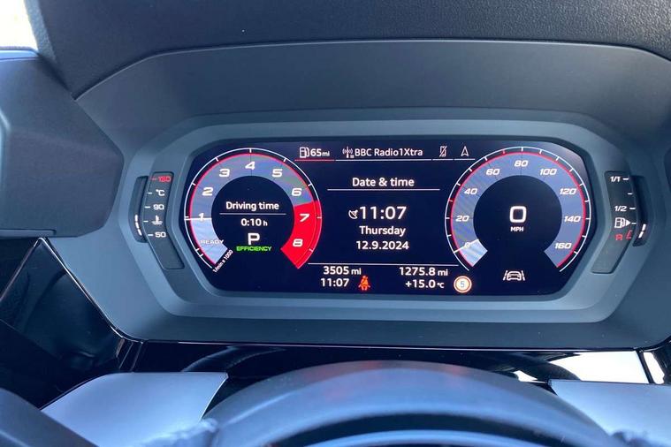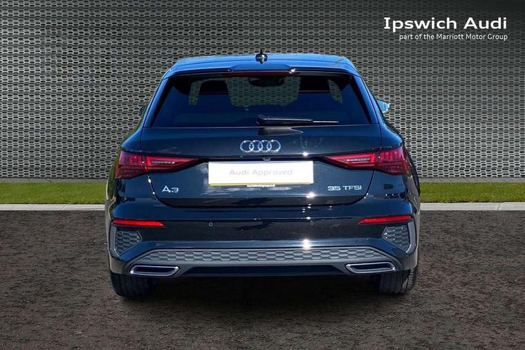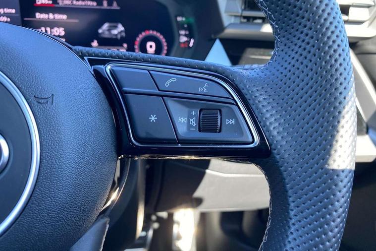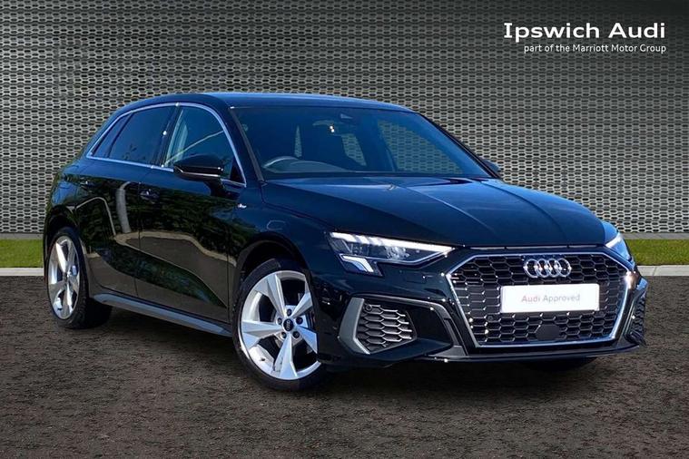 Audi drive select (Auto, Comfort, Dynamic, Efficiency and Individual), Audi smartphone interface, Audi Virtual Cockpit - 10.25" digital and colour instrument cluster, Automatic start/stop system with recuperation, Bluetooth interface, Camera based traffic sign recognition, Collision avoidance assistant, e-Call (emergency call), Electromechanical power speed sensitive steering, Lane departure warning system, MMI Navigation Plus with high resolution 10.1" colour touch screen display, Service indicator, Trip computer, Voice control system with natural language interaction, Sports suspension, 2xUSB-C connection with data and charging functions, 6 passive loudspeakers, DAB Digital radio, 3rd brake light, Acoustic glass windscreen, Aluminium window trim, Auto dimming frameless rear view mirror, Body colour exterior mirrors, Electrically adjustable/heated/folding/dimming door mirrors with kerb view includes integrated LED indications + kerb view function for passenger side, Front electric windows, Illuminated door sills with aluminium inserts at the front with S logo, LED daytime running lights, LED headlights with LED rear lights and dynamic rear indicators, Light and rain sensors, Privacy glass - dark tinted rear window, rear door and side windows, Rear electric windows, Rear side air outlets in grained matt black, Rear side wing doors, Rear wiper, S line bumpers, S roof spoiler, 12V socket and storage compartment in front centre console, 3 seat bench in 2nd row, 3 spoke leather multifunction steering wheel with paddle shift, 4 way electrically adjustable lumbar support for driver and front passenger, 60/40 split folding rear seat bench, Black cloth headlining, Dual zone electronic climate control, Front and rear centre armrest in artificial leather, Front and rear headrests, Front/rear floor mats, Height and reach adjustable steering wheel, Interior lighting - glove compartment light and right hand side, Luggage compartment floor covering, Manual boot compartment lid, Manually adjustable front seats, Seat side bolsters, Single front passenger seat, Stainless steel pedals and front footrest in black, Twin leather upholstery with front sports seats S embossed logo, Aluminium interior elements pack - A3 Sportback, LED interior lighting pack - A3 Sportback, S line styling pack - A3 Sportback, 3x3 point rear seat belts, Driver and front passenger airbag with passenger airbag deactivation, Electronic Stabilisation Control (ESC) including ABS, ASR and EDL, First aid kit with warning triangle and 2 safety vests, Front side airbags with head airbags and interaction airbag, Pre-sense front with pedestrian and cyclist detection, Seatbelt monitoring, Tyre pressure loss indicator, Anti theft alarm, Anti-theft wheel bolts, Electronically operated child locks, Immobiliser, Remote control central locking, Dark spectrum aluminium inlays, accent surfaces in the dashboard and centre console in platinum grey silk effect paint finish,