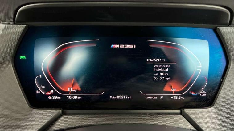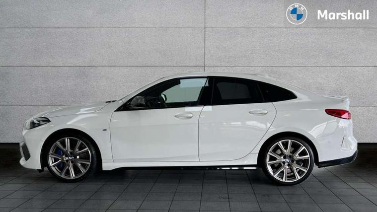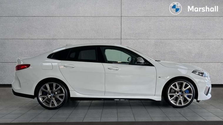 Active guard plus, Attentiveness assist, Auto start-stop, BMW ConnectedDrive online services, BMW Intelligent Personal Assistant, BMW Live Cockpit Professional with 10.25" high resolution instrument and control display, BMW Online services, BMW operating system with 7.0 mid interface, BMW Teleservices, Check Control warning system for monitoring of lights and door/luggage compartment open warning, Cruise control with braking function, Electro hydraulically controlled multi plate clutch in rear axle, Energy efficient operating strategy, iDrive controller with 7 short cut favourite buttons on centre console, Integrated navigation data with map data via USB +features such as 3D landmarks and micro city models, Integrated owners handbook, Intelligent voice assistant, Lane departure warning system, M Sport steering with M235i xDrive M performance specific settings, On board computer - average speed+fuel consumption, service interval, clock/date, odometer/trip meter, outside temperature display and ice warning, Optimum shift indicator, Personal Profile, Pull away assistant, Speed limiting function, 2 balance shafts, 8 speed sport automatic transmission with electronic selector lever, auto P function, coasting idle, race track, sport, gearchange display manual mode, Aluminium lightweight construction, BMW TwinPower twin-scroll Turbo four-cylinder petrol engine, Double VANOS, Drive performance control with ECO PRO comfort + sport mode, Electronic differential lock, Engine cover with M performance designation, High precision injection, Larger fuel tank capacity (50 litres), Launch control, M235i specific heavily de-throttled engine intake air guide, M235i specific high-performance cooling package, M235i specific larger turbocharger with integrated divert-air valve, Performance Control, Petrol Particulate Filter, Power transmission of front wheel drive on the rear axle via angle transmission on the front axle differential and two part cardan shaft, VALVETRONIC engine management, Variable, stepless and infinitely adjustable distribution of drive torque between the front and rear axles, xDrive intelligent all wheel drive with M235i specific reinforced components, 2x USB Type C ports (for charging and data transfer), 4G LTE Connectivity with hard wied 4G network sim card, DAB digital radio, MP3 players and RDS double tuner, Auto wipers, Automatically dimming rear view mirror, Body colour door handles, Direction indicator side lights integrated exterior mirrors, Electric windows - front and rear, with open/close fingertip control and trap release, Exterior mirrors - electrically folding with anti-dazzle, Fading support, Follow me home headlights, Front and rear bumper system with replaceable deformation elements, Front door sill finishers in black plastic with M235i designation, Heated, electrically adjustable exterior mirror aspheric on driver side, convex on passenger side, High gloss black B pillar finish, High gloss shadow line exterior trim, High level third brake light, LED daytime running lights, Lightweight engineering, M Performance exhaust system with valve control and minimised exhaust back pressure, M rear spoiler, Model designation on right side of tailgate includes xDrive designation onleft handside for M235i xDrive, Preparation for high beam assistant, Rain sensor with automatic headlight activation, Rear boot, Rear fog lights, Rear side wing doors, Reinforced crank drive, new pistons and adapted con rods, Reversing light in rear light cluster, Welcome lighting, 12V power socket in centre console, 2 cupholders in front centre console, 3 rear seat head restraints, 3 rear seats, 3 spoke M sports design leather steering wheel finished in nappa leather with specific M badge, Additional under floor storage in luggage compartment, Anthracite finished floor mats with contrasting surround, Anthracite headlining, Automatic two zone climate control air conditioning, Child seat ISOFIX attachment for two outer rear seats and front passenger seat with anchorage points, Conditioned based service, Driver and front passenger seat heating, Front and rear door pockets including bottle trays, Front and rear side armrests integrated into door trim, Front armrest foldable with integrated storage compartment, Front centre interior light over interior mirror and rear centre automatic interior light when door is opened/ignition switched off or via remote key, Front head restraints, Front M Sport seats, Front passenger seat, Glove compartment, Glovebox with light, Luggage compartment lighting, Manually adjustment steering wheel column, Multi-function controls for steering wheel, Shift-by-wire selector shift, Steering wheel paddles, Sun visors with vanity mirrors and insert tab, Through loading system with 40/20/40 split folding rear seat, Two lashing eyes, Additional interior lighting pack - 2 Series Gran Coupe, Connected pack professional - 2 Series Gran Coupe, Extended storage pack - 2 Series Gran Coupe, M Sport exterior styling aerodynamics pack - 2 Series Gran Coupe 235i, 2 tone horn, Airbag - Front driver and passenger, front and rear head, front side, curtain head protection, manual deactivation of front passenger airbag possible, Anti lock braking system (ABS) with cornering brake control, BMW emergency call, Brake drying, Braking readiness, City braking function, Crash sensor activating of airbags, Unlocking doors, hazard warning lights, fuel cut off, interior lighting+activation of safety battery terminal clamp, Dynamic stability control + (DSC+), Dynamic Traction Control - DTC, Electrically operated hand brake, Integrated torsen mechanical limited slip differential on front axle, M Sport braking system in blue high gloss + blue painted brake calipers with M designation, M sport seatbelt, Rear brake discs, Rear child proof door locks, Seat belt security check for driver and front passenger, Seatbelt warning, Side impact protection, Three point seat belts on all seats including front belt stopper, pyrot