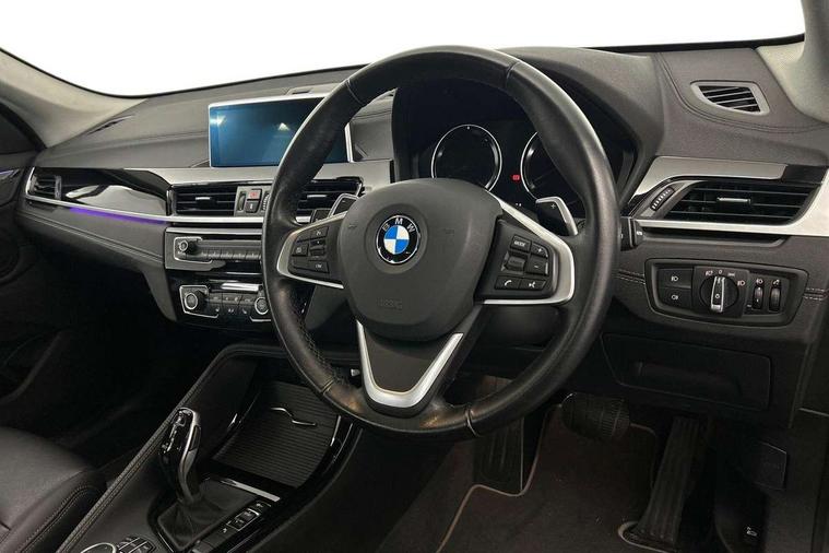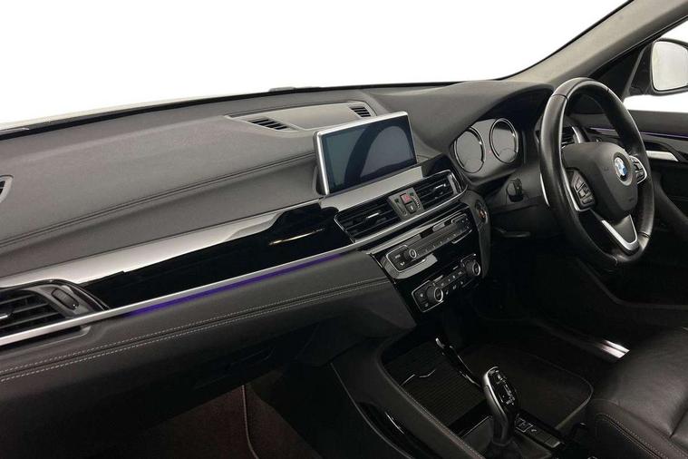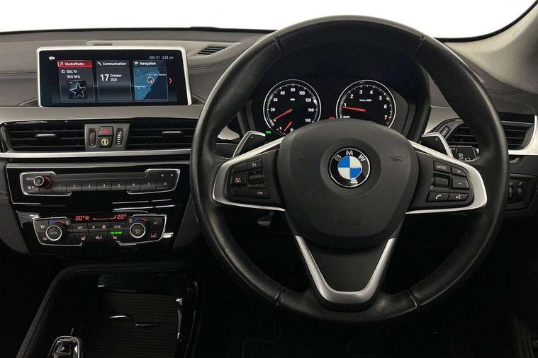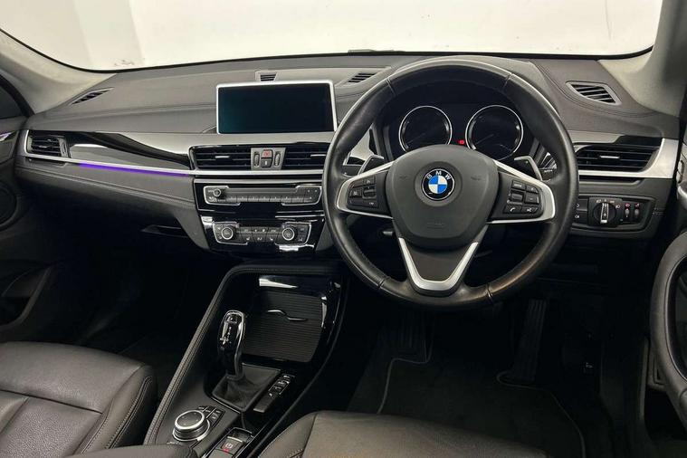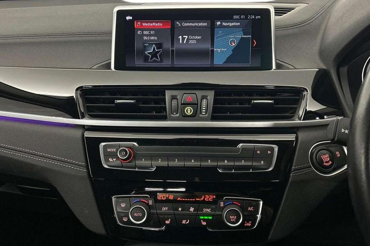 Ambient temperature display, Apple CarPlay, Arrow pointers, north up, direction of travel and perspective map displays, Attentiveness assist, Automatic tailgate opening, BMW ConnectedDrive, BMW Online services, BMW remote services, BMW Teleservices, Brake pad wear indicator in front and rear, Characteristic map controlled oil pump system, Front axle single joint with specific axle kinematics to minimise drive influences on steering + provide increased rigidity agile driving behaviour, Front/rear park distance control (PDC), Instrument cluster with Black optic display featuring superimposed dials and 5.7" colour display, Instrument cluster with speedometer with miles per hour read out, tachometer and fuel gauge, Integrated hard drive with map data updates via USB interface, Lights on warning by audio warning signal when ignition is switched off, On board computer, Operation by iDrive with direct selection buttons and 8 programmable buttons, Optimum shift indicator, Outside temperature gauge, Park assist system, Personal Profile - automatic lock when driving away selectable, Real time traffic information, Rigidly mounted rear subframe - Multi link construction with separate spring / damper configuration and excellent driving characteristics, Service interval indicator, Servotronic PAS, Tyre puncture warning system, 12V compressor with integrated sealant injection bottle and hose, 51 Litre fuel tank, Aluminium lightweight construction including crankcase, Anti-roll bars, Balancer shaft, Double VANOS, Drive performance control with ECO PRO comfort + sport mode, High precision injection, Performance Control, Seven speed sport dual clutch automatic transmission (DCT), Standard suspension, Stop/start function, Turbocharger with Valvetronic, Twin tube gas filled shock absorbers with degressive characteristic curve, BMW professional radio includes amplifier power 100w, Two mide range speakers in door trims and two woofers as central bass speaker under front seats, DAB Digital radio, Adjustable headlights, Aero curtain, Automatically dimming rear view mirror, BMW Icon design LED daytime driving lights, Body colour bumpers, Body colour door handles, Body colour door mirrors, Direction indicator side lights integrated exterior mirrors, Dynamic brake lights, Electric windows - front and rear, with open/close fingertip control, anti-trap facility and comfort closing, Electrically adjustable door mirrors with aspheric on driver side, convex on passenger side with integrated indicators, Exclusive front door sill finishers with BMW designation, Exterior mirrors - electrically folding with anti-dazzle, Follow me home headlights, Front air guide finished in black silver, Front air inlets in matt black with silver finisher matt, Front and rear bumper system, Front bumper underbody protection in silver matt, Green tinted heat protection glazing glass, Headlight beam throw control, Heated door mirrors, Heated windscreen washer jets, High level third brake light, Kidney grille with 14 chrome matt aluminium fronted with black matt sides vertical bars, LED direction indicator lights in headlight eyebrow, LED front fog lights, Lightweight engineering, Model designation, Rain sensor including auto headlights activation, Rear bumper underbody protection in black silver with silver matt insert, Rear fog lights, Rear window aerial, Rear window wash/wipe, Reversing light in rear light cluster, Roof mouldings in matt black, Shark fin antenna, Sill cover matt black with matt silver insert, Twin chrome exhaust tailpipes x2, Two eye face design on light, Visible VIN plate, Welcome lighting, 12v power point in centre console, 2 cup holders in front, 3 rear headrests, 3 spoke sport leather steering wheel, 40:20:40 split folding rear bench seat, Boot light, Centre armrest in 20 degree part rear seat backrest, Child seat ISOFIX attachment for two outer rear seats and front passenger seat with anchorage points, Conditioned based service, Dakota leather upholstery with perforation and contrast stitching, Driver and front passenger heated seats, Driver/front passenger seat backrest back with luggage net, Dual zone automatic air conditioning, Four grab handles integrated in roof linings, Front and rear side armrests integrated into door trim, Front centre armrest/sliding cover, Front centre interior light over interior mirror and rear centre automatic interior light when door is opened/ignition switched off or via remote key, Front/rear adjustable head restraints, Illuminated glovebox, Leather gearknob/gaiter/handbrake grip, LED ambient lighting in door trim, Luggage area underfloor compartment, Luggage compartment access via recessed handle below tailgate, Luggage compartment lighting, Luggage compartment loading edge with stainless steel insert, Manually adjustment steering wheel column, Multifunction steering wheel, Rear coded belt buckles, Standing free front adjustable armrest and fixed in different positions, Steering wheel gearshift paddles, Sunvisors with vanity mirrors and ticket pocket, Velour floor carpets, Extended lights pack - X1, Extended storage package - X1, ABS/EBD, Audio/visual collision warning system, Automatic Stability Control (ASC), Battery safety cut-off, BMW emergency call, Brake drying, Brake energy regeneration, Braking readiness, Cornering brake control (CBC), Crash Sensor - activates hazard/interior lighting + unlocks doors, Driver/Front Passenger airbags, Driver/front passenger side airbags, Dynamic brake control, Dynamic stability control + (DSC+), Dynamic Traction Control - DTC, Electronic differential lock control (EDLC), Electronic parking brake, Front and rear head airbags, Front passenger airbag deactivation, Front seatbelt force limiters, Front ventilated disc brakes, Hill start assist, Pyrotechnically pre-tensioned front seatbelts, Rear disc brakes, Rear door child safety locks, Seatbelt security check for driver and front passenger, Side impact protection, Three point seat belts in all belt