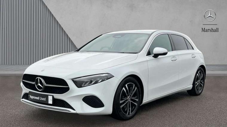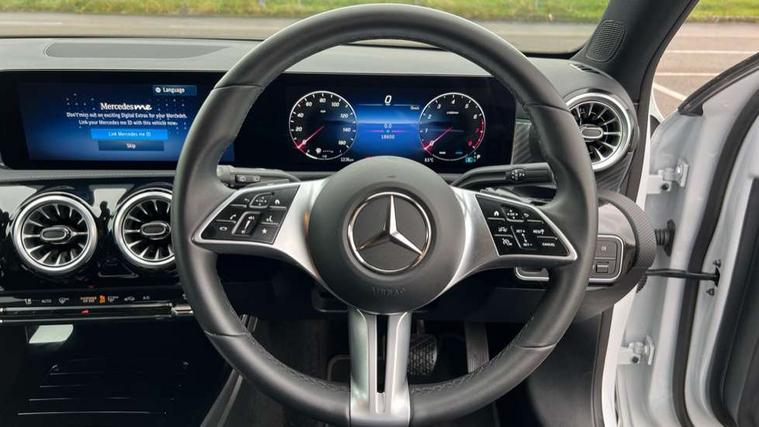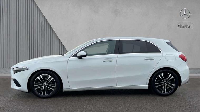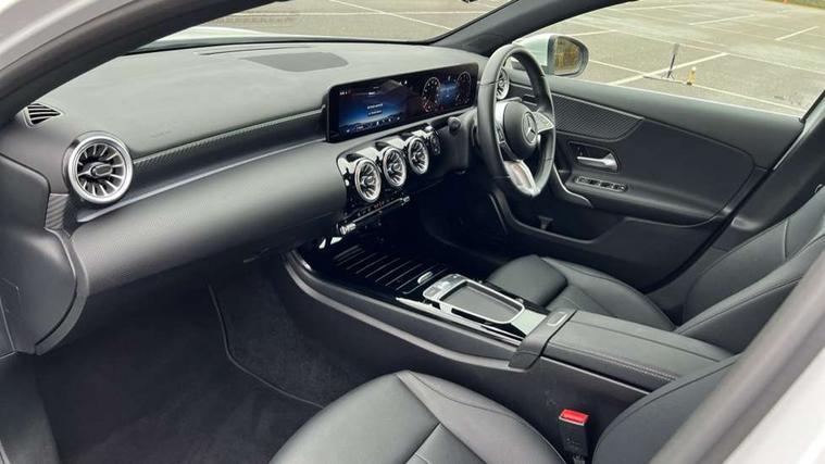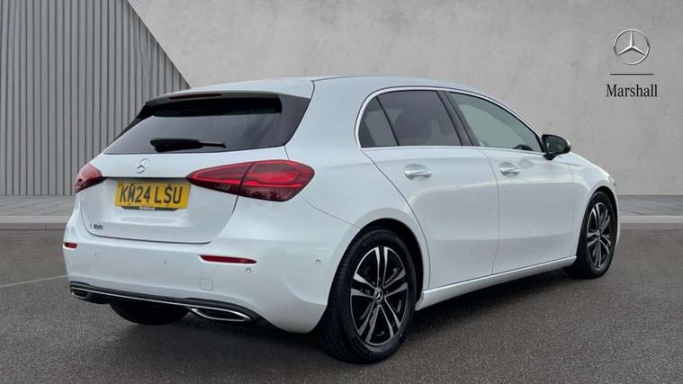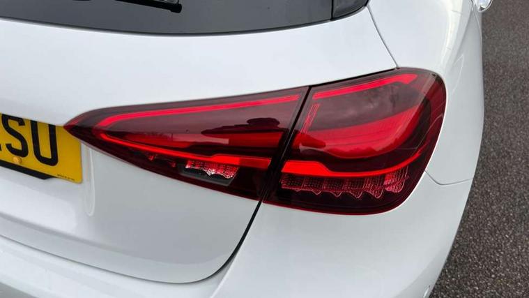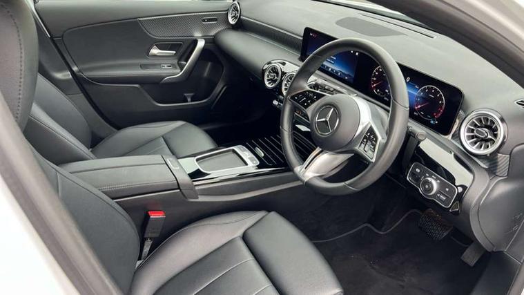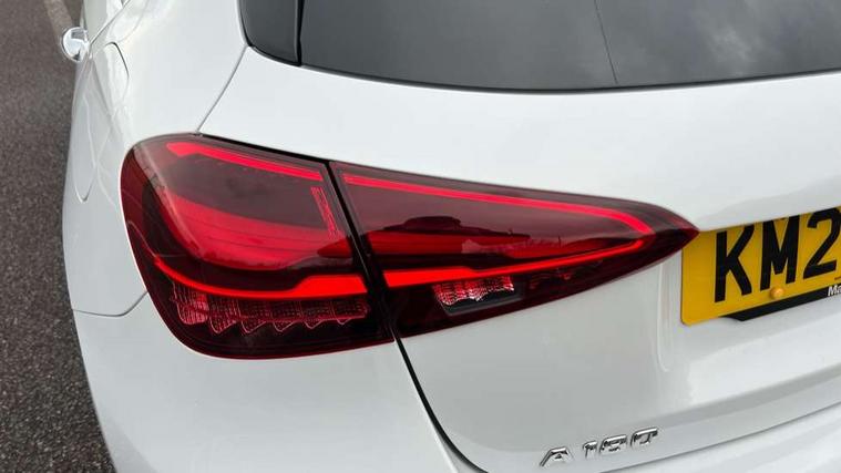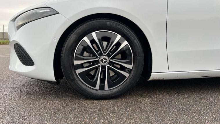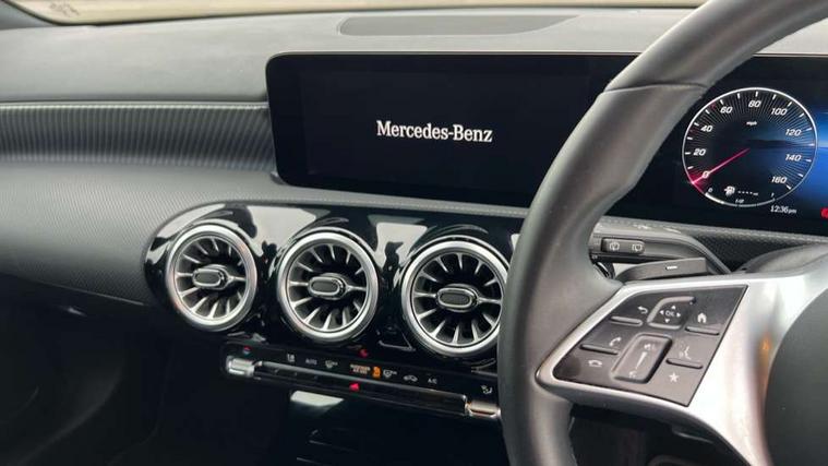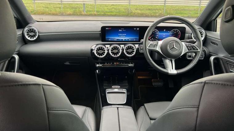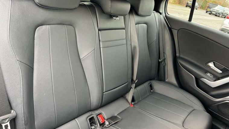 10.25 inch touchscreen central media display, 10.25" Digital instrument cluster display screen, Attention assist, Brake pad wear indicator warning light, Car wash mode, Cruise control + speed limiter, Direct steering, Direction indicators with lane change function, Dual bluetooth interfaces, DYNAMIC SELECT with a choice of driving modes (ECO, Comfort, Sport and Individual), Easy pack tailgate hands-free access, ECO start/stop function, Engine start/stop button, Fluid level warning indicator for fuel, oil, coolant and washer fluid, Fluorescent jacket for driver, Hard-disk navigation, Hey Mercedes Voice activation, Lamp failure indicator, Lane keeping system, Mercedes me connect including emergency call system, accident recovery, breakdown management and maintenance, Mercedes me remote services, Outside temperature gauge, Owners manual in English, Pre-installation of private car share, Preinstallation for Mercedes Benz link, Remote boot closing, Service indicator (ASSYST), Smartphone integration with Apple CarPlay and Android auto, Speed limit assist, Speed sensitive power steering, Tailgate, Trip computer in multifunction display with current consumption indicator, Wireless charging, Lowered comfort suspension, DAB Digital radio, MBUX multimedia system, Mercedes Benz sound system (100 W) with 6 speakers, 4 Electric Front and Rear windows, Adaptive brake lights, Body colour bumpers, Body colour door handles with chrome inserts, Body colour side skirt, Body coloured door mirrors, Chrome beltline strips, Diamond radiator grille with pins in fine star pattern, Electric adjustable and heated door mirrors with integrated LED side indicators, Exhaust system with 2 visible tailpipe trim elements and rear apron, Headlamp assist automatic headlamp activation, Heat insulating dark tinted rear and rear side windows, Heated glass rear windscreen + timer control, LED High level third brake light, LED High Performance headlamps including integral LED daytime running lamps and adaptive highbeam assist, LED tail lamp, Privacy glass, Radio aerial, Rain sensing windscreen wipers with two sensitivity settings, Rear fog lights, Rear side wing doors, Rear windscreen wiper, Window line trim strip in chrome, 3 seat bench in 2nd row, 3 spoke ARTICO man-made leather multifunction sports steering wheel, 4 way lumbar support, 40:20:40 split folding rear seats, Air conditioning - One zone thermatic automatic climate control with automatically controlled air distribution, Artico man-made leather upholstery, Automatic child seat recognition sensor, Black air vents with surround in silver chrome, Black roof lining, Front centre armrest with stowage, Front comfort seats with adjustable head restraints, Front door sills with Mercedes Benz lettering, Front seat backs luggage nets, Gearshift paddles on steering wheel, Heated front seats, Height/reach adjustable steering column, Interior lighting - 64 colour Ambient lighting, Interior mirror with reading lamps in black and frameless, ISOFIX and top tether child seat fixing points in two outer rear seats, Rear armrest with 2 cupholders, Rear head restraints, Seat occupancy sensor for front passenger seat, Single front passenger seat, Stowage compartment in centre console with retractable cover, Sunvisors with illuminated vanity mirrors, Twin front cupholders, Velour floor mats, Light and sight pack - A Class, Mirror package - A Class, Parking pack - A Class, Seat comfort pack - A Class, USB pack plus - A Class, 3 rear 3 point seatbelts, ABS with Brake Assist, Active bonnet, Active brake assist includes forward collision warning system with autonomous braking, Adaptive brake assist with hold function and hill start assist, Black seatbelts, Bonnet with power domes, Childproof locks manually operated for rear doors and electrically operated for rear power windows, Crash responsive emergency lighting, Driver and passenger head and side airbags, Drivers knee airbag, Dual stage driver/passenger airbags, Electronic parking brake, ESP curve dynamic assist, ESP with ASR, Front and rear seatbelt reminder, Tyre pressure monitoring system, Warning triangle and first aid kit, Window airbags, Alarm system/interior protection/immobiliser, Guard 360 degree vehicle protection, Keyless entry lock/unlock, Keyless Go, Remote central locking and crash sensor with emergency opening function, Dark carbon fibre interior trim, 17" 5 spoke light alloy wheels, aerodynamically optimised, painted in black with high sheen finish, Summer tyres, Tirefit sealant kit,