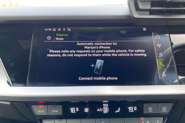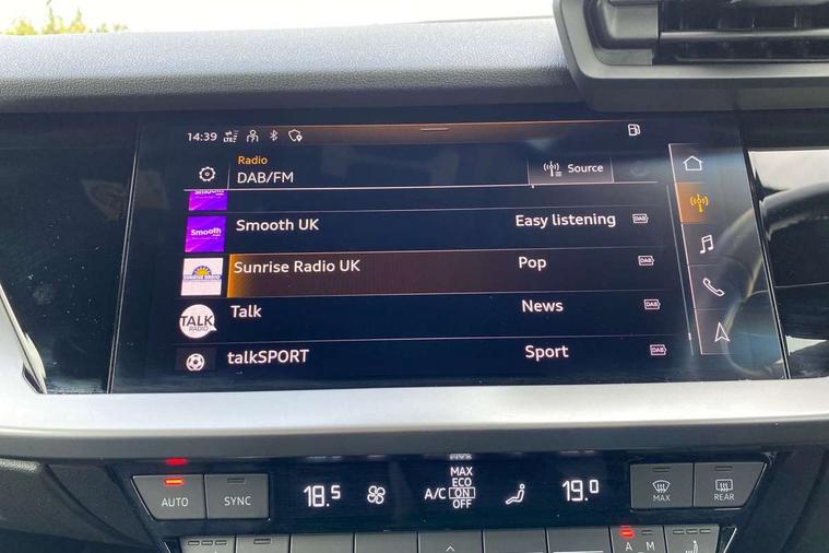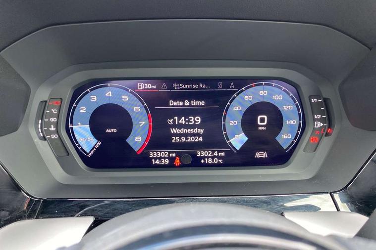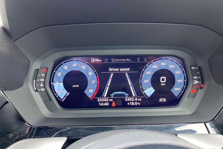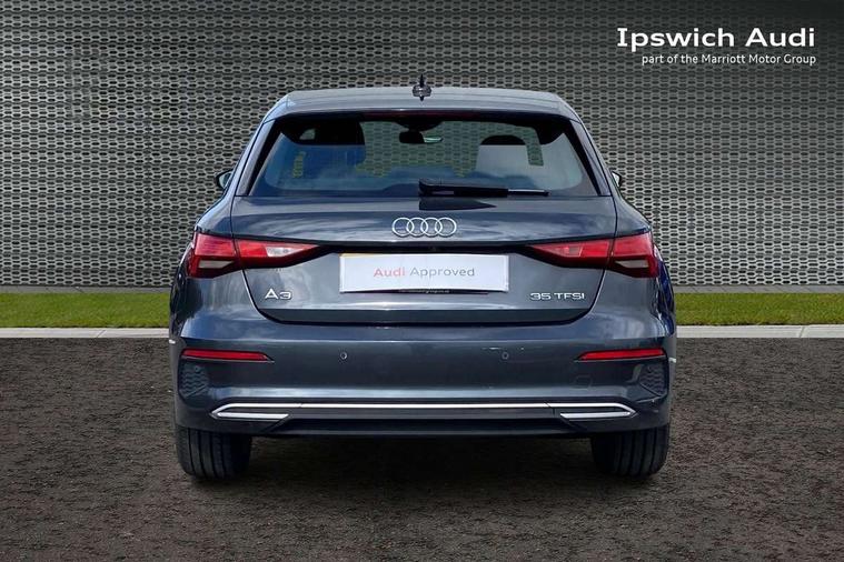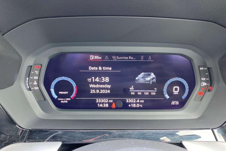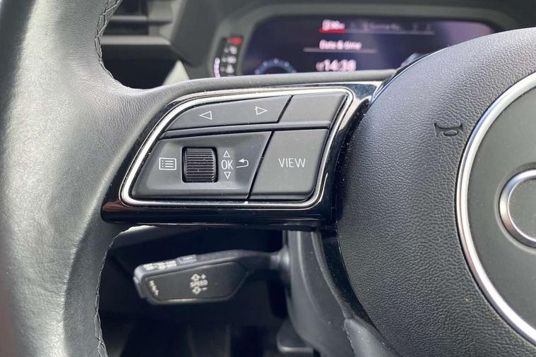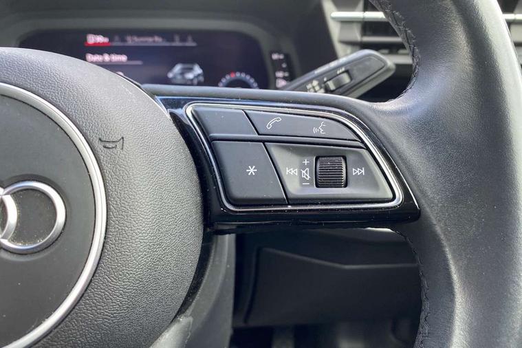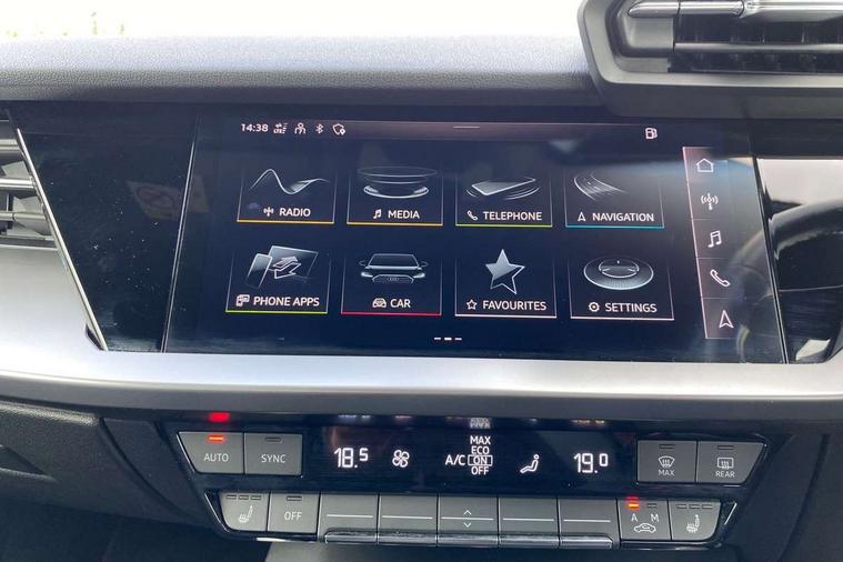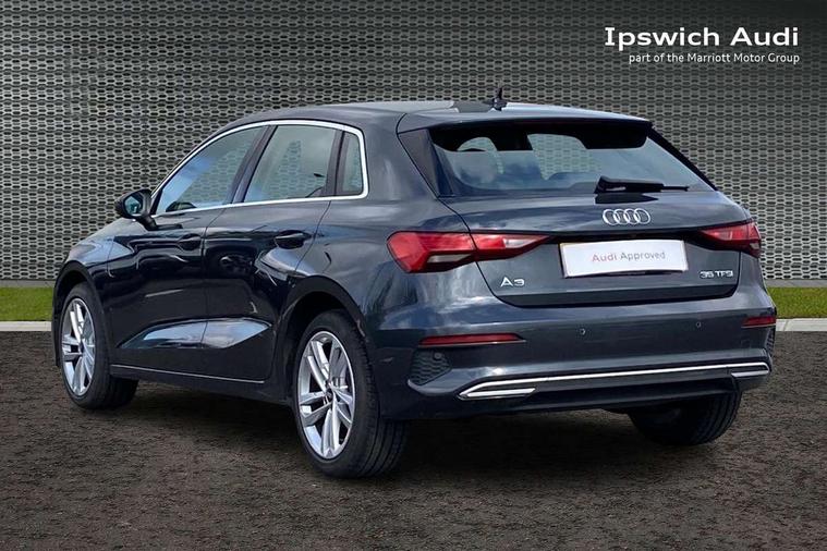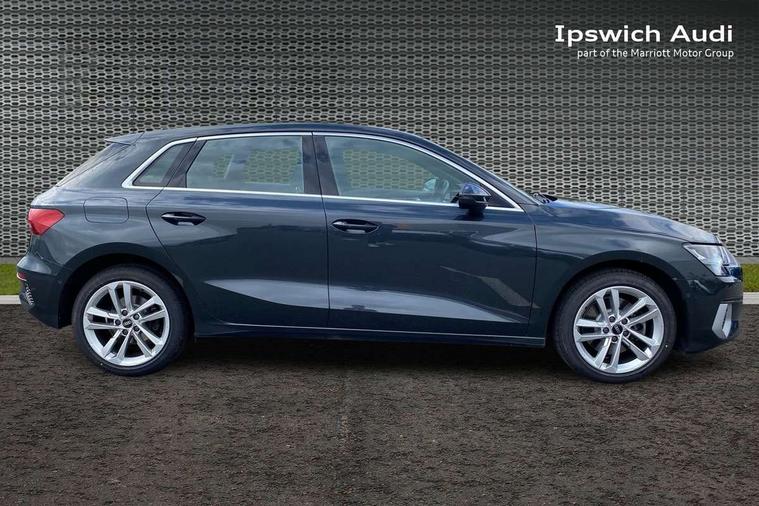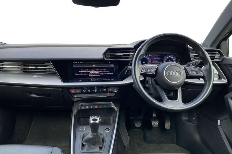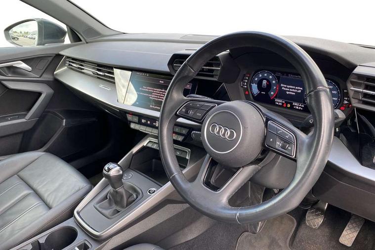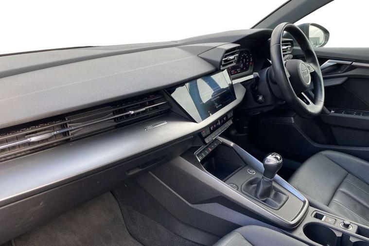 Audi connect emergency call and service, Audi drive select (Auto, Comfort, Dynamic, Efficiency and Individual), Audi smartphone interface, Audi Virtual Cockpit - 10.25" digital and colour instrument cluster, Automatic start/stop system with recuperation, Bluetooth interface, Collision avoidance assistant, Cruise control, Electromechanical power speed sensitive steering, Lane departure warning system, MMI Navigation Plus with high resolution 10.1" colour touch screen display, Rear parking sensors, Service indicator, Trip computer, Voice control system with natural language interaction, Standard suspension, 2xUSB-C connection with data and charging functions, 6 passive loudspeakers, DAB Digital radio, Acoustic glass windscreen, Aluminium window trim, Auto dimming frameless rear view mirror, Body colour exterior mirrors, Body colour roof spoiler, Electrically adjustable/heated/folding/dimming door mirrors with kerb view includes integrated LED indications + kerb view function for passenger side, Front electric windows, LED daytime running lights, Light and rain sensors, Rear electric windows, Rear window, rear door windows and rear side windows in clear glass, Rear wiper, 12V socket and storage compartment in front centre console, 40/20/40 split folding rear seat bench with cupholder, Dual zone electronic climate control, Front and rear centre armrest, Front and rear headrests, Front door sill trims with aluminium inlay, Front/rear floor mats, Height and reach adjustable steering wheel, Interior lighting - Front and rear roof module including reading lights, glove compartment light and right hand side, Luggage compartment floor covering, Manual boot compartment lid, Manually adjustable front seats, Seat side bolsters, Steel grey cloth headlining, Twin leather upholstery, Aluminium interior elements pack - A3 Sportback, Sport styling pack - A3 Sportback, 3x3 point rear seat belts, Driver and front passenger airbag with passenger airbag deactivation, Electronic Stabilisation Control (ESC) including ABS, ASR and EDL, First aid kit with warning triangle and 2 safety vests, Front side airbags with head airbags and interaction airbag, Hill hold assist, Pre-sense front with pedestrian and cyclist detection, Seatbelt monitoring, Tyre pressure loss indicator, Anti theft alarm, Anti-theft wheel bolts, Electronically operated child lock, Immobiliser, Remote control central locking, Inlays with silk effect paint in platinum grey,