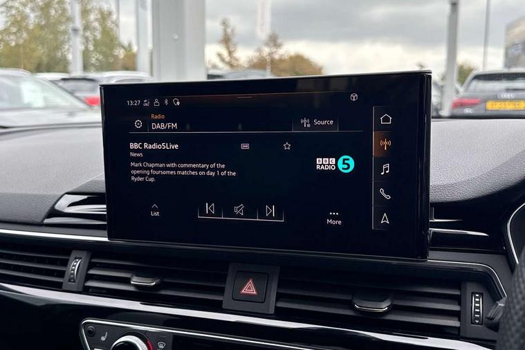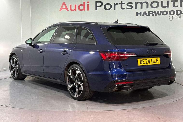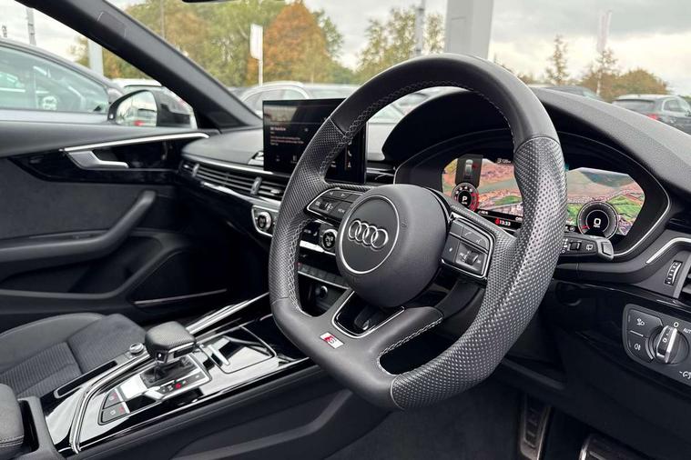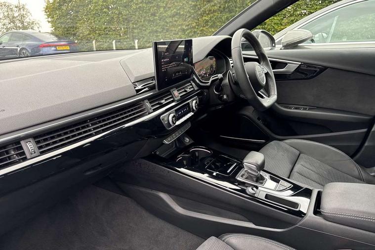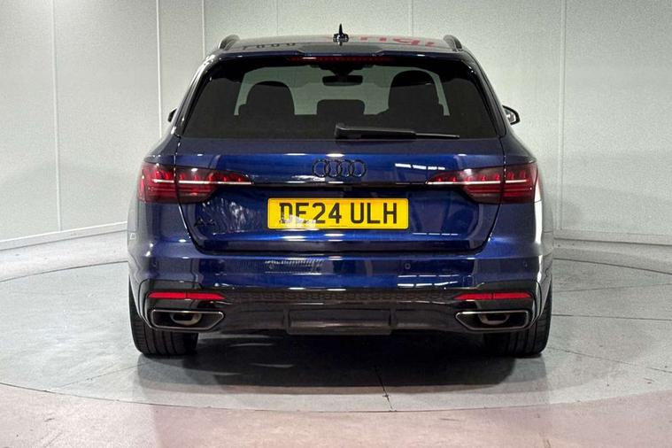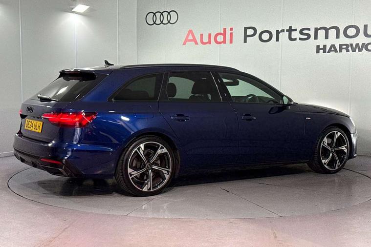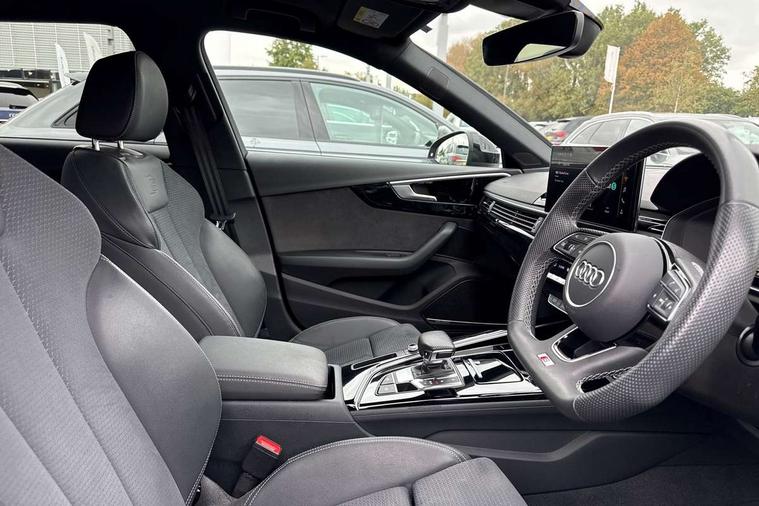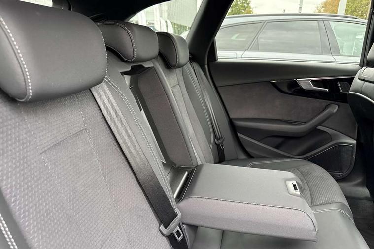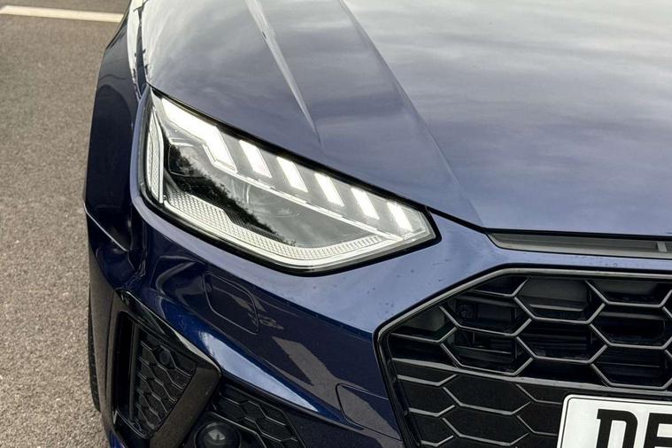Audi connect safety and service (e-call), Audi drive select, Audi smartphone interface, Audi virtual cockpit, Automatic start-stop system with coasting functionality and efficiency programme, Bluetooth interface, Camera based traffic sign recognition, Electromechanical power steering, Email, calendar and text messages displayed via MMI, Front and rear parking sensors, Lane departure warning, MMI Navigation plus with MMI touch includes 10.1" high resolution colour MMI display, 3D map, Power operated tailgate, Rear view camera, Voice control system, 54 litre fuel tank, Sports suspension lowered by 23mm, 2 USB charging ports, 8 passive loudspeakers, DAB digital radio reception, Audi beam uses LEDs to project the audi logo onto the ground as you exit your A4, Auto dimming rear view mirror, Black Audi rings and black badging (model name in black badging, no engine badging), Body colour door handles, Body colour front spoiler lip, Body colour side sill trim, Electric adjustable/heated/folding door mirrors with auto dimming, Exhaust tailpipes in high dark chrome, Grained matt black side air inlets with matt aluminium silver inlay, High beam assistant, High gloss black B pillar trims and triangular rear door trim, LED headlights with LED rear lights + dynamic rear indicators + headlight adjustment and high beam, turning light + LED daytime running lights, LED third brake light, Privacy glass, Rain and light sensors, Rear diffuser in matt black with trim strip in matt aluminium silver, Rear side wing doors, Rear wiper, RS4 rear spoiler in body colour, S Line roof edge spoiler, Sport front and rear bumpers with side skirts, Variable intermittent front wash/wipe, Windscreen with acoustic glazing, 4 way electric lumbar support for driver and front passenger, 40/20/40 split folding 3 rear seat bench in 3 parts with rear centre armrest, Black carpets, Black cloth headlining, Black perforated leather gearknob, Contrast stitching on seats, steering wheel and gear lever gaiter, Deluxe 3 zone electronic climate control, Electric load area cover, Front and rear head restraints, Front centre armrest, Heated front seats, Illuminated door sill trims with S logo, ISOFIX child seat mounting and top tether, Manual seat adjustment, Single front passenger seat, Stainless steel pedals and foot rest, Tool kit, Black styling pack - A4 Avant, LED Interior light pack - A4/S4, 3 rear seatbelts, 6 airbags - Driver, front passenger, curtain and side windows, Attention and drowsiness assist, Electronic Stabilisation Control (ESC) including ABS, ASR and EDL, Hill hold assist, Multi collision brake assist, Pop-up bonnet for pedestrian protection, Pre sense city, Rear door child safety locks, Seatbelt monitoring, Warning triangle and first aid kit, Anti theft alarm, Anti theft wheel bolts, Central locking, Keyless Go, Piano black finish inlay, Tyre repair kit,