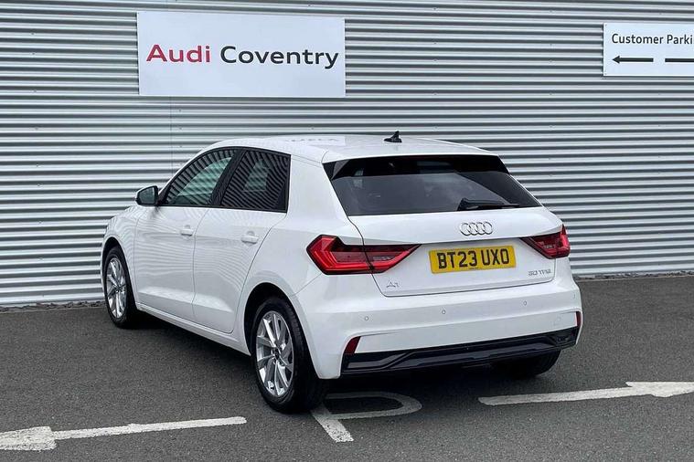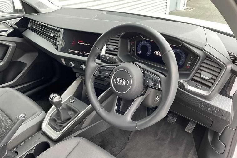 10.25" Digital instrument cluster display classis style instrument dials + speed, odometer, time, outside temperature, telephone menu + fuel level warning, Audi drive select - power steering assistance + engine, Audi smartphone interface with connect compatible smartphone via USB directly MMI display + Nav, music, third party apps controlled via MMI controller, Automatic start/stop system, Bluetooth interface, Cruise control, Driver's information system, Electromechanical power steering, Emergency e-call, Lane departure warning system, Rear parking sensor, Service interval indicator, Speed limiter, Voice control system, Washer fluid level indicator, Dynamic suspension, 2 x USB type C connection points, 6 passive loudspeakers, DAB Digital radio, MMI radio plus with 10.1" colour MMI display screen and MMI touch, Auto dimming rear view mirror, Body coloured bumpers, Body coloured door mirrors, Electric front and rear windows, Electrically adjustable, heated, folding door mirrors with integrated LED side indicator, Front side air inlets in grained matt black and C frame in anthracite black, Heat insulating glass windscreen and side windows, Heated rear windscreen, High level LED brake light, LED headlights with LED rear lights + dynamic rear indicators + headlight adjustment and high beam, turning light + LED daytime running lights, Radiator grille and rear diffuser in matt anthracite black, Radiator protective grille frame in matt aluminium silver, Rain and light sensors, Rear fog lights, Rear side wing doors, Rear wiper, Side front spoiler lips in grained matt black, 12V socket in centre console with two cup holders, 3 rear seats with headrests, 3 seat bench in 2nd row, 3 spoke leather multifunction plus steering wheel, 40:60 Split folding rear seat or folded fully, Black front and rear floor mats, Door sill trims with aluminium inlay, Driver and passenger seat with manual height adjust with forward and backwards adjustment, Front head restraints, Front passenger seat, Grey cloth headlining, Height and reach adjustable steering wheel, ISOFIX child seat mounting for front passenger and outer rear seats including top tether attachment point of outer rear seats, Leather gear knob with aluminium trim, Leatherette handbrake grip, Luggage compartment light with front and rear reading lights, Manual air conditioning, Manually adjustable lumbar support in front seats, Novum cloth upholstery with front sport seats, Luggage compartment pack - A1, 3x3 point rear seatbelts, Audi pre-sense front with pedestrain and cyclist recognition, Brake assist function, Driver and front passenger airbag with front side and head airbags, Electronic Stability Control including ABS, EBD, ASR and EDL, Front passenger airbag deactivation switch, Hill hold assist, Manual rear child locks, Seatbelt height adjustment for front seats, Seatbelt monitoring, Tyre pressure warning light, Warning triangle and first aid kit, Anti theft alarm, Anti theft wheel bolts and loose wheel warning, Immobiliser, Remote central locking with 2 foldaway keys, Aluminium trim for control switches, air vents and digital instrument cluster, Black dashboard, Silver grey accent areas including air vents, door handle recesses and centre console in diamond paint finish, Slate grey inlays polygon structure in fine paint finish,