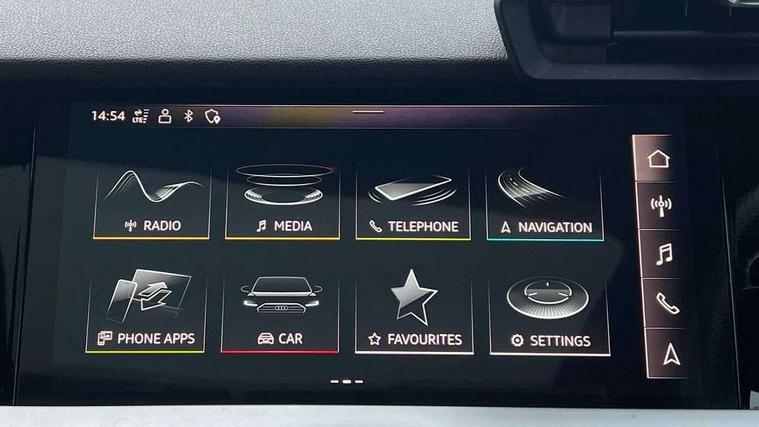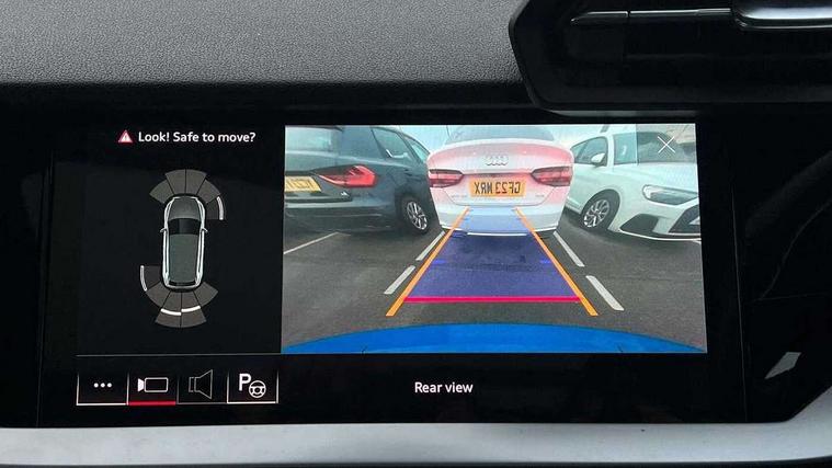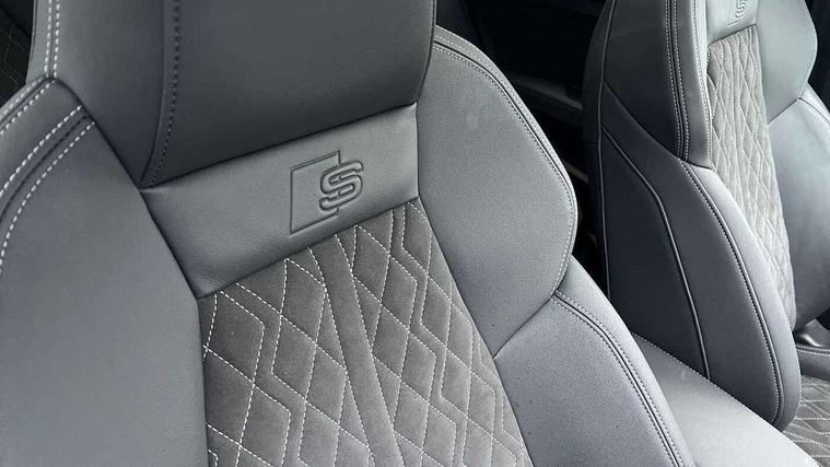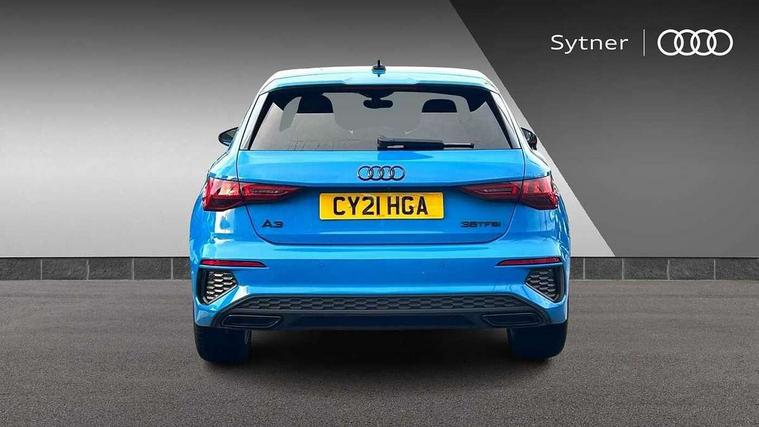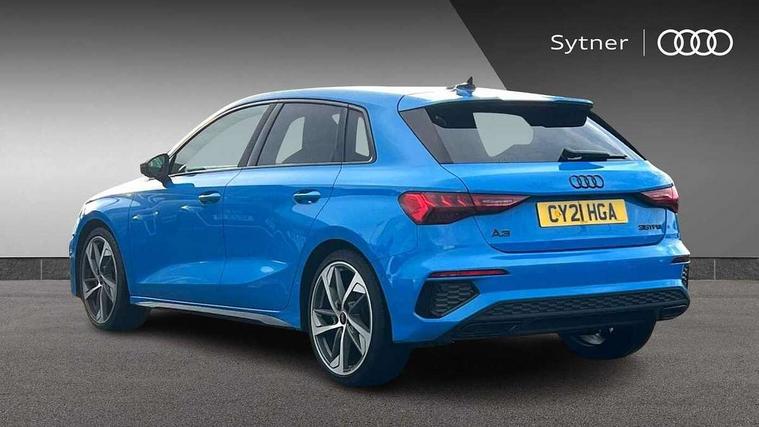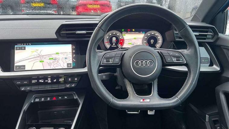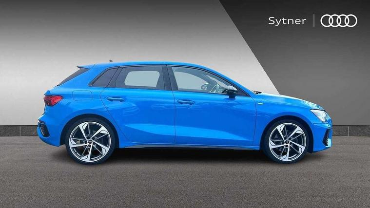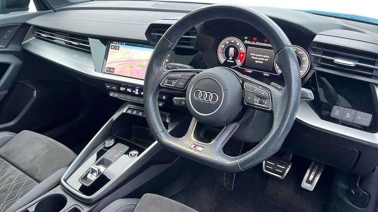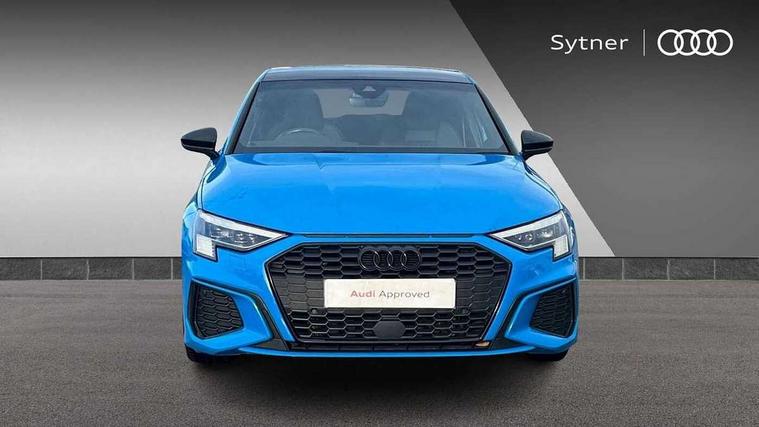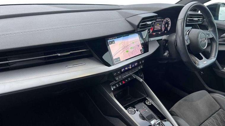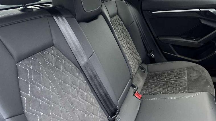 Audi connect emergency call and service, Audi drive select (Auto, Comfort, Dynamic, Efficiency and Individual), Audi smartphone interface, Audi virtual cockpit plus - 12.3" full HD resolution dynamic digital instrument cluster, Automatic start/stop system with recuperation, Bluetooth interface, Collision avoidance assistant, Electromechanical power speed sensitive steering, Lane departure warning system, MMI Navigation Plus with high resolution 10.1" colour touch screen display, Service indicator, Trip computer, Voice control system with natural language interaction, Sports suspension, 2xUSB-C connection with data and charging functions, 6 passive loudspeakers, DAB Digital radio, Acoustic glass windscreen, Auto dimming frameless rear view mirror, Body colour front spoiler blade, Electrically adj heated/folding + automatically dimming exterior mirrors + automatic kerb side function for passenger side exterior mirror, Front electric windows, Illuminated aluminium inserts front door sills with S logo, Integrated LED indicators in door mirrors, LED daytime running lights, Light and rain sensors, Privacy glass - dark tinted rear window, rear door and side windows, Rear diffuser in grained matt black, Rear electric windows, Rear side air outlets in grained matt black, Rear wiper, S roof spoiler, 12V socket and storage compartment in front centre console, 4 way electrically adjustable lumbar support for driver and front passenger, 40/20/40 split folding rear seat bench with cupholder, Alcantara/twin leather upholstery with front sports seats S embossed logo, Black cloth headlining, Dual zone electronic climate control, Electrically adjustable front seats for driver's side, Front and rear centre armrest in leather, Front and rear headrests, Front/rear floor mats, Heated front seats, Height and reach adjustable steering wheel, Interior lighting - glove compartment light and right hand side, Luggage compartment floor covering, Seat side bolsters, Stainless steel pedals and front footrest, Aluminium interior elements pack - A3 Sportback, Black styling pack - A3 Sportback, Extended ambient lighting pack - A3 Sportback, LED interior lighting pack - A3 Sportback Edition 1/Vorsprung, Matrix LED Exterior lighting Pack - A3, 3x3 point rear seat belts, Driver and front passenger airbag with passenger airbag deactivation, Electronic Stabilisation Control (ESC) including ABS, ASR and EDL, First aid kit with warning triangle and 2 safety vests, Front side airbags with head airbags and interaction airbag, Hill hold assist, Pre-sense front with pedestrian and cyclist detection, Seatbelt monitoring, Tyre pressure loss indicator, Anti theft alarm, Anti-theft wheel bolts, Electronically operated child lock, Immobiliser, Remote control central locking, Accent surfaces in the dashboard and centre console in platinum grey silk effect paint finish, Dark spectrum aluminium inlays, 19" 5 arm trapezoid design alloy wheels in titanium matt grey with diamond cut finish,