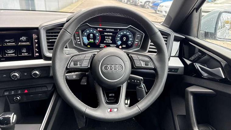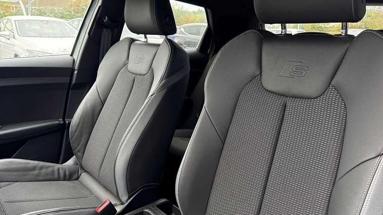 Audi drive select (Auto, Comfort, Dynamic, Efficiency and Individual), Audi smartphone interface, Audi Virtual Cockpit - 10.25" digital and colour instrument cluster, Automatic start/stop system with recuperation, Bluetooth interface, Camera based traffic sign recognition, Collision avoidance assistant, e-Call (emergency call), Electromechanical power speed sensitive steering, Lane departure warning system, MMI Navigation Plus with high resolution 10.1" colour touch screen display, Service indicator, Trip computer, Voice control system with natural language interaction, Sports suspension, 2xUSB-C connection with data and charging functions, 6 passive loudspeakers, CD player, DAB Digital radio, 3rd brake light, Acoustic glass windscreen, Audi beam uses LEDs to project the Audi logo onto the ground as you exit your A3, Auto dimming frameless rear view mirror, Electrically adjustable/heated/folding/dimming door mirrors with kerb view includes integrated LED indications + kerb view function for passenger side, Front electric windows, Illuminated door sills with aluminium inserts at the front with S logo, LED daytime running lights, LED headlights with LED rear lights and dynamic rear indicators, Light and rain sensors, Model and engine designation badges at rear, Privacy glass - dark tinted rear window, rear door and side windows, Rear boot, Rear electric windows, Rear side wing doors, S roof spoiler, 12V socket and storage compartment in front centre console, 3 seat bench in 2nd row, 3 spoke flat bottomed leather multifunction sport steering wheel with gear shift paddles, 4 way electrically adjustable lumbar support for driver and front passenger, 60/40 split folding rear seat bench, Black cloth headlining, Dual zone electronic climate control, Front and rear centre armrest in artificial leather, Front and rear headrests, Front/rear floor mats, Height and reach adjustable steering wheel, Interior lighting - glove compartment light and right hand side, Luggage compartment floor covering, Manual boot compartment lid, Single front passenger seat, Stainless steel pedals and front footrest in black, Twin leather upholstery with front sports seats S embossed logo, Aluminium interior elements pack - A3 Saloon, Black styling pack - A3 Saloon/Black edition, LED interior lighting pack - A3 Saloon, 3x3 point rear seat belts, Driver and front passenger airbag with passenger airbag deactivation, Electronic Stabilisation Control (ESC) including ABS, ASR and EDL, First aid kit with warning triangle and 2 safety vests, Front side airbags with head airbags and interaction airbag, Pre-sense front with pedestrian and cyclist detection, Seatbelt monitoring, Tyre pressure loss indicator, Anti theft alarm, Anti-theft wheel bolts, Electronically operated child locks, Immobiliser, Remote control central locking, Aluminium air vent surrounds, Dark spectrum aluminium inlays, accent surfaces in the dashboard and centre console in platinum grey silk effect paint finish, 19" 5 arm trapezoid design alloy wheels in matt grey with diamond cut finish,