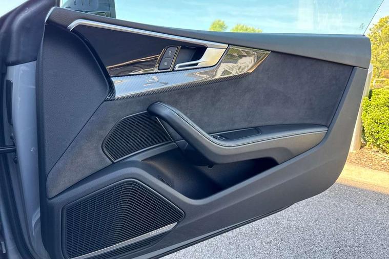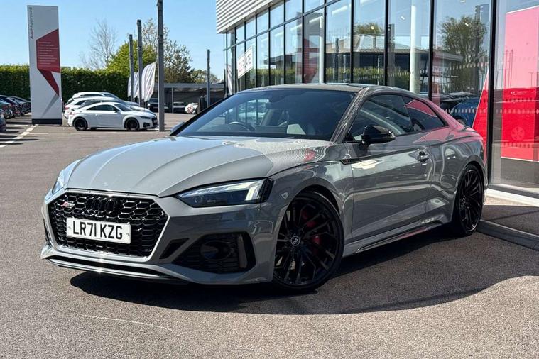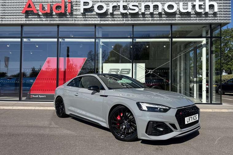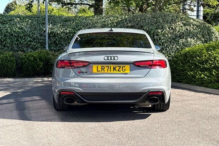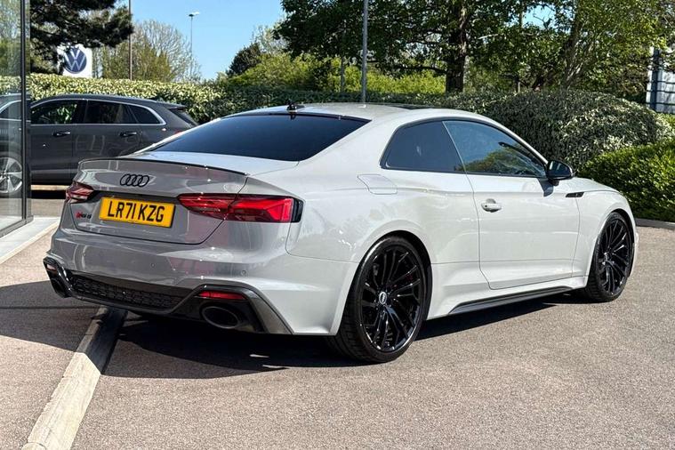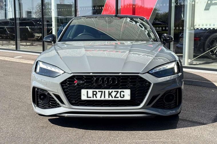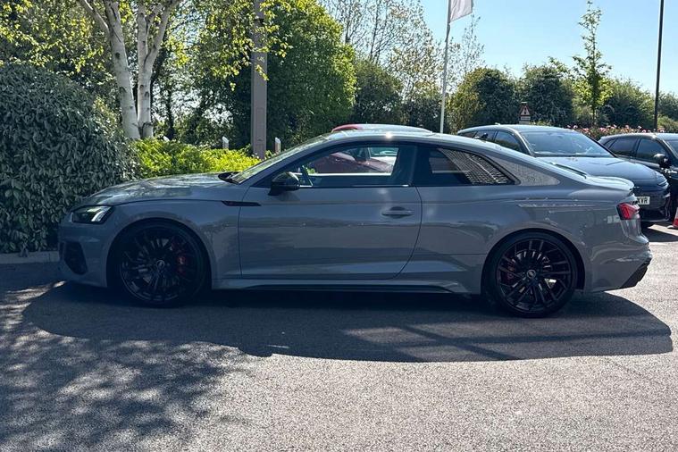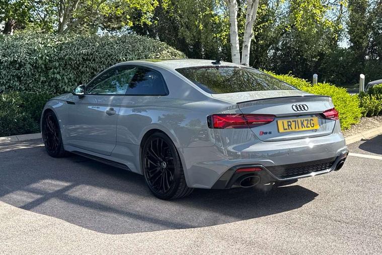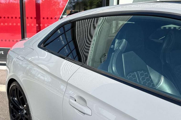 Audi connect safety and service (e-call), Audi connect with Amazon Alexa Integration, Audi parking system plus with front and rear sensors, Audi phone box with wireless charging, Audi side assist, Audi smartphone interface, Audi Virtual Cockpit with RS specific design and 12.3" display, Automatic start-stop system with coasting functionality and efficiency programme, Bluetooth interface, Electromechanical power steering, Email, calendar and text messages displayed via MMI, MMI Navigation plus with MMI touch includes 10.1" high resolution colour MMI display, 3D map, Rear view camera, RS Audi drive select, RS drive modes on steering wheel, Service interval indicator, Voice control system, Quattro sports differential, Audi sound system, DAB digital radio reception, Audi Beam uses LEDs to project the RS logo, Audi matrix LED headlights with LED rear lights + dynamic front and rear indicators, Audi rings and lettering glossy black, Auto dimming rear view mirror, Body colour door handles, Electric front windows, Electric rear windows, Electrically folding, adjustable and heated door mirrors with integrated LED side indicators and kerb view function for passenger side, Exterior mirror housing in high gloss black, High beam assistant, Larger singleframe grill, LED daytime running lights, Privacy glass with rear acoustic glazing, Rain and light sensors, RS bumper with quattro lettering, RS5 badges on grille, the front wing panels and rear, RS5 dual branch chrome tailpipes with left and right oval pipes, Windscreen with acoustic glazing, 2 x USB charging port with aux input socket, 3 spoke leather heated multi-function plus steering wheel with RS badging, 40:20:40 split folding 2 seater rear seat bench with rear centre armrest, Aluminium shift paddles, Black cloth headlining, Deluxe 3 zone electronic climate control, Electrically adjustable front seats, Fine Nappa leather upholstery, Front centre armrest, Front head restraints, Front/rear floor mats, Heated front seats, Illuminated door sill trims with RS5 logo, ISOFIX child seat mounting and top tether, Leather door armrests and knee pad, Pneumatic massage function, Rear head restraints, RS Specific perforated leather gear lever knob with contrast stitching, RS Super Sports seats with contrast honeycomb stitching, Stainless steel pedals, Tool kit, Carbon black styling pack - RS5, LED Interior light pack - RS5, 2 x 3-point rear seatbelts, 6 airbags - Driver, front passenger, curtain and side airbags, Electromechanical parking brake, Electronic Stabilisation Control (ESC) including ABS, ASR and EDL, Front passenger airbag deactivation, Height adjustable front seatbelts, Hill hold assist, Multi collision brake assist, Pop-up bonnet for pedestrian protection, Pre sense city, RS Model enhanced braking system, Seatbelt monitoring, Tyre pressure warning, Warning triangle and first aid kit, Anti theft alarm system, Anti theft wheel bolts, Immobiliser, Keyless Go, Remote control key with RS emblem, Carbon twill inlays, 20" 5 Segment spoke Evo style design audi sport alloy wheels in glossy black, Tyre repair kit,