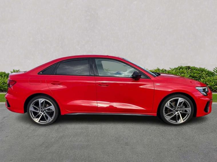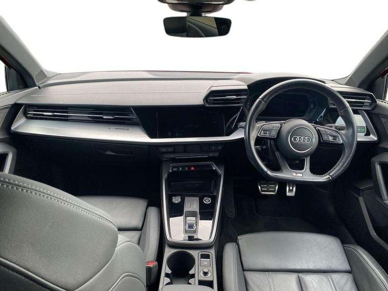 Audi drive select (Auto, Comfort, Dynamic, Efficiency and Individual), Audi smartphone interface, Audi Virtual Cockpit - 10.25" digital and colour instrument cluster, Automatic start/stop system with recuperation, Bluetooth interface, Camera based traffic sign recognition, Collision avoidance assistant, e-Call (emergency call), Electromechanical power speed sensitive steering, Lane departure warning system, MMI Navigation Plus with high resolution 10.1" colour touch screen display, Service indicator, Trip computer, Voice control system with natural language interaction, Diesel particulate filter, Sports suspension, 2xUSB-C connection with data and charging functions, 6 passive loudspeakers, CD player, DAB Digital radio, 3rd brake light, Acoustic glass windscreen, Audi beam uses LEDs to project the Audi logo onto the ground as you exit your A3, Auto dimming frameless rear view mirror, Electrically adjustable/heated/folding/dimming door mirrors with kerb view includes integrated LED indications + kerb view function for passenger side, Front electric windows, Illuminated door sills with aluminium inserts at the front with S logo, LED daytime running lights, LED headlights with LED rear lights and dynamic rear indicators, Light and rain sensors, Model and engine designation badges at rear, Privacy glass - dark tinted rear window, rear door and side windows, Rear boot, Rear electric windows, Rear side wing doors, S roof spoiler, 12V socket and storage compartment in front centre console, 3 seat bench in 2nd row, 3 spoke flat bottomed leather multifunction sport steering wheel with gear shift paddles, 4 way electrically adjustable lumbar support for driver and front passenger, 60/40 split folding rear seat bench, Black cloth headlining, Dual zone electronic climate control, Front and rear centre armrest in artificial leather, Front and rear headrests, Front/rear floor mats, Height and reach adjustable steering wheel, Interior lighting - glove compartment light and right hand side, Luggage compartment floor covering, Manual boot compartment lid, Single front passenger seat, Stainless steel pedals and front footrest in black, Twin leather upholstery with front sports seats S embossed logo, Aluminium interior elements pack - A3 Saloon, Black styling pack - A3 Saloon/Black edition, LED interior lighting pack - A3 Saloon, 3x3 point rear seat belts, Driver and front passenger airbag with passenger airbag deactivation, Electronic Stabilisation Control (ESC) including ABS, ASR and EDL, First aid kit with warning triangle and 2 safety vests, Front side airbags with head airbags and interaction airbag, Pre-sense front with pedestrian and cyclist detection, Seatbelt monitoring, Tyre pressure loss indicator, Anti theft alarm, Anti-theft wheel bolts, Electronically operated child locks, Immobiliser, Remote control central locking, Aluminium air vent surrounds, Dark spectrum aluminium inlays, accent surfaces in the dashboard and centre console in platinum grey silk effect paint finish, 19" 5 arm trapezoid design alloy wheels in matt grey with diamond cut finish,