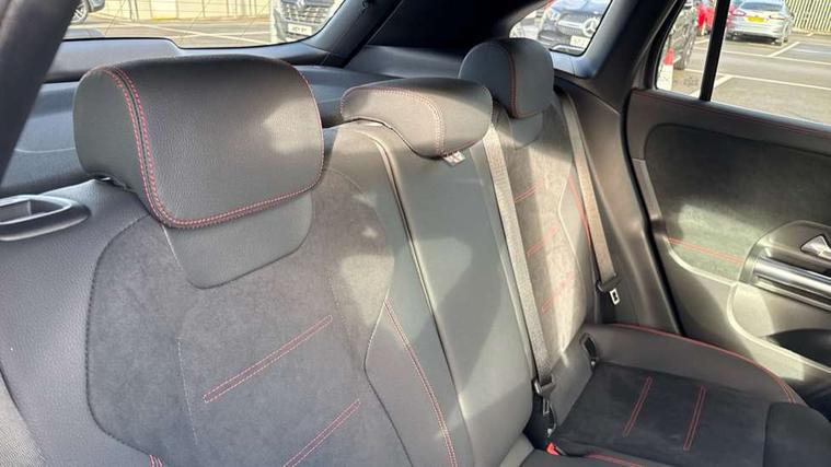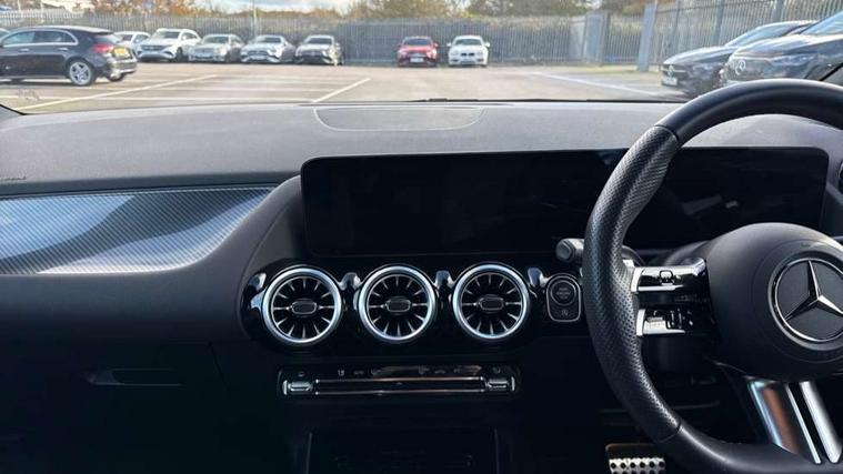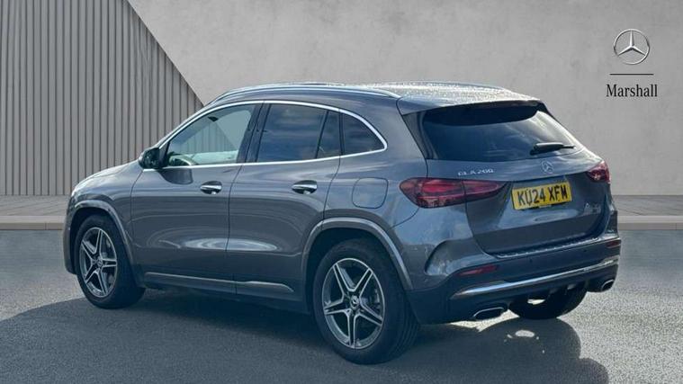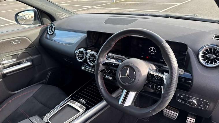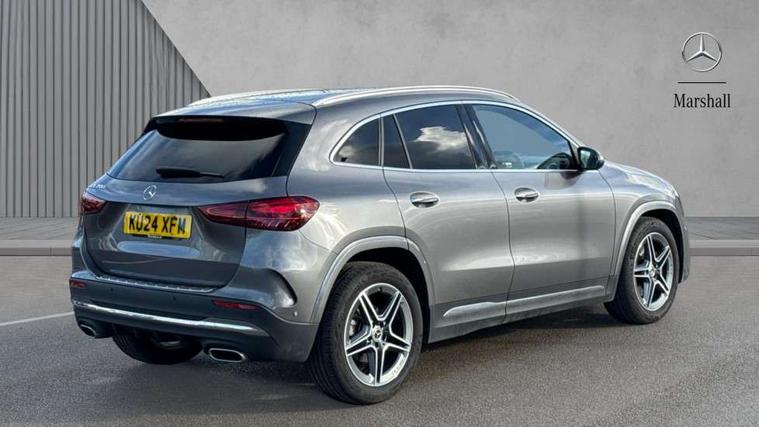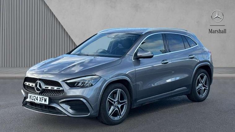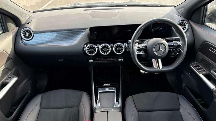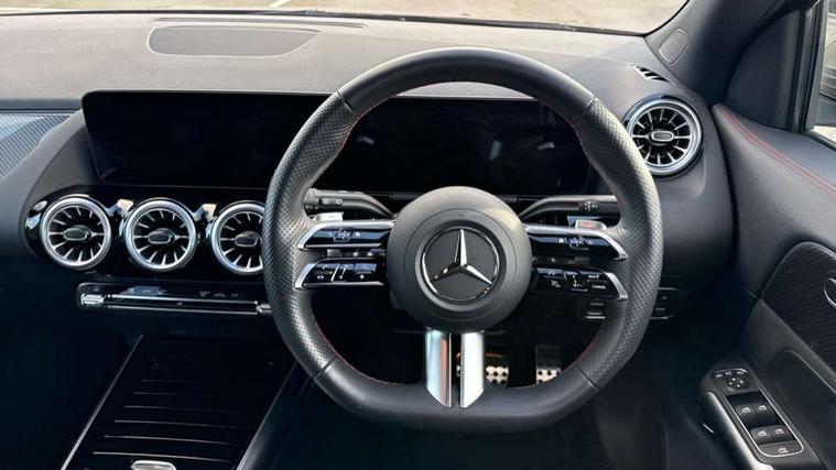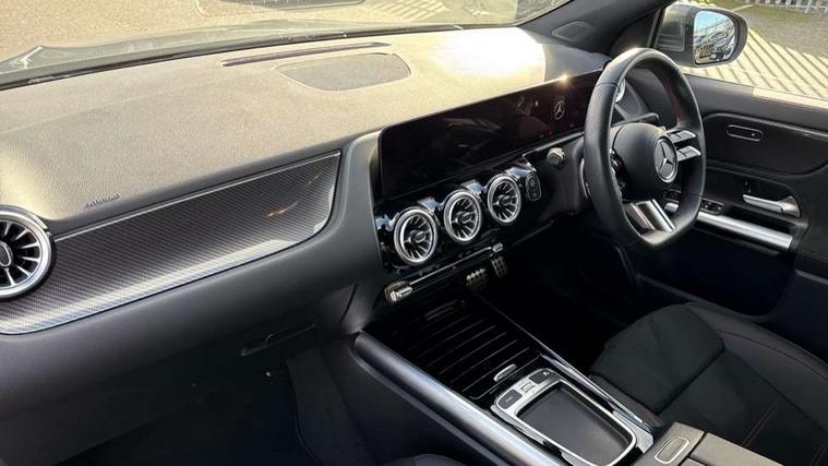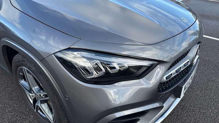 10.25 inch touchscreen central media display, 10.25" Digital instrument cluster display screen, Attention assist, Direct steering, DYNAMIC SELECT with a choice of driving modes (ECO, Comfort, Sport and Individual), ECO start/stop function, Fluid level warning indicator for fuel, oil, coolant and washer fluid, Hard-disk navigation, Hey Mercedes Voice activation, Lamp failure indicator, Lane keeping assist (LKA), Mercedes me connect including emergency call system, accident recovery, breakdown management and maintenance, Mercedes me remote services, Multi function trip computer, Outside temperature gauge, Owners manual and service booklet in English, Pre-installation of private car share, Radio aerial integrated into front and rear windshields, Service indicator (ASSYST), Smartphone integration with Apple CarPlay and Android auto, Speed limit assist, Status display for rear seat belts in instrument cluster, Tailgate, Wireless charging, Lowered comfort suspension, Rear axle multi-link, Bluetooth connectivity including audio streaming, DAB Digital radio, MBUX multimedia system, Media interface, Mercedes Benz sound system (100 W) with 6 speakers, Pre installation for Mercedes Benz Link, Adaptive brake lights, Adaptive highbeam assist, Aerial for GPS, Aluminium roof rails, AMG front apron with front splitter in the colour of the vehicle with chrome trim element, AMG rear apron with visible tailpipe trim and chrome trim element, AMG specific/dual flow exhaust pipes in chrome (non-functional), Automatic headlamp activation, Beltline trim and window line trim strip in high gloss aluminium, Black grained side sill trim with chrome inlay, Body coloured door handles with chrome insert for keyless entry, Car wash function, Dark privacy glass from B-pillar backwards, Electric front windows, Electric rear windows, Electrically adjustable and heated door mirrors with integrated LED indicators, Exhaust system with 2 Visible tailpipe trim elements and rear apron with trim in chrome, Heat insulating dark tinted glass, Heated glass rear windscreen + timer control, Heated windscreen wash system, Interior mirror with black reading lamps and frameless, LED high performance headlamps with integrated LED daytime running lights, LED tail lights, LED third brake light, Radiator diamond grille with chrome pins and central Mercedes star, single louvre in matt grey with chrome inserts and black highlights, Rain sensor windscreen wipers, Rear fog lights, Rear side wing doors, Rear wiper, Roof spoiler, Wheel arch liners in the colour of the vehicle, 12V power socket in centre console, 3 seat bench in 2nd row, 3 spoke flat bottom multifunction nappa leather steering wheel, 4 way lumbar support, 40:20:40 split folding rear seats with backrest, Adjustable head restraints, Air conditioning - air vents with silver chrome surround, Air conditioning - One zone thermatic automatic climate control with automatically controlled air distribution, AMG floor mats, Auto Mercedes-Benz child seat recognition sensor, Black roof lining, Courtesy light in boot, Fluorescent jacket, Front centre armrest with stowage, Galvanished gear shift paddles on steering wheel in silver chrome, Heated front seats, Illuminated glovebox, Interior lighting - 64 colour Ambient lighting, Luggage net on driver/front passenger seat backrest, Manually height and reach adjustable steering column, Single front passenger seat, Sports pedals in brushed stainless steel with black rubber studs, Sports seats, Sports steering wheel, Stowage compartment in centre console, Stowage compartment with retractable cover, Sunvisors with illuminated vanity mirrors, Twin front cup holders, Two outer rear seat isofix and top tether child seat fixing points, Comfort seat pack - GLA Class, Interior lighting with light and sight pack - GLA, Keyless go comfort package - GLA, Mirror pack - GLA Class, Parking package with reversing camera - GLA, USB package plus - GLA, 3 rear 3 point seatbelts, ABS with Brake Assist, Active bonnet pedestrain safety measure which detects an impact and raises bonnet by 65mm, Active brake assist includes forward collision warning system with autonomous braking, Adaptive brake assist with hold function and hill start assist, Black seatbelts, Bonnet with power domes, Brake pad wear warning indicator, Childproof locks manually operated for rear doors and electrically operated for rear power windows, Crash responsive emergency lighting, Driver and passenger head and side airbags, Drivers knee airbag, Dual stage driver/passenger airbags, Electronic parking brake, ESP curve dynamic assist, ESP with ASR, Front and rear seatbelt reminder, Front brake callipers with Mercedes Benz logo lettering on front, Front passenger seat occupancy sensor, Internally ventilated brakes with perforated brake discs at the front, Sports braking system, Tyre pressure monitoring system, Warning triangle and first aid kit, Window airbags, Alarm system with immobiliser and interior protection -Thatcham category 1, Guard 360 degree vehicle protection, Keyless Go starting function, Remote central locking and crash sensor with emergency opening function, Vehicle key with decorative surround in chrome, Carbon structure trim, 19" AMG 5 twin spoke light alloy wheels aerodynamically optimised and painted in tantalite grey with a high-sheen finish RTF, Summer tyres, Tirefit tyre sealant kit,