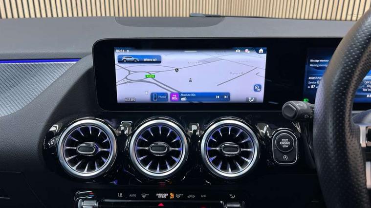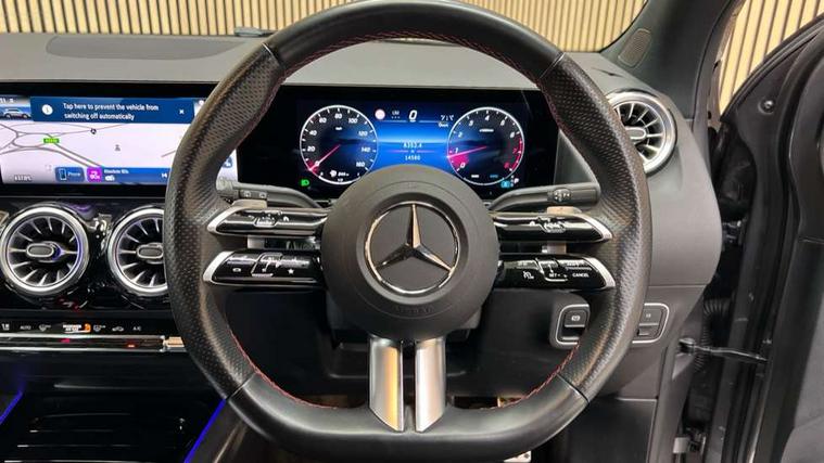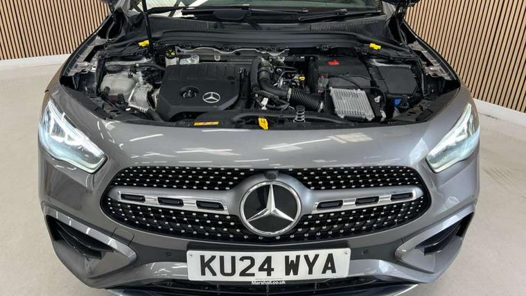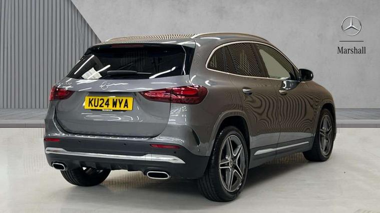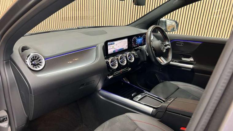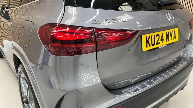10.25 inch touchscreen central media display, 10.25" Digital instrument cluster display screen, Attention assist, Direct steering, DYNAMIC SELECT with a choice of driving modes (ECO, Comfort, Sport and Individual), ECO start/stop function, Fluid level warning indicator for fuel, oil, coolant and washer fluid, Hard-disk navigation, Hey Mercedes Voice activation, Lamp failure indicator, Lane keeping assist (LKA), Mercedes me connect including emergency call system, accident recovery, breakdown management and maintenance, Mercedes me remote services, Multi function trip computer, Outside temperature gauge, Owners manual and service booklet in English, Pre-installation of private car share, Radio aerial integrated into front and rear windshields, Service indicator (ASSYST), Smartphone integration with Apple CarPlay and Android auto, Speed limit assist, Status display for rear seat belts in instrument cluster, Tailgate, Wireless charging, Lowered comfort suspension, Rear axle multi-link, Bluetooth connectivity including audio streaming, DAB Digital radio, MBUX multimedia system, Media interface, Mercedes Benz sound system (100 W) with 6 speakers, Pre installation for Mercedes Benz Link, Adaptive brake lights, Adaptive highbeam assist, Aerial for GPS, Aluminium roof rails, AMG front apron with front splitter in the colour of the vehicle with chrome trim element, AMG rear apron with visible tailpipe trim and chrome trim element, AMG specific/dual flow exhaust pipes in chrome (non-functional), Automatic headlamp activation, Beltline trim and window line trim strip in high gloss aluminium, Black grained side sill trim with chrome inlay, Body coloured door handles with chrome insert for keyless entry, Car wash function, Dark privacy glass from B-pillar backwards, Electric front windows, Electric rear windows, Electrically adjustable and heated door mirrors with integrated LED indicators, Exhaust system with 2 Visible tailpipe trim elements and rear apron with trim in chrome, Heat insulating dark tinted glass, Heated glass rear windscreen + timer control, Heated windscreen wash system, Interior mirror with black reading lamps and frameless, LED high performance headlamps with integrated LED daytime running lights, LED tail lights, LED third brake light, Radiator diamond grille with chrome pins and central Mercedes star, single louvre in matt grey with chrome inserts and black highlights, Rain sensor windscreen wipers, Rear fog lights, Rear side wing doors, Rear wiper, Roof spoiler, Wheel arch liners in the colour of the vehicle, 12V power socket in centre console, 3 seat bench in 2nd row, 3 spoke flat bottom multifunction nappa leather steering wheel, 4 way lumbar support, 40:20:40 split folding rear seats with backrest, Adjustable head restraints, Air conditioning - air vents with silver chrome surround, Air conditioning - One zone thermatic automatic climate control with automatically controlled air distribution, AMG floor mats, Auto Mercedes-Benz child seat recognition sensor, Black roof lining, Courtesy light in boot, Fluorescent jacket, Front centre armrest with stowage, Galvanished gear shift paddles on steering wheel in silver chrome, Heated front seats, Illuminated glovebox, Interior lighting - 64 colour Ambient lighting, Luggage net on driver/front passenger seat backrest, Manually height and reach adjustable steering column, Single front passenger seat, Sports pedals in brushed stainless steel with black rubber studs, Sports seats, Sports steering wheel, Stowage compartment in centre console, Stowage compartment with retractable cover, Sunvisors with illuminated vanity mirrors, Twin front cup holders, Two outer rear seat isofix and top tether child seat fixing points, Comfort seat pack - GLA Class, Interior lighting with light and sight pack - GLA, Keyless go comfort package - GLA, Mirror pack - GLA Class, Parking package with reversing camera - GLA, USB package plus - GLA, 3 rear 3 point seatbelts, ABS with Brake Assist, Active bonnet pedestrain safety measure which detects an impact and raises bonnet by 65mm, Active brake assist includes forward collision warning system with autonomous braking, Adaptive brake assist with hold function and hill start assist, Black seatbelts, Bonnet with power domes, Brake pad wear warning indicator, Childproof locks manually operated for rear doors and electrically operated for rear power windows, Crash responsive emergency lighting, Driver and passenger head and side airbags, Drivers knee airbag, Dual stage driver/passenger airbags, Electronic parking brake, ESP curve dynamic assist, ESP with ASR, Front and rear seatbelt reminder, Front brake callipers with Mercedes Benz logo lettering on front, Front passenger seat occupancy sensor, Internally ventilated brakes with perforated brake discs at the front, Sports braking system, Tyre pressure monitoring system, Warning triangle and first aid kit, Window airbags, Alarm system with immobiliser and interior protection -Thatcham category 1, Guard 360 degree vehicle protection, Keyless Go starting function, Remote central locking and crash sensor with emergency opening function, Vehicle key with decorative surround in chrome, Carbon structure trim, 19" AMG 5 twin spoke light alloy wheels aerodynamically optimised and painted in tantalite grey with a high-sheen finish RTF, Summer tyres, Tirefit tyre sealant kit,