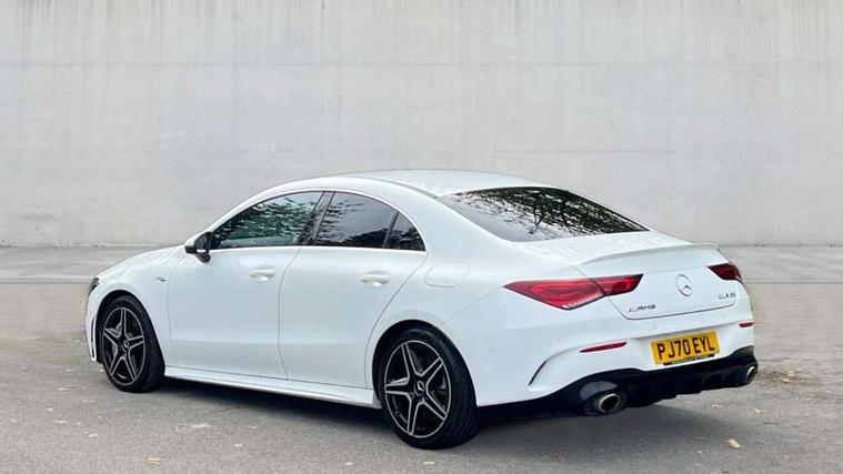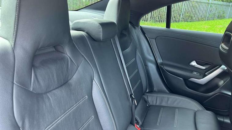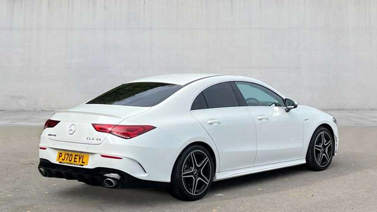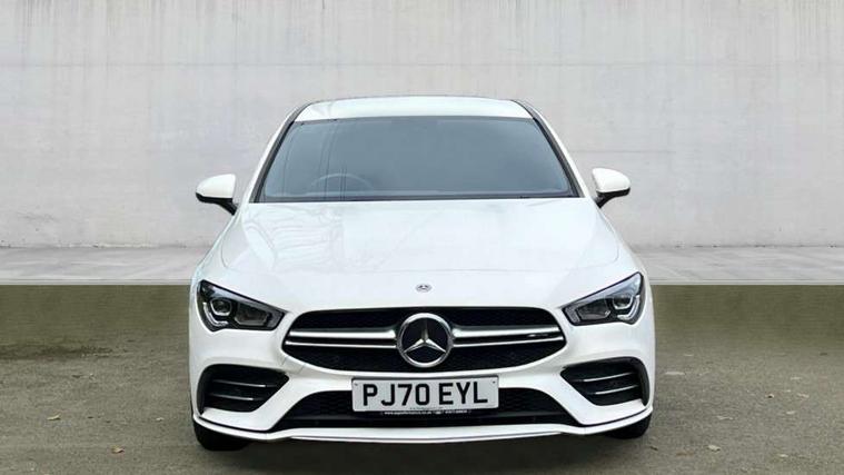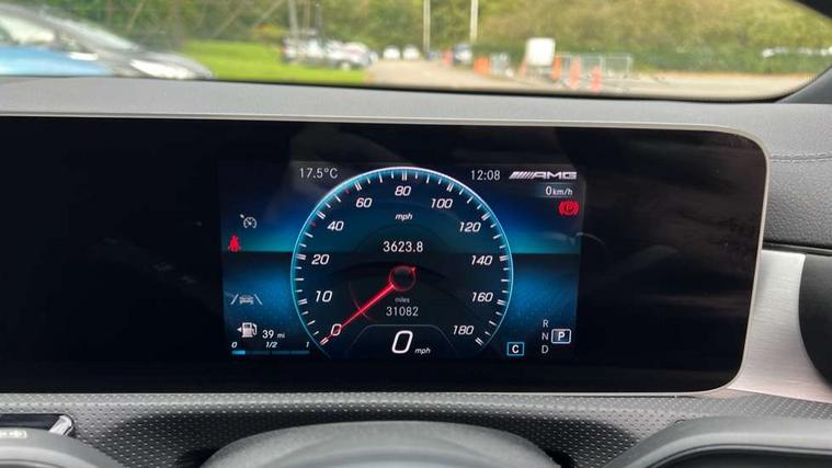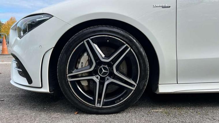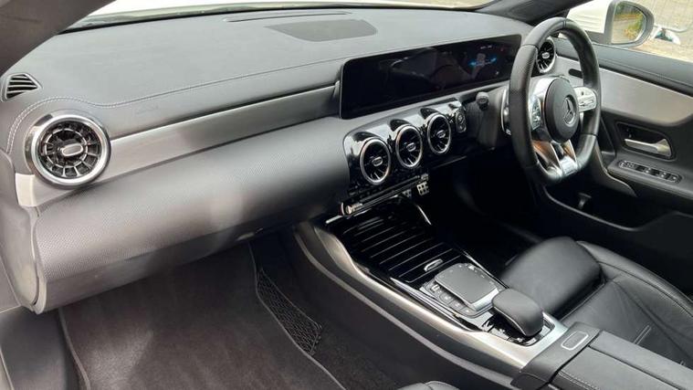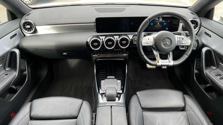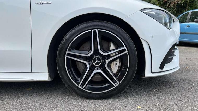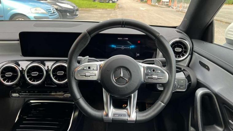 10.25 inch touchscreen central media display, 7 inch Instrument display with digital cockpit, Active lane keeping assist, Attention assist - Monitors steering behaviour and long journey fatigue, Bluetooth connection, Car wash mode, Cruise control with limiter, Digital instrument cluster with three AMG display styles and AMG menu, Direct steer system with speed sensitive power steering, DYNAMIC SELECT with driving programs (Slippery, Comfort, Sport, Sport+ and Individual), ECO start/stop function, Fluid level warning indicator for fuel, oil, coolant and washer fluid, Hard-disk navigation, Hey Mercedes Voice activation, Lamp failure indicator, Mercedes me connect including emergency call system, accident recovery, breakdown management and maintenance, Outside temperature gauge, Owners manual and service booklet in English, Pre-installation for Vehicle Monitoring, Pre-installation for Vehicle Setup, Pre-installation of private car share, Preinstallation for Mercedes Benz link, Radio aerial integrated into front and rear windshields, Service indicator (ASSYST), Smartphone integration with Apple CarPlay and Android auto, Speed limit assist, Trip computer in multifunction display with current consumption indicator, Wireless charging, 7G-DCT 7 speed automatic transmission, AMG suspension, Rear axle multi-link, DAB digital radio tuner, MBUX multimedia system with DAB digital radio and touchpad including satellite navigation, Mercedes Benz sound system (100 W) with 6 speakers, USB (type C) ports (2) in stowage compartment and 1 in front of centre console, Adaptive brake lights, AMG body styling with AMG front apron and rear apron and visible exhaust tailpipe in chrome trim elements, AMG bodystyling side skirts, AMG Front apron with flics as air deflector elements on the outer air intakes, AMG radiator grille with twin blade lamella and AMG Lettering, AMG Rear apron with specific diffuser look with four vertical fins and two round chrome plated tailpipe trim elements with a diameter of 90 mm, AMG Sports exhaust system with two round tailpipes measuring 90 mm in diameter attached in rear apron, AMG lettering plus ribbing on the inside of the, Automatically controlled exhaust flap, Body colour bumpers, Body colour door handles, Chrome beltline strips, Chrome weather strip, Electric windows, Electrically adjustable and heated door mirrors with integrated LED indicators, Front splitter and trim elements on the louvres in the outer air inlets in silver chrome, Front wings with TURBO 4MATIC lettering, Headlamp assist automatic headlamp activation, Heated glass rear windscreen + timer control, High level LED third brake light, Interior mirror with black reading lamps and frameless, LED high performance headlamps with integrated LED daytime running lights, LED tail lamp, Privacy glass with dark tinting on rear side windows and rear window, Rain sensing windscreen wipers with two sensitivity settings, Rear fog lamp, Window line trim strip in chrome, 40:20:40 split folding rear seats with backrest, Air conditioning - Two zone thermotronic luxury automatic climate control with display, Air vents with surround in silver chrome, AMG Performance steering wheel in nappa leather, Automatic child seat recognition sensor, Black roof lining, Brushed stainless steel sports pedals with rubber studs, Floor mats with stitched AMG lettering, Front centre armrest with stowage, Front door sills with Mercedes Benz lettering, Heated front seats, Illuminated glove compartment stowage, Luggage net on driver/front passenger seat backrest, Manually adjustable front seats, Manually height and reach adjustable steering column, Rear head restraints, Silver coloured aluminium gear shift paddles on steering wheel, Sport seats with fixed head restraints, Stowage compartment in centre console with retractable cover, Sunvisors with illuminated vanity mirrors, Touchpad on center console, Twin front cupholders, Two outer rear seat isofix and top tether child seat fixing points, Light and sight pack - CLA, Mirror pack - CLA, Parking package - CLA, Seat comfort pack - CLA, Active bonnet pedestrain safety measure which detects an impact and raises bonnet by 65mm, Active brake assist includes forward collision warning system with autonomous braking, Adaptive brake assist with hold function and hill start assist, Anti-lock braking system (ABS), Black seat belts, Bonnet with power domes, Brake pad wear warning indicator, Childproof locks manually operated for rear doors and electrically operated for rear power windows, Crash responsive emergency lighting, Driver and front passenger head and sidebags, Driver and front passenger windowbags, Drivers knee airbag, Dual stage driver and front passenger airbags, Electric parking brake, Electronic stability programme with acceleration skid control, ESP curve dynamic assist, Front and rear seatbelt reminder, Front brake calipers with AMG lettering, Front passenger seat occupancy sensor, Perforated front brake discs, Three point rear seat belts, Tyre pressure monitoring system, Warning triangle and first aid kit, Keyless Go starting function, Remote central locking and crash sensor with emergency opening function, Urban guard vehicle protection system with immobiliser and interior protection, Light aluminium with longitudinal grain interior trim, 18" 5 twin spoke bi-colour alloy wheels, Summer tyres, Tirefit tyre sealant kit, Wheel arches wider for AMG wheels,