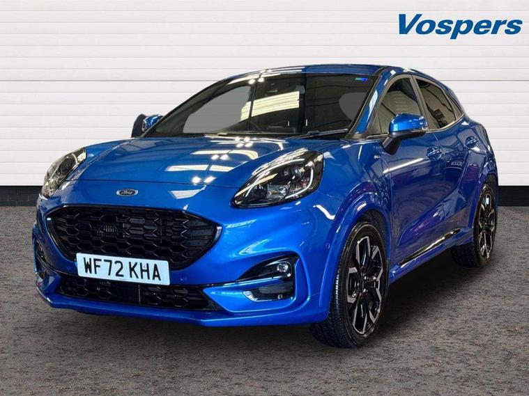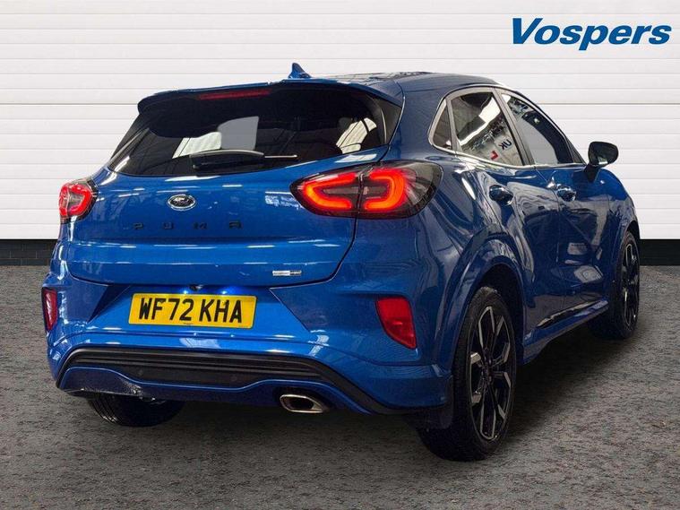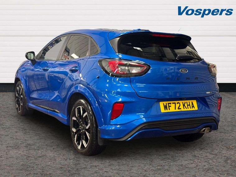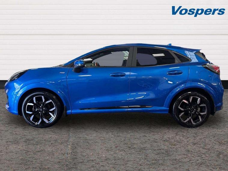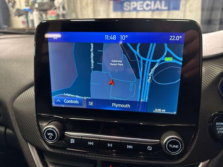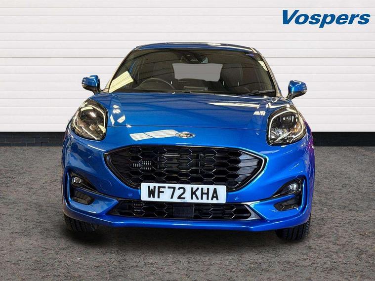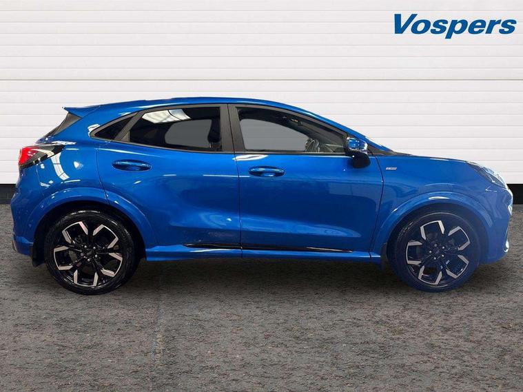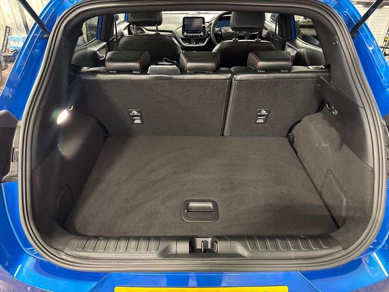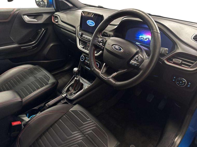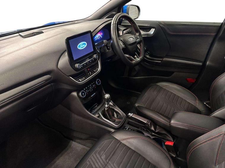 Driver impairment monitor, Emergency call service, Ford easy fuel, Full digital 12.3" instrument cluster, Lane keeping aid with lane departure warning, Power assist steering, Power start button, Rear parking sensor, Selectable drive modes(Normal, sport, Eco, trail, slippery), Speed sign recognition, Sport suspension, Automatic headlights with auto high beam, Automatic rain sensing wipers, Front fog lamps, LED daytime running lights, LED rear lamps, Power foldable heated door mirrors with puddle lamps, Privacy glass to side rear windows and tailgate glass, Quickclear heated windscreen, Rear side wing doors, Rear wiper, ST-Line body styling kit with unique grille and large body colour rear spoiler, Third brake light, 3 seat bench in 2nd row, Centre console with armrest and stowage, Ford megabox extended bootspace, Front and rear head restraints, Front floor mats, Manual 4 way driver seat adjust with lumbar adjustment, Manual 4 way passenger seat with lumbar seat adjustment, Sensico partial premium upholstery, Single front passenger seat, ST-Line flat bottomed sensico leather steering wheel with leather handbrake and aluminium gear knob, Wireless charging pad with electronic air temperature control (EATC), B&O Premium Audio system + Ford SYNC 3 navigation pack - Puma, 3 rear seatbelts, Child safety lock, Electronic stability control (ESC) and hill start assist, Pedestrian/cyclist detection & post-collision braking, Pre collision assist system, Tyre pressure monitoring system (TPMS), Thatcham alarm, Carbon look interior deco spears,