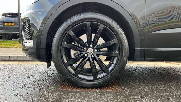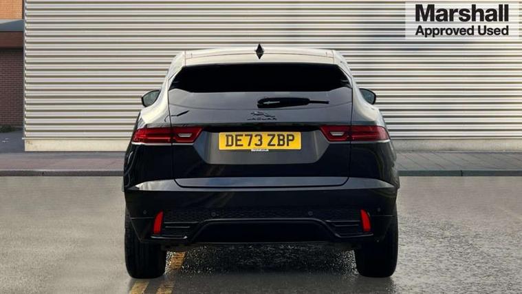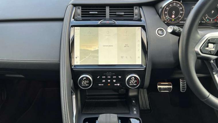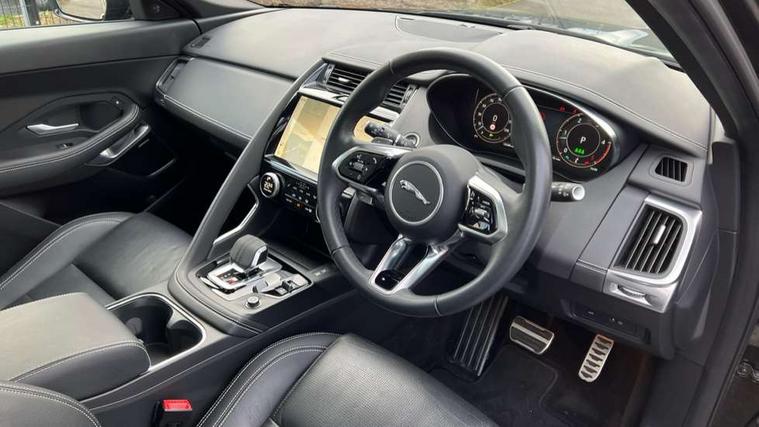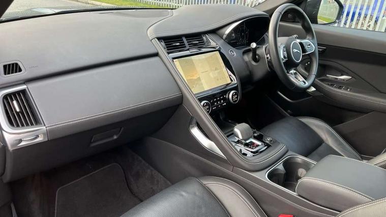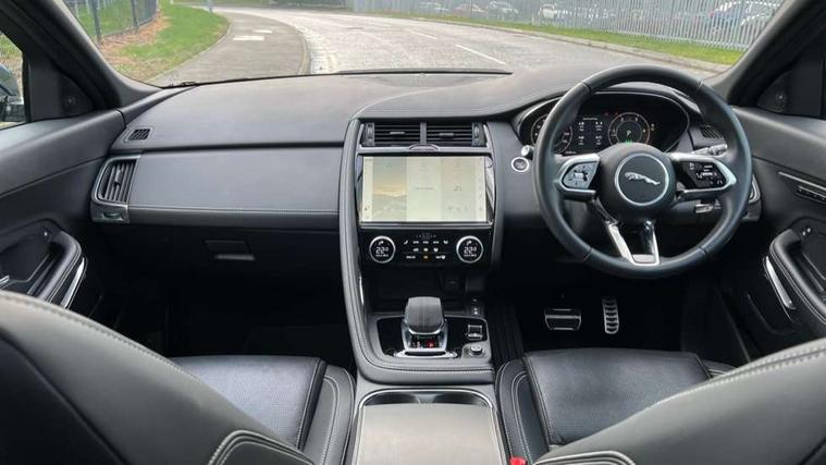 11.4" touchscreen with central ICP, Adaptive cruise control, Android Auto, Apple car play, Blind spot assist, Driver condition monitor, Eco driving style assistant, Electric power assisted steering, Emergency services call system, Front and rear parking aid, InControl remote, Interactive driver display, Jaguar drive control with adaptive surface response, Jaguar Toggle sport shift selector, Lane keep assist, Outside temperature gauge, Pivi pro connected infotainment system with smart settings and navigation pro, Push button start, Rear collision monitor, Rear traffic monitor, Speed proportional steering, Traffic sign recognition with adaptive speed limiter, Trip computer, Voice control system, Configurable dynamics, Diesel particulate filter, Efficient Driveline, Large fuel tank, Passive suspension, Bluetooth connectivity including audio streaming, DAB digital audio broadcast, Dynamic volume control, 3 flash lane change indicators, Approach Illumination, Automatic headlights, Body colour door handles, Body colour front and rear lower bumper main moulding and lower side cladding, Body colour upper spoiler, Body coloured side sills, Centre high-mounted stop light, Dark satin grille tips, Electric front/rear windows with one touch/auto up/down, Electric heated/power fold memory door mirrors with approach lights and auto dimming driver side, Fixed panoramic glass sunroof, Heated washer jets, Heated windscreen, Jaguar script and leaper, Leaper for duo leather and embossed leaper for windsor leather, LED tail lights, LED third brake light, Metal load space scuff plates, Narvik black antenna pod and side pillar finisher, R Dynamic badge, R Dynamic body colour bumpers, Rain sensor windscreen wipers, Rear fog lights, Rear side wing doors, Rear wash wiper, Satin black grained front outer grille, low grill mesh and low bumper valence, side fender vent mesh and finisher, rear tow eye cover and grille mesh, Twin exhaust tailpipe, Variable front intermittent wipers, 3 rear head restraints, 3 seat bench in 2nd row, 40:20:40 rear seat fold, Bright metal pedals, Carpet mats, Centre console with armrest, Enhanced ambient lighting, Hooks loadspace, ISOFIX on outer rear seats, Leather steering wheel, Loadspace cover, Loadspace light, Loadspace storage net, Luggage tie-downs in loadspace, Manual height/reach adjust steering wheel, Multifunction steering wheel, Overhead lighting console, Passive front head restraints, Power sockets, Rear air vents, Rear bench seats, Satin chrome gearshift paddles, Single front passenger seat, Sunvisors with illuminated vanity mirrors, Twin front cupholders, Two zone climate control, Online pack with data plan - E-Pace, 3x3 point rear seatbelts, ABS, All surface progress control (ASPC), Child locks on rear doors, Customer configurable autolock, DSC - Dynamic Stability Control, Electronic brake force distribution, Electronic parking brake, Emergency brake assist, Emergency braking, Front airbags with passenger seat occupant detector, Front and rear curtain airbags, Front and rear seatbelt reminder, Front passenger airbag deactivation, Front seatbelt pretensioners, Front side airbags, Height adjustable front seatbelts, Hill start assist, Low friction launch, Power child locks, Torque vectoring brake, Tyre pressure monitoring system, Intrusion sensor and alarm, Keyless entry, Locking wheel nuts, Remote central locking,