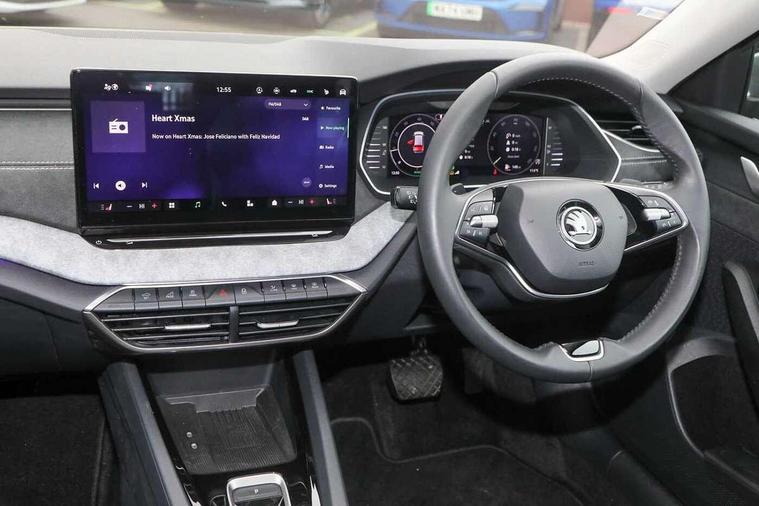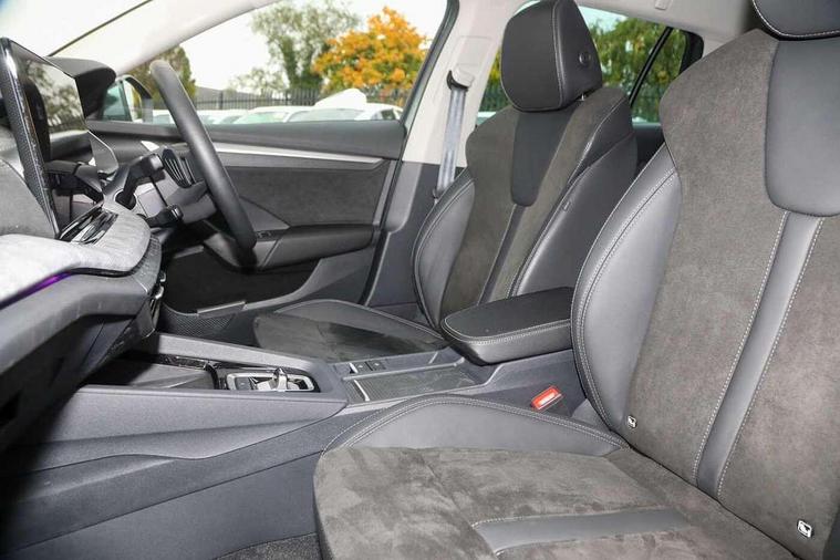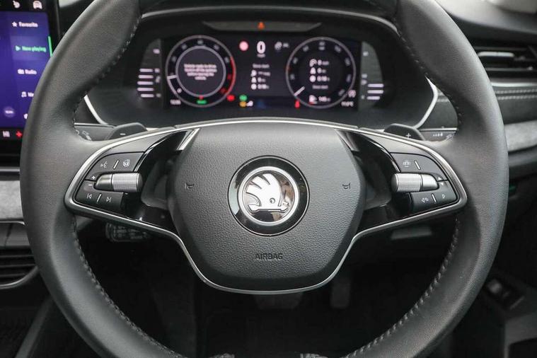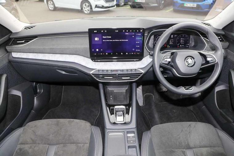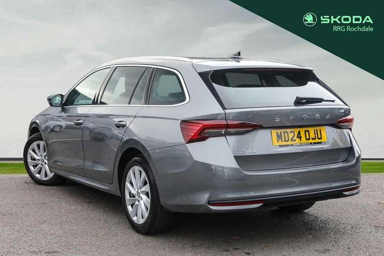 1x USB Typc C port in rear view mirror, 4x USB Type C ports - 2x in front centre console and 2x in rear (45W), Drive mode selection, Driver fatigue sensor, eCall emergency system, Electro-mechanical power steering, Front and rear parking sensors with manoeuvre assist, Front assist system, Traffic jam assist, Traffic sign recognition, Turn Assist, Virtual Cockpit - 10.25" digital display, Voice control system, Wireless charging (15W) with cooling function, Wireless SmartLink for Apple CarPlay and Android Auto, 13" touchscreen display with navigation, 8 speakers, DAB Digital radio, Aero front windscreen wipers with intermittent function, Auto dimming rear view mirror, Body colour bumpers, Body colour door mirrors and handles, Chrome grille surround, Chrome roof rails, Chrome strip in lower front bumper, Chrome window surrounds, Driver side auto-dimming door mirrors, Electric front and rear windows, Heated rear windscreen, High level third brake light, Ice scraper in fuel cap, LED daytime running lights, Logo projection in front doors, Preparation for tow bar, Rain and light sensors, Rear fog light on one side, Rear privacy glass, Rear side wing doors, Rear spoiler, Rear window wiper, Sunblinds for rear side windows, 12 volt socket in boot, 3 rear headrests, 3 seat bench in 2nd row, 4 foldable roof handles, Dual zone air conditioning, Front head restraints, Heated front seats, Illuminated glovebox, Interior door handles in dark chrome, Jumbo Box storage, Luggage compartment lighting x2 lights, Mechanical rear seat release from boot, Single front passenger seat, Steering wheel in black leather with black stitching, Storage compartments in left and right of boot, Sun visors with mirrors, Sunglasses storage, Ticket holder, Umbrella in door panel, Unsplit rear bench seat, split folding backrest with centre armrest with cupholder, Waste bin in door panel, Assisted drive package - Octavia DSG, Comfort package - Octavia Estate, Family package - Octavia, Light and view package plus - Octavia, Lounge Design Selection pack - Octavia, Simply clever package premium - Octavia, Winter package plus - Octavia DSG, 3x3 point rear seat belts, Alarm with interior monitoring, tilt sensor and back up horn, Curtain airbags and front side airbags, Driver and front passenger airbags, Drivers knee airbag, Electronic parking brake, ESC including ABS, EBV, MSR, ASR, EDS, HBA, DSR, Front central airbag, Hill hold assist, ISOFIX on front passenger seat and outer rear seats, Passenger airbag deactivate switch, Three point seat belts in front and rear, Two tone horn, Tyre pressure monitor, Visual and acoustic seat belt reminder, Warning reflectors in front door, Anti-theft wheel bolts, Keyless start/stop, Remote central locking, Chrome air vent surrounds, 17" Mensa aero alloy wheels, Tyre repair kit,