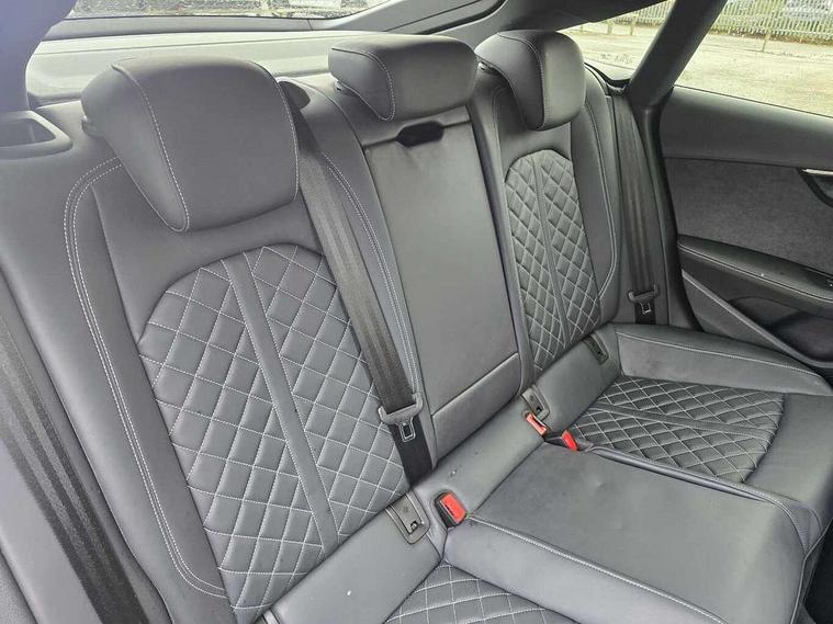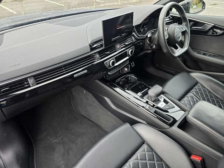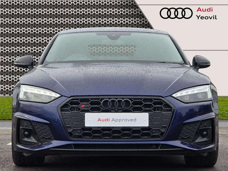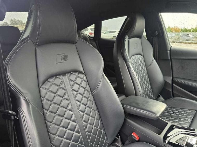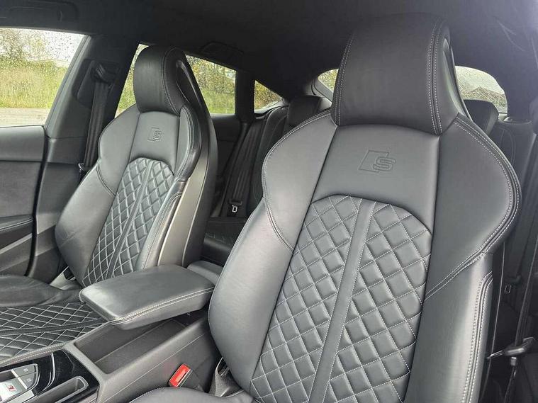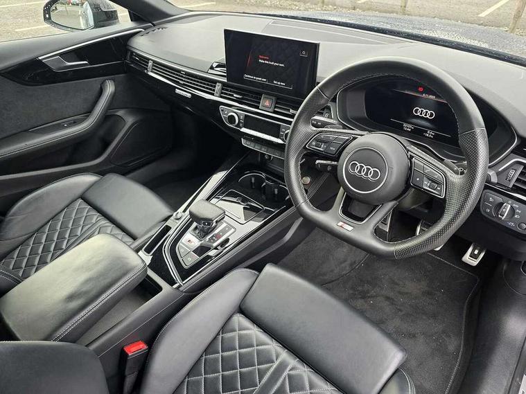Audi connect safety and service (e-call), Audi connect with Amazon Alexa Integration, Audi drive select (Auto, Comfort, Dynamic, Efficiency and Individual), Audi parking system plus with front and rear sensors, Audi smartphone interface, Audi virtual cockpit - 12.3" full colour digital instrument cluster, vehicle/engine speed, Radio/media information+Driver assistance systems, Automatic start-stop system with coasting functionality and efficiency programme, Bluetooth interface, Electro-mechanical power steering, Email, calendar and text messages displayed via MMI, MMI nav+ with MMI touch - 10.1" high resolution MMI display, touch sensitive, 3D map, route/country info, dynamic route guide, personal route assist, Power operated tailgate, Rear view camera, S instrument dials, Service interval indicator, Voice control system, Diesel particulate filter, S sports suspension, Audi sound system with 10 loudspeakers, CD player, DAB digital radio reception, Two additional USB ports for rear passenger in rear centre console, Two SDXC card slots, Audi Beam uses LEDs to project the Audi logo, Audi matrix LED headlights with LED rear lights + dynamic front and rear indicators, Auto dimming rear view mirror, Black door mirror housings, Body colour door handles, Body colour front spoiler lip, Body colour side sill trim, Electric adjustable heated door mirrors, Electric folding door mirrors, Electric front windows, Front fog lights, LED daytime running lights, LED third brake light, Privacy glass, Rain and light sensors, Rear side wing doors, S model rear spoiler in black, S radiator grille in twilight grey matt with dual struts in aluminium and S5 logo, S rear diffuser in twilight grey matt and honeycomb grille in black, S specific dual branch chrome tailpipes with twin oval pipes on left and right, S specific side air inlets in titan black with chrome inlays in unique S design, Sport front and rear bumpers with side skirts, Variable front intermittent wipers, Windscreen with acoustic glazing, 3 Spoke flat bottom high multi-function leather steering wheel with shift paddles, 40/20/40 split folding 3 seater rear bench seat, Adjustable steering column, Black cloth headlining, Black leather gear lever knob, Contrast stitching on seats, steering wheel and gear lever gaiter, Deluxe 3 zone electronic climate control, Electrically adjustable front seats, Fine nappa leather upholstery with S embossed logo + super sports seats, Front centre armrest, Front head restraints, Front/rear floor mats, Gear lever with diamond S badge, Heated front seats, Illuminated door sill trim with S logo, ISOFIX child seat mounting and top tether, Key with S5 logo, Luggage compartment mat, Pneumatically adjustable lumbar support with massage function, Rear headrests, Single front passenger seat, Stainless steel pedals, Sunvisors with vanity mirrors, Tool kit, Black styling pack - A5 Coupe/Sportback, Extended leather pack - A5, LED interior light pack - A5/RS5, 3x3 point rear seatbelts, 6 airbags - Driver, front passenger, curtain and side airbags, Electromechanical parking brake, Electronic Stabilisation Control (ESC) including ABS, ASR and EDL, Front brake calipers painted in black with S5 logo, Front passenger airbag deactivation, Height adjustable front seatbelts, Hill hold assist, Multi collision brake assist, Pop-up bonnet for pedestrian protection, Pre sense city, S model enhanced braking system, Seatbelt monitoring, Tyre pressure warning, Variable restraint system, Warning triangle and first aid kit, Anti theft alarm system, Anti theft wheel bolts, Immobiliser, Keyless Go, Remote central locking, 20" 5 twin spoke polygon design alloy wheels in gloss anthracite black and gloss turned finish, Tyre repair kit,