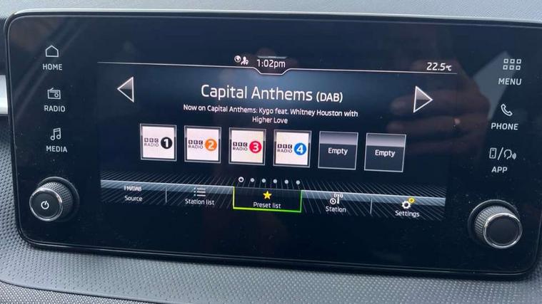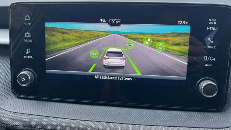 Advanced driver attention and drowsiness monitor, Bluetooth connection, Electromechanical power steering, Exterior temperature gauge, Rear parking sensors, Service interval indicator, Traffic sign recognition, Virtual cockpit with 10.25" colour display, Wireless SmartLink for Apple CarPlay and Android Auto, 6 Speakers (4 in front and 2 in rear), Auxiliary socket for external MP3 player, DAB digital radio reception, Body coloured bumpers, Dimming rear view mirror with black frame, Door mirror integrated indicators, Front and rear electric windows, Front window wiper intermittent control, Headlight range control - Automatic, Ice scraper in fuel cap, LED daytime running lights with coming and leaving home feature, LED rear lights, Privacy glass, Rear LED fog light, Rear side wing doors, Rear window wiper with washing nozzles, Roof mounted spoiler, SKODA tailgate lettering in chrome, Third brake light, 2 reading lights in front and 2 reading lights in rear, 3 rear headrests, Backrest split and folding, Central console with removable cup holder and storage box, Chrome handbrake release button, Fabric upholstery, Front centre armrest, Gearshift knob/handle in leather, Grain satin black interior door handles, Hand brake lever handle in leather, Height adjustable front headrests, Height adjustable front seats, Height adjustable steering wheel, ISOFIX and TopTether anchorage points to the outer rear seats, ISOFIX and TopTether on the front passenger seat, Luggage compartment lighting, Manually adjustable lumbar support in front seats, Pollen filter, Rear seat bench unsplit, Single front passenger seat, Storm grey headlining, Sun visors with mirror and airbag label on passenger side, Textile floor mats, Ticket holder, Umbrella in drivers door, 3-point height adjustable front seats belts with pretensioner and force limiter, Automatic warning lights in case of crash, Driver and passengers airbag with switch off function, e-Call+, ESC including ABS, MSR, ASR, EDS, HBA and XDS, Front and rear seat belt warning, FRONT ASSIST (AEB City and AEB Inter Urban), Front side airbags, Head airbags, One tone horn, Pedestrian protection, Three rear 3-points safety seat belts with pretensioner and force limiter including stop function for outer rear seat belts, Tyre pressure monitoring system, Anti-theft alarm system including immobiliser, interior monitoring, backup horn, and towing protection, Central locking with radio remote control, interior controls, SAFE function and 2 foldable keys, KESSY - Keyless engine start/stop, Colour Edition air vents, Grain satin black central console cover, Metallic grey upper decorative trim, Satin black door and side trim panel in front, Textile Kota grey lower decorative inserts, Anti-theft wheel bolts protection, Super-low rolling resistance tyres,
