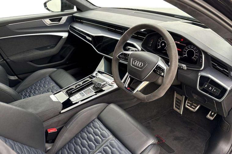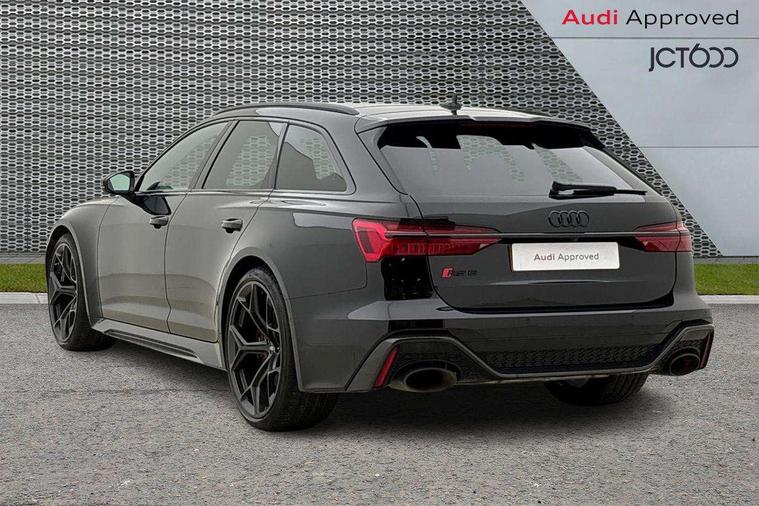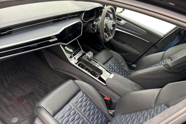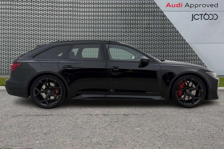 Audi connect safety and service (e-call), Audi connect with Amazon Alexa Integration, Audi drive select with 2 configurable RS modes, Audi smartphone interface with app store includes wireless Apple carplay, Android auto and Amazon alexa integration, Audi virtual cockpit plus with RS specific design and 12.3" display with additional graphic display options, Automatic start/stop system, Bluetooth interface, Dynamic all wheel steering, Head up Display, Lane departure warning system, MMI navigation with MMI touch + twin touch screens 10.1" and 8.6" with haptic and acoustic feedback, Night vision assistant, Operating buttons in black, glass look with haptic feedback including extended aluminium look, Power door closure, Power operated tailgate, Service interval indicator, Surround view camera system, Voice control system, 48V Mild hybrid technology, 73 litre fuel tank, Increased top speed to 174mph, Quattro sports differential, RS Sports suspension plus with dynamic ride control, 2 USB-C ports with charging functionality in the rear, Audi music interface, Bang & Olufsen 3D Premium Sound System, DAB Digital radio, 3rd brake light, Adaptive windscreen wipers with integrated washer jets, Black window trims, Electric front/rear windows, Electrically adjustable, heated and folding door mirrors with integrated LED indicators and kerb view function for passenger side, Frameless auto dimming interior rear view mirror, HD Matrix LED headlights with Audi laser light with dynamic light design and dynamic turn signal, Headlight washers, Heat insulating darkened glass in side and rear windows, LED daytime running lights, LED rear combination lamps with dynamic light design and dynamic turn signal, Panoramic glass sunroof, Privacy glass with rear/side windows and acoustic glazing side windows, Radiator grille in honeycomb structure, large front air inlets and rear diffuser in gloss black, Rain and light sensors, Rear side wing doors, Rear wiper, RS front bumper with air inlets on both side, RS rear spoiler in body colour, RS sports exhaust system with high gloss black oval tailpipe trims, 3 seat bench in 2nd row, 4 way electric lumbar support for driver and front passenger, 4 zone deluxe automatic climate control, Audi phone box light, Electric steering wheel adjustment, Electrically adjustable front seats with driver memory, Entry LED with RS Performance projection (Audi Beam) in front and rear, Front and rear headrests, Front centre armrest, Front seat ventilation, Heated front and rear seats, Illuminated front and rear door sill trims with aluminium inlays and RS6 logo, ISOFIX and Top Tether child seat mounting for the outer rear seats, ISOFIX child seat mounting and Top Tether with front passenger airbag deactivation, RS sports seat plus, Single passenger seat, Stainless steel pedals and foot rest, Valcona leather upholstery with perforated honeycomb and coloured RS logo, Air quality pack - RS6, Ambient lighting pack plus - RS6, City assist pack - RS6 Performance/carbon/vorsprung, Park assist pack with park assist plus - RS6, Storage pack - RS6, Tour pack - RS6 Performance/carbon/vorsprung, 3 point rear seatbelts, Airbags - Front side, front and rear including head, Direct tyre pressure monitoring system, EBD - Electronic brakeforce distribution, Electromechanical parking brake, Electronic Stability Control (ESC) including ABS, ASR and EDL, Extended pedestrian protection measures, Manual child lock in rear doors, Rear side airbags, Warning triangle and first aid kit, Anti theft alarm with tow away protection, Immobiliser, Keyless Go, Remote central locking, Performance tyres, Tyre repair kit,