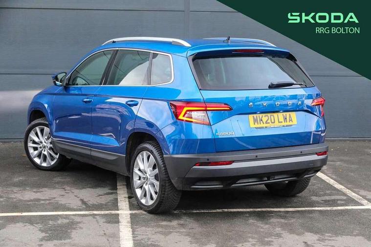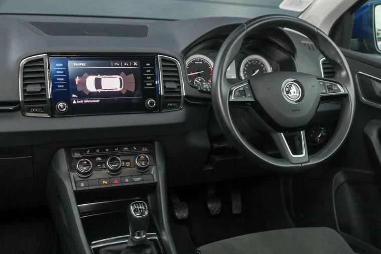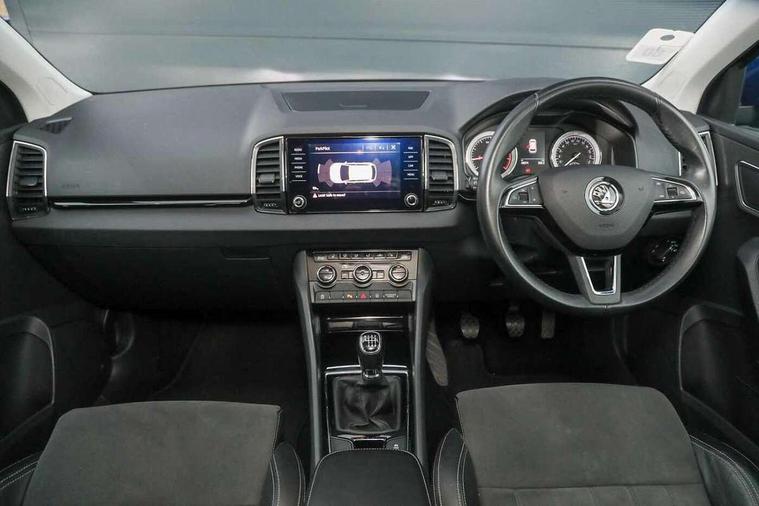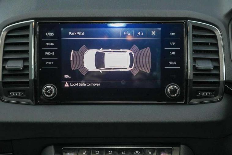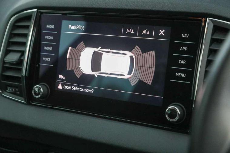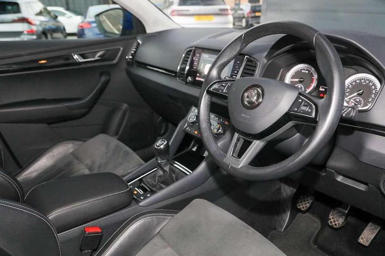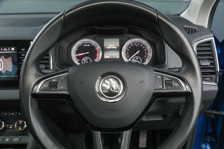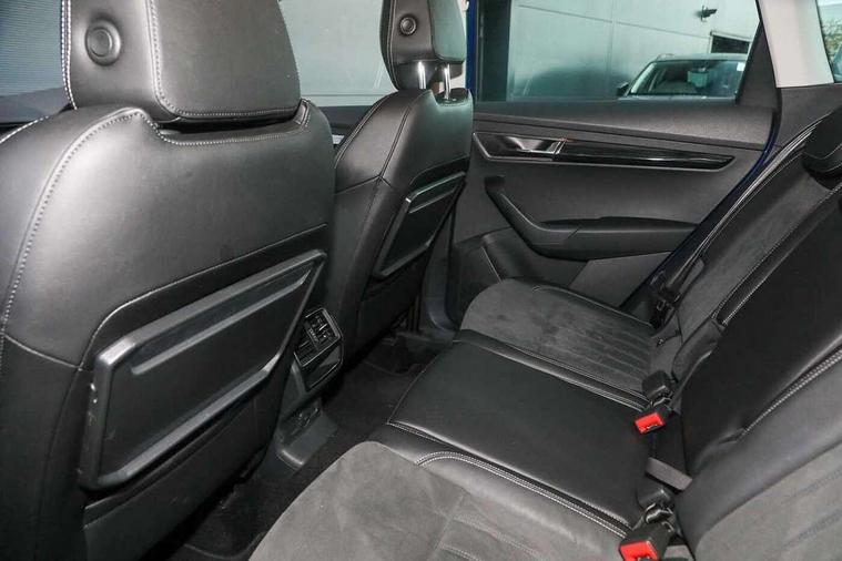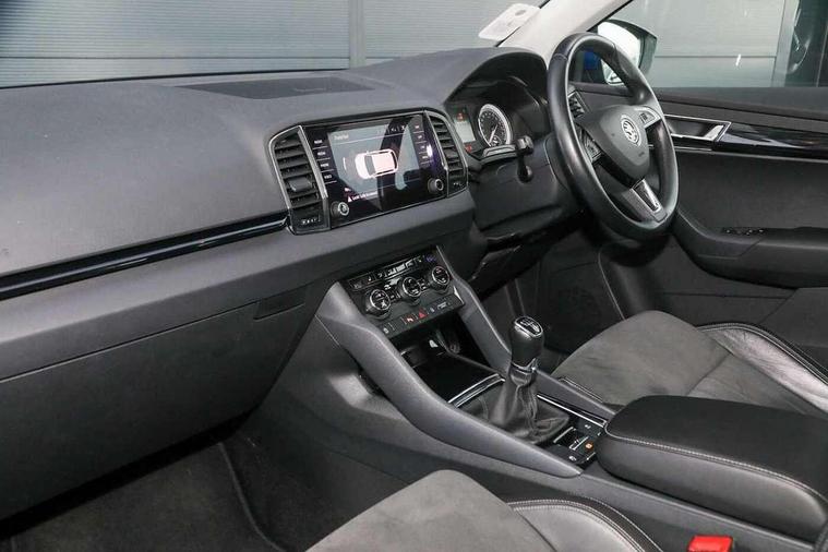 Drive mode selector, Driver alert system, Driver fatigue sensor, Driver profile selection, Multifunction colour trip computer, Outside temperature gauge, Rear view camera, Service interval indicator, Start/stop system with regenerative braking, DAB radio with Bluetooth, SD card slot, USB connection, Acoustic glass, Aero front windscreen wipers with intermittent function, Automatic headlight control system, Black electric window control buttons, Body colour door mirrors and handles, Body coloured bumpers, Electric front and rear windows with child proof lock, Full LED headlights + adaptive front light system + LED daytime running lights and front cornering fog lights, Headlight washers, Heated rear windscreen, LED rear lights with high functionality, Light assistant (coming/leaving home/tunnel light), Privacy glass, Safety reflectors on front doors, Third brake light, 1.5 litre bottle holders in driver and front passenger door panels, 12V socket in boot, 12v socket in front centre armrest with storage compartment and rear air vents, 2 Folding hooks and nets in boot, 2 Front readings lights for driver and passenger, 3 rear height adjustable headrests, 4 foldable roof handles with rear coat hooks, 4 lashing points on luggage floor, Backrest release, Cargo elements in boot, Chrome inner door handles, Dual zone climate control, Folding tables on the front seat backrests, Front head restraints, Front seat and rear pockets, Height adjustable front three point seats belts with tensioners, Height adjustable passenger seat, Height/reach adjust steering wheel, Ice scraper, Illuminated and cooled glovebox, Illuminated luggage compartment, Isofix child seat preparation outer rear, Net programme in boot, Pen holder, Pollen filter, Rear boot cover, Rear reading lights, Rear seats fixed folding and divided 60:40, Removable LED torch in the boot, Retractable parcel shelf attachable to tailgate, Safety vest holder, Storage box in upper central dashboard closed, Storage compartment below the passenger seat, Sunvisors with illuminated vanity mirrors, Textile floor mats, Umbrella under passenger seat, VarioFlex seats with retractable parcel shelf, Chrome roof rails + chrome pack - Kodiaq, Airbags - Front side, head, knee and curtain, Automatic door unlocking in case of crash, Automatic fuel cut off in case of crash, Driver airbag, Electronic parking brake with auto hold function, Emergency rear braking signal, ESC including ABS, MSR, ASR, EDS, HBA, DSR, RBS, MKB and traction control, Front assist radar scanning of the space in front of the car with automatic braking, Hill hold control, Passenger airbag with switch-off function, Pedestrian monitor, Seatbelt reminder signalisation and pretensioner for all seats, Three point seatbelts rear, Two tone horn, Tyre pressure display, Tyre pressure monitor, Alarm with interior monitoring, back up horn and tilt sensor with safe function, Electronic engine immobiliser, Keyless entry and keyless start with safe system, Remote central locking with 2 remote folding keys, Chrome framed air vents, Storage on wheel cover,