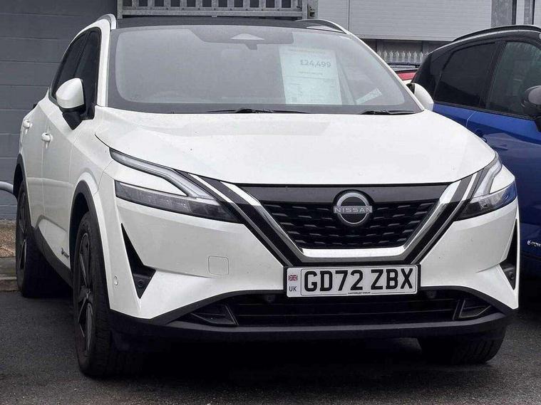 Advanced windscreen head up display, Android auto/Apple CarPlay (Wired), Blind spot warning, Drive modes (sport, normal, eco), Electric speed sensitive power steering, Emergency and breakdown call, Front and rear parking sensors, Full Digital 12.3" TFT Digital Combimeter, Google maps services - search, weather, 3D maps and Google street view, Hands free power tailgate, Idle stop/start system, Intelligent around view monitor, Intelligent Cruise control (ICC), Intelligent driver alert system, Intelligent forward collision warning, Intelligent lane intervention, Lane departure prevention, Lane departure warning system, Lane keep assist, Moving object detection, Nissan connect 12.3 inch touchscreen infotainment system, Nissan connect navigation, ProPILOT with Navi-Link, Push button starter, Rear cross traffic alert, Rear view camera, Remote control services - door locks, lights, horn and car locator, Telematics - notifications and connectivity services, TomTom live traffic services, Traffic sign recognition with legal speed adjustment, Trip computer, Virtual personal assistant and firmware over the air capability, Wireless apple carplay, Wireless charging pad, 6 speakers, AM/FM audio system with DAB, Bluetooth audio streaming, Front USB connections (Type-A and Type-C), Rear USB charging only ports (Type-A and Type-C), Auto dimming rear view mirror, Auto rear wiper when reversing, Automatic hazard signal with emergency stop signal, Body colour mirror caps, Body coloured door handles, Bodyside mouldings, Chrome side window finisher, Door handle with button, e-POWER badging, Electric auto folding door mirrors, Electrically adjustable and heated door mirrors with LED turn indicator, Follow me home headlights, Front and rear LED turning signals, Headlights auto levelling system, Intelligent auto headlights, LED daytime running lights, LED headlights with adaptive driving beam, LED rear lights, One touch front and rear electric windows with remote opening and closing, Partially body coloured bumpers, Privacy glass, Rear bumper with graphite insert, Rear reversing light (bulb lighting), Rear roof spoiler, Rear side wing doors, Rear styling plate, Shark fin antenna, Splash free rain sensing wipers, Super UV and infrared cut glass, Thermaclear heated windscreen, Three blink turn signal, 12v power socket in dashboard and luggage, 2x Rear coat hooks, 3 bench rear seats in 2nd row, 3 rear headrests, 4 folding assist grip, 6 Luggage hooks - 4 on floor, 2 on side, 60/40 split folding rear seat bench, Ambient lighting around centre console, Ambient lighting in front doors, Centre console storage tray, Chrome interior door handles, Cloth/syntech leather monoform upholstery, Dark black/blueish PVC wrapping, Dark headlining, Driver and front passenger sunvisors with illuminated vanity mirrors, Driver seat back pocket, Dual zone automatic climate control with pollen filter, e-POWER shifter, Electrically adjustable driver seat, Electrically adjustable lumbar support for driver, Front and rear door storage, Front centre console and armrest, Front cupholders x 2, Front door with bottle holders, Glovebox with light, Hard trunk cover, Heated front seats, Heated steering wheel, Height adjustable driver's seat, Height adjustable front headrests, Height adjustable passenger seat, Leather steering wheel, Luggage board system, Luggage space lighting, Manual lumbar support on passenger seat, Manually adjustable passenger (slide recline + lifter), Multifunction steering wheel, Passenger seat back pocket, Rear armrest with 2 cupholders, Rear door bottle holders, Single front passenger seat, Soft PVC kneepad, Steering wheel switches, Tilt/telescopic adjustable steering wheel, Two rear isofix child seat anchorage points with top tether, Welcome light and doors with console tray ambient lighting, Glass roof pack with roof rails - Qashqai, 3x3 point rear seatbelt pretensioners + load limiters, ABS with EBD and brake assist, Active brake limited slip, Auto hold function, Child locks on rear doors, Curtain and front side, far side airbags, Driver and passenger airbags, Driver, passenger and 2nd row rear seat belt reminder, Electronic parking brake, Front seatbelt pretensioners + load limiters, Height adjustable front seatbelts, Hill start assist, Intelligent blind spot intervention, Intelligent front emergency braking with pedestrian, cyclist recognition and junction assist, Intelligent rear automatic braking, Tyre pressure monitoring system, Vehicle dynamic control, Capless fuel filler, Engine immobiliser, Intelligent Key, Remote central door locking with deadlocking, Thatcham Cat.1 alarm, Interior instrumental panel C finisher, 19" Diamond cut alloy wheels, Tyre puncture repair kit,