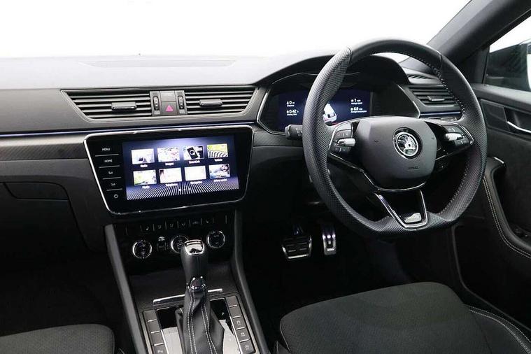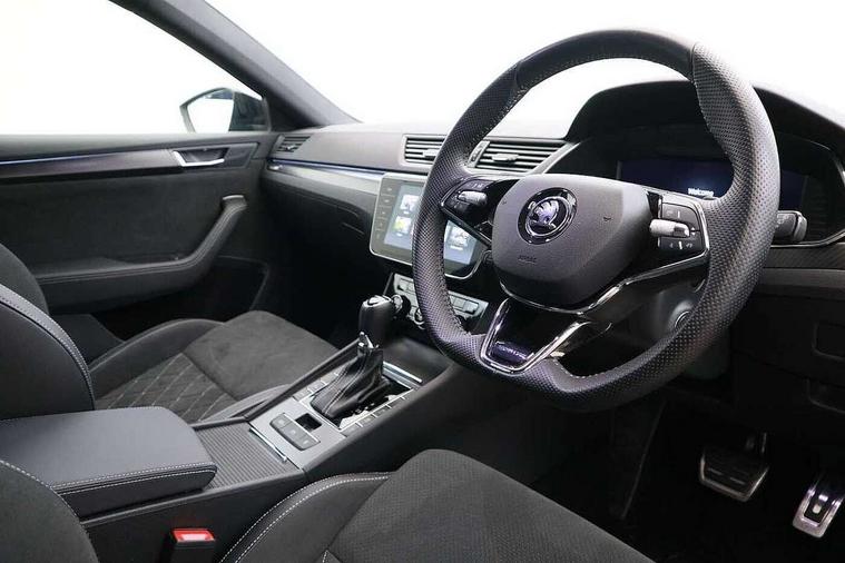 Bluetooth system, CareConnect and Emergency Call, Columbus HDD satellite 3D map navigation with 9.2" colour touch screen, web radio, integrated Wi-Fi, Driver fatigue sensor, Front assist with pedestrian protection, Progressive dynamic steering, Stop/start engine system and energy recovery, Virtual cockpit, Voice control system, Wireless smartlink apple carplay, SmartLink+ android auto, XDS+, 2 USB ports, Bolero radio with 8" touchscreen display, DAB Digital radio, 3rd brake light, Aero front windscreen wipers with intermittent function, Auto dimming rear view mirror, Black rear badge, Body colour door handles, Cornering front fog lights, Electrically adjustable heated and folding door mirrors with memory function, Front and rear electric windows, Full matrix LED headlights with AFS LED DRL integrated with headlight washer LED rear lights(High function), dynamic indicators and lighting animation, Gloss black exterior door mirrors with sports styling including front grill, side strip and window surrounds, Gloss black grille surround with gloss black rib elements, Gloss black roof rails, Gloss black strip between rear lights, Light assistant (coming/leaving home/tunnel light), Privacy glass, Rain sensor, Rear exhaust diffuser styling elements, Rear side wing doors, Rear windscreen wiper, Sport Line badging, 12v power point in centre console, 3 seat bench in 2nd row, Black roof headlining, Black textile floor mats, Carbon optic interior elements, Electric auxiliary air heater, Front and rear footwell illumination, Front armrest with storage box, Height adjustable front and rear head restraints, Ice scraper, Illuminated and cooled glovebox, Interior lights with control switches, Isofix child seat fittings on outer rear seats, LED front and rear reading lights, Microsuede/leather upholstery with silver diamond stitching sports seats, One umbrella compartments in driver door with one umbrella in drivers door, Overhead glasses storage compartment, Rear centre armrest with cupholders, Single front passenger seat, Split folding rear seats, Storage compartment with cover in luggage compartment side panels, Ticket holder on A Pillar, LED package plus - Superb, 3 rear seatbelts, 7 airbags - Front, front side, curtain, driver's knee airbag with front passenger deactivation switch, Driver and passenger seatbelts with warning light, Electronic parking brake, ESC including ABS, EBV, MSR, ASR, EDS, HBA, DSR, RBS, CBC, multi-collision brake (MKB) and Auto hold, Hill start assist, Power operated child lock in rear doors, Tyre pressure monitor, Alarm with interior monitoring tilt sensor and back up horn, Electronic engine immobiliser, Keyless entry and start/stop, Remote central locking with SAFE system, Third remote key,