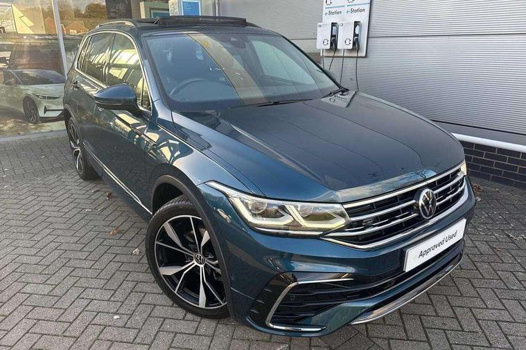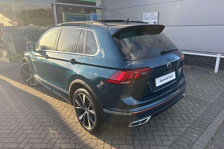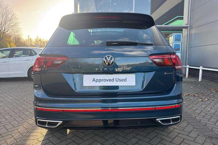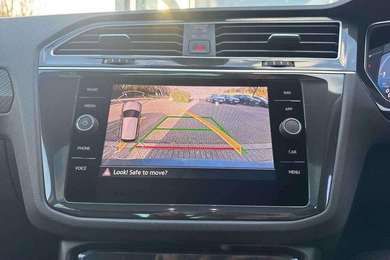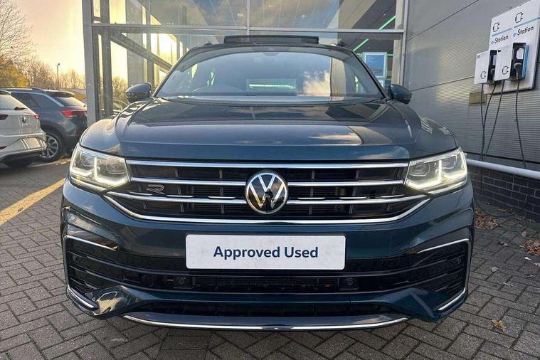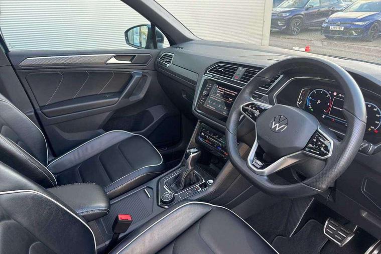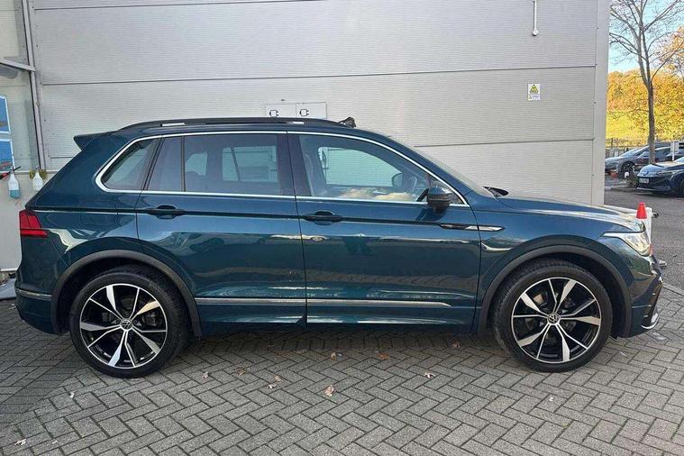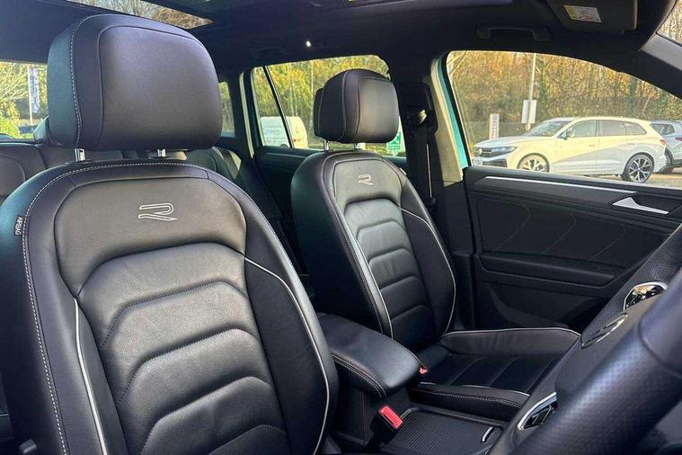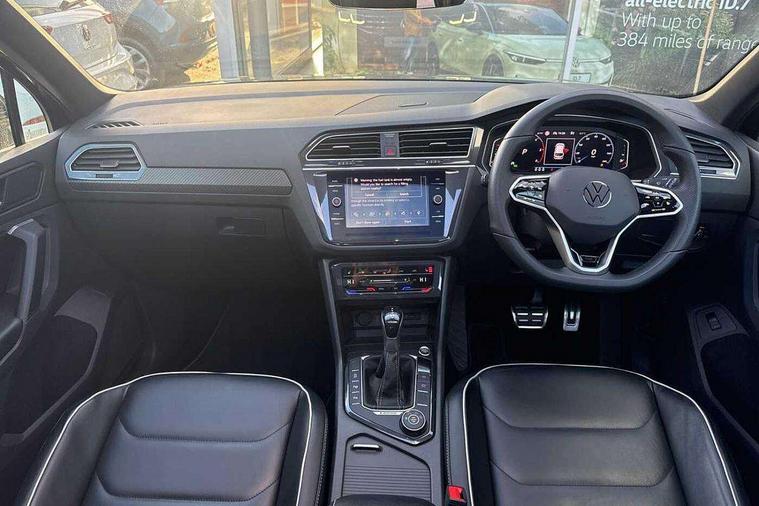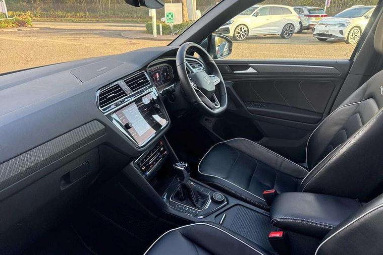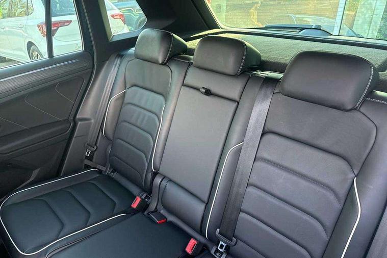 Adaptive cruise control ACC stop and go including speed limiter, App-Connect incl. App-Connect Wireless for Apple CarPlay and Android Auto, Bluetooth phone integration system, Digital Cockpit Pro - Active info display, Distance control assist, Driver alert system, Driver profile selection, Dynamic road sign display, eCall emergency call system, Electromechanical speed sensitive power steering, Engine start/stop button, Lane keeping system Lane Assist, Lights on warning, Multifunction front facing camera, Outside temperature display, Premium multifunction display with multi colour display, Remote control boot opening, Rev counter, Revision / skills operating concept travel assistant, Service interval indicator, Speed limit display, Start/stop system with regenerative braking, Trip computer, Warning sound and light for doors and tailgate open, All wheel drive - 4Motion, Battery regeneration during braking, Diesel particulate filter, Misfuel prevention device for diesel engine, Selective Catalytic Reduction, XDS electronic differential lock for improved traction and handling, 2 USB-C ports in the front, 1 USB-C charging socket on the center console in the rear, Diversity antenna for FM reception, Radio, SD card slot, Simultaneous pairing of 2 compatible mobile devices, SMS functionality - read, compose and send SMS messages using touch-screen display, Title and cover art display, Auto dimming interior rear view mirror, Automatic headlight control system, Black roof rails, Body colour door handles, Body coloured bumpers in R Line style, Body coloured door mirrors with integrated indicators, Chrome moldings on the side windows, Coming/leaving home lighting function, Dynamic headlight range control, Front and rear electric windows, Heated rear window, High level 3rd brake light, Laminated safety glass windshield, heat and sound insulating, LED rear number plate lights, License plate carrier in front and rear, Poor weather light and cornering light, Privacy glass for rear side windows and rear window, R Line body kit, R Line side sills, Rain sensor windscreen wipers, Rear exhaust tailpipe, Rear fog lamp, Rear spoiler in R style, Rear windscreen washer and wiper with interval delay, Side and rear windows in heat insulating glass, Third brake light, Trailer Stability Programme, Unique R Line badging, Windscreen wipers/ intermittent wipe + 4 position delay, 12V outlet in center console rear and in luggage compartment, 2 cup holders in front, 2 LED front reading lights, 2 LED rear reading lights, 3 rear headrests, 4 load lashing points, 40:20:40 split folding rear seats, Air Care Climatronic 3 zone automatic climate control with enhanced air filter and controls in the rear, Backrest release for left front seat, Black headlining, Brushed stainless steel pedals and footrest, Carpet mats in front and rear with decorative stitching in Gray, Climate control unit rear with touch function, Door and side trim panel in foam film, insert in leatherette, Front centre armrest, Front footwell illumination, Front seats head restraints (x-adjustment), Height adjustable front seats, Height/reach adjust steering wheel, Instrument lighting white adjustable panel illumination, Interior light with delay, Isofix Preparation 2 Rear child seats, Leather gear knob, Lockable cooled glovebox, Luggage compartment lighting, Luggage net, Rear bench seat asymetrically split folding, longitudinally movable and folding with load-through hatch and center armrest, Remote unlocking for rear seat backrest, Removable luggage cover, Safety optimised front head restraints, Sliding/reclining rear seats, Standard rear seat release, Storage compartment in driver's door, Storage compartment in passenger's door, Storage compartment in rear doors, Storage compartments in luggage area left and right, Storage tray on dashboard, Sun visors with illuminated vanity mirrors, Tool kit, Top front comfort seats, Variable boot floor, height adjustable and removable, Ambience pack - Tiguan R Line, Driver assistance pack plus - Tiguan DSG, 3 point seat belt for centre rear seats, 3 point seat belts with seat belt pretensioners for the outer rear seats, Active bonnet, Curtain airbags for front and rear passengers, Driver/Front Passenger airbags, Drivers knee airbag, Electronic parking brake with auto hold, Electronic Stability Control with driver steering recommendation, ABS, ASR, EDL, EDTC and trailer stabilization, Front assist with autonomous emergency braking (for Adaptive Cruise Control ACC up to 130 mph), Front disc brakes, Front passenger airbag deactivation, Front side airbags, Height adjustable front 3 point seatbelts + pretensioners, Hill hold control, Pedestrian monitoring system, Power assisted brakes, Proactive passenger protection system in combination with front assist, Rear disc brakes, Rigid safety cell with front and rear crumple zones, Two tone horn, Warning sound and light for front seat belts if unfastened, Anti theft alarm system with interior monitoring, backup horn and towing protection, Anti theft wheel bolts, Electronic engine immobiliser, 20" Misano black with diamond turned surface alloy wheels with Airstop tyres,