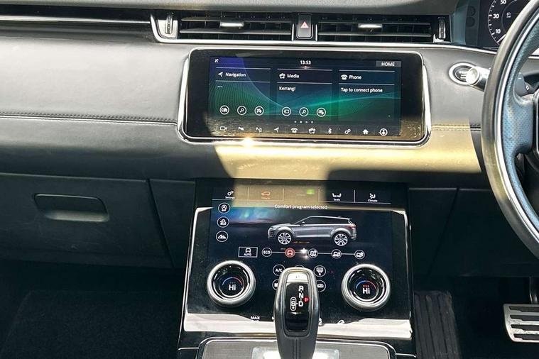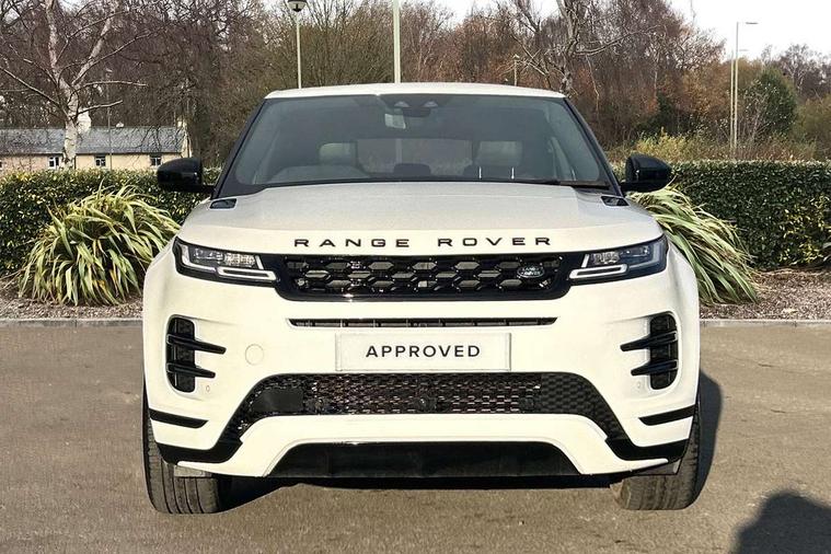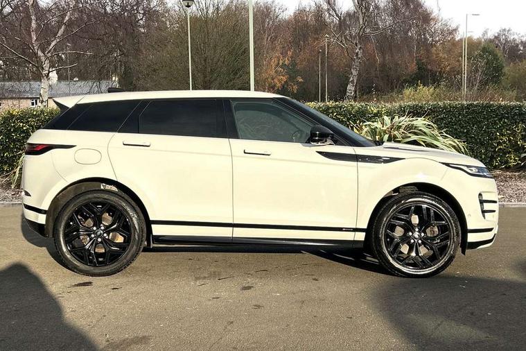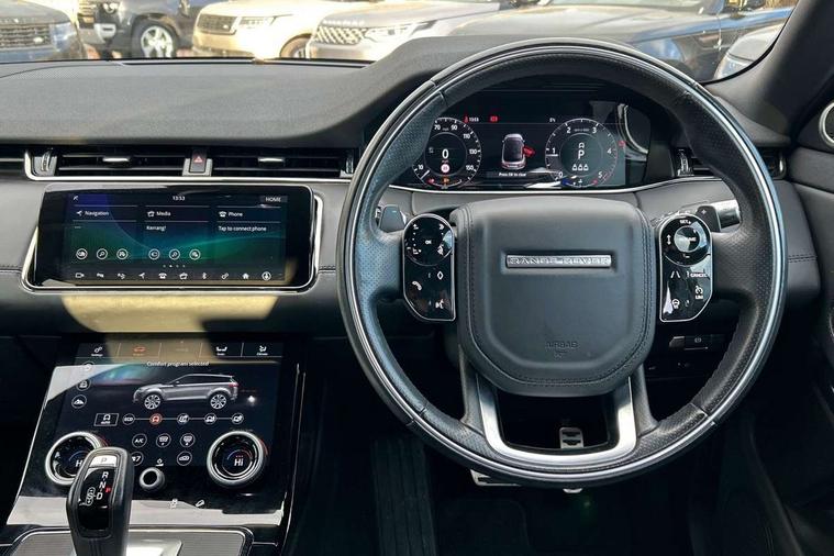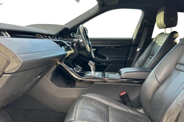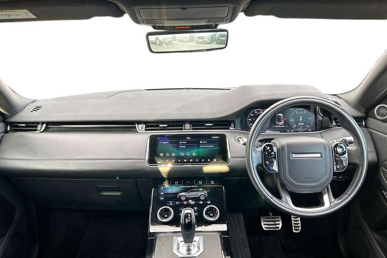 360 degree parking aid, Android Auto, Apple car play, Blind spot assist, Bluetooth connectivity, Brake pad wear indicator warning light, Clear exit monitor, Driver condition monitor, Duo touch pro, Electronic power assisted steering (EPAS), InControl remote, Interactive Driver display instrument cluster, Land Rover InControl apps, Lane keep assist, Navigation pro system, Park assist - Parallel, perpendicular and parking exit, Powered gesture tailgate/boot lid, Pro services and wifi hotspot, Push button starter, Rear traffic monitor, Smart settings, Traffic sign recognition with adaptive speed limiter, Voice control system, All terrain progress control, Efficient Driveline, Passive suspension, Terrain Response 2 Auto, Digital Audio Broadcast radio-DAB, Steering wheel mounted controls, Automatic headlight levelling, ClearSight interior rear view mirror, Electric windows with one touch open/close and anti trap, Evoque and R-Dynamic badge, Flush deployable exterior door handles, Heated rear window with timer, Heated washer jets, Heated windscreen, Power fold, auto-dimming, heated door mirrors with memory and approach lights, Rain sensing windscreen wipers, Rear fog lights, Shadow atlas bonnet and tailgate script, Tailgate spoiler, 40:20:40 split folding rear seats, Black gearshift paddles, Bright metal pedals, Isofix system on outer rear seats, Overhead lighting console, Overhead stowage for sunglasses, Passive front head restraints, Rear air vents, Rear centre headrest, Sunvisors with illuminated vanity mirrors, Twin front cupholders with cover, Twin sliding front centre armrest, 3 rear 3 point seatbelts, Anti-lock braking system (ABS), Customer configurable autolock, DSC - Dynamic Stability Control, Electronic brake force distribution, Electronic parking brake, Electronic traction control, Front and rear seatbelt reminder, High speed emergency braking, Hill descent control, Hill launch assist, Low traction launch, Power operated child locks, Roll stability control, Six airbags - Driver and passenger airbags/driver knee airbag/front side airbag and curtain airbags, Torque vectoring brake, Tyre pressure monitoring system, Alarm, Immobiliser, Intrusion sensor, Keyless entry, Locking wheel nuts,